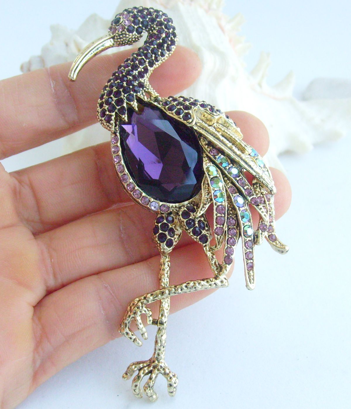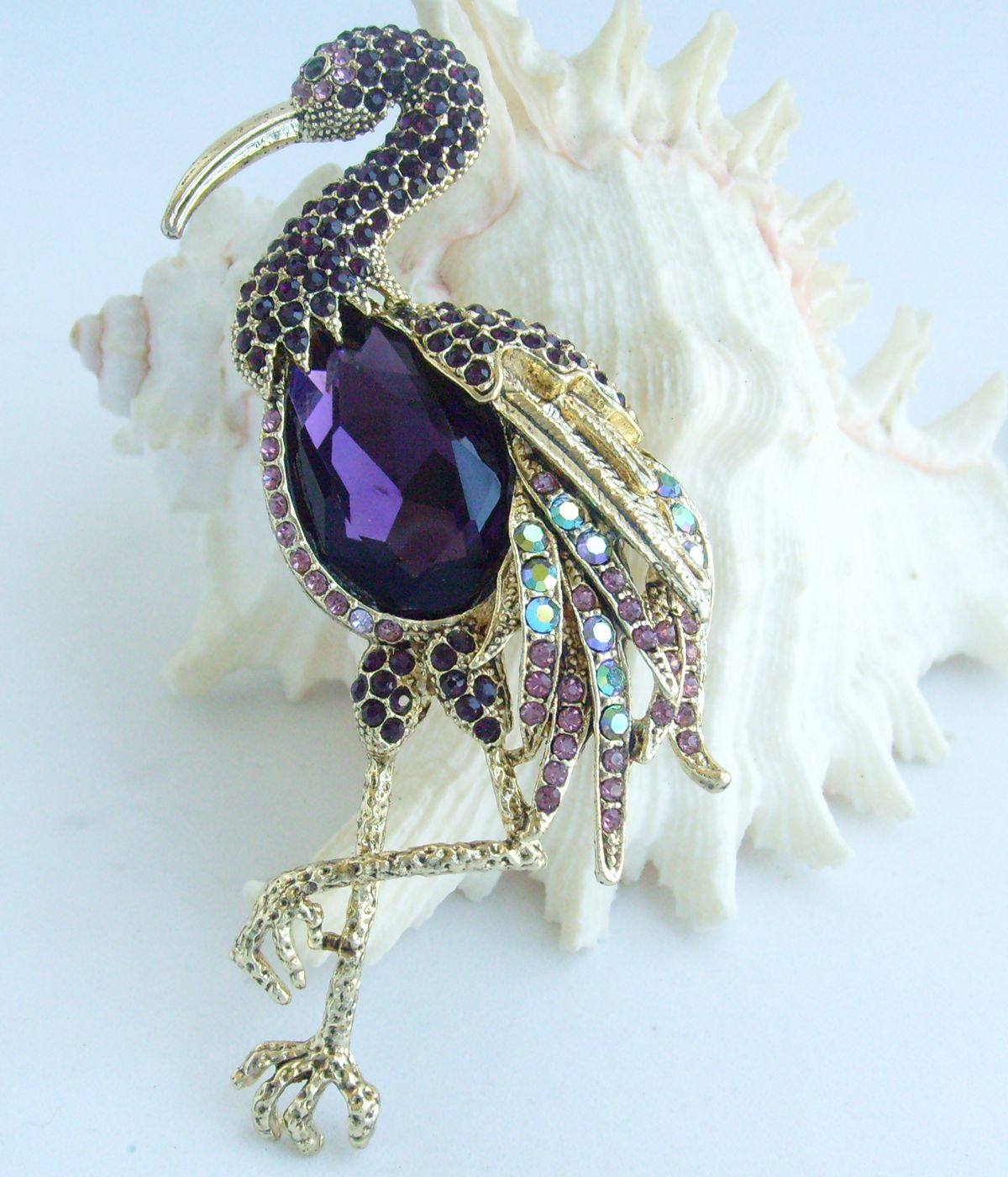 Sindary Animal Bird Flamingo Brooch Pin Austrian Rhineston Crystal Pendant Boxed BP06620 (Gold-Tone Purple) 30g