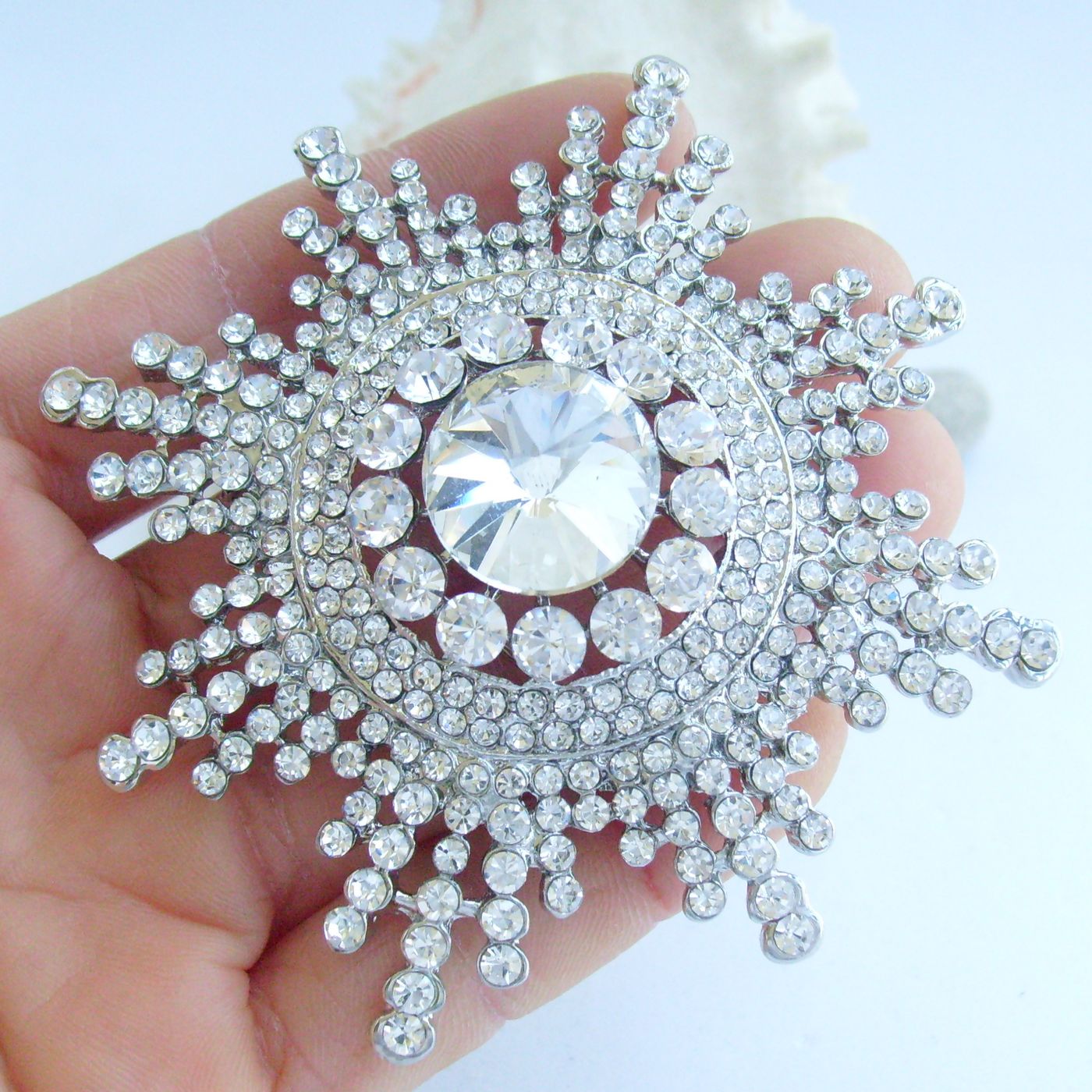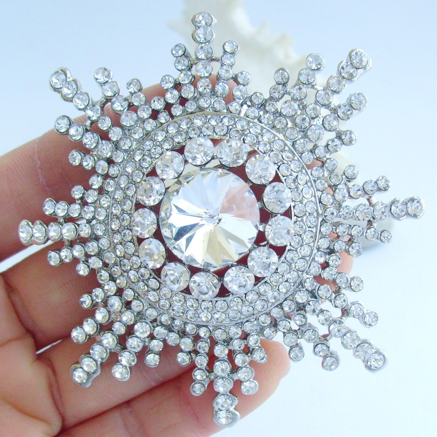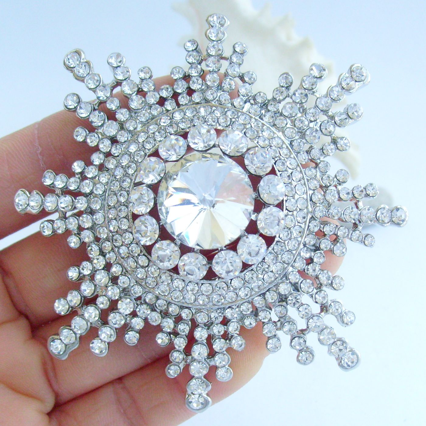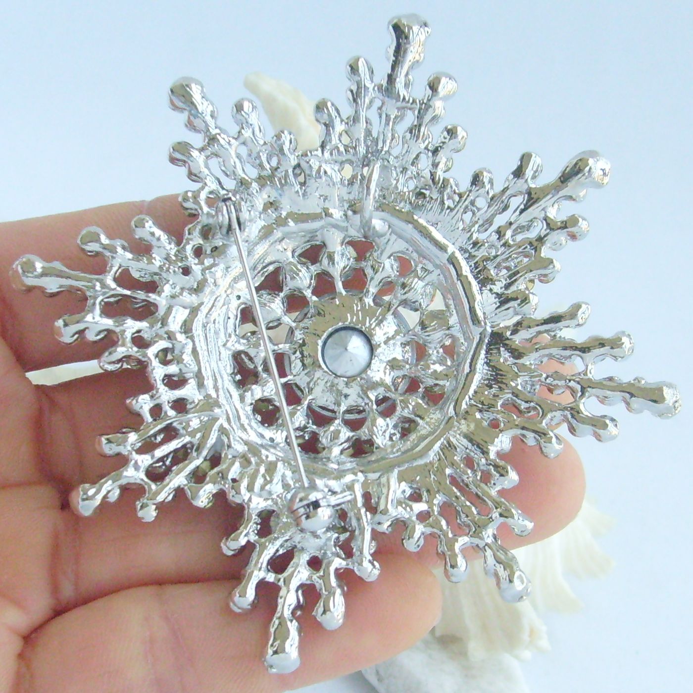 Sindary 3.0 Inch Austrian Crystal Pin Sunflower Brooch Pin Pendant Boxed BP06014 (Silver-Tone Clear) 40g
