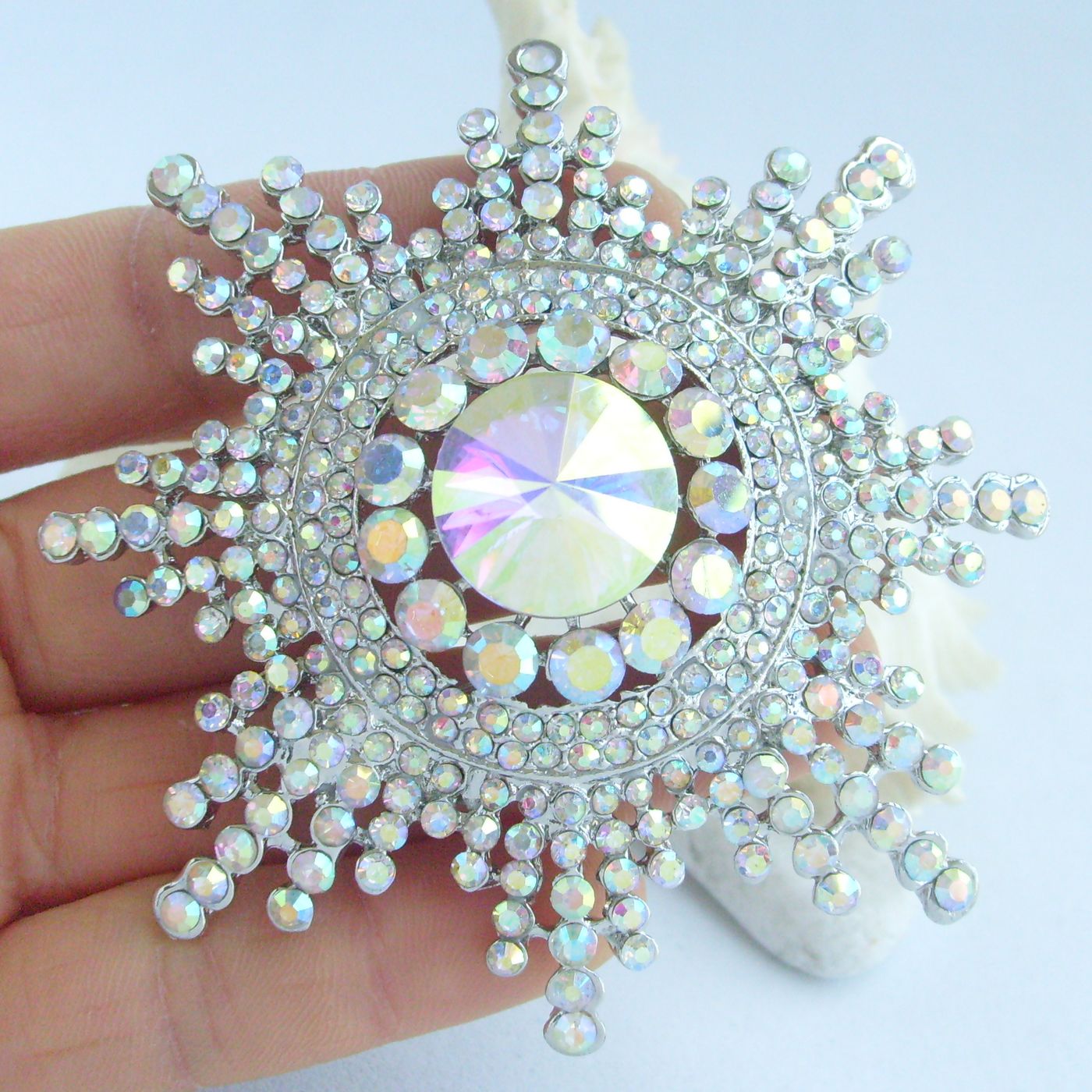 Sindary 3 Inch Austrian Crystal Pin Sunflower Brooch Pin Pendant Boxed BP06014 (Silver-Tone Rainbow Clear) 40g