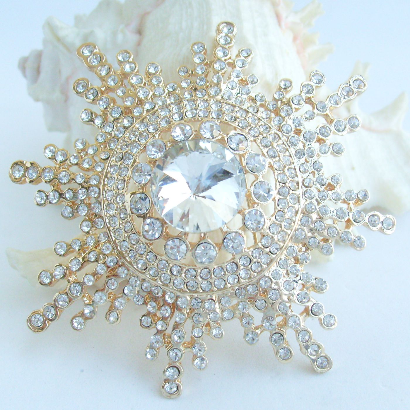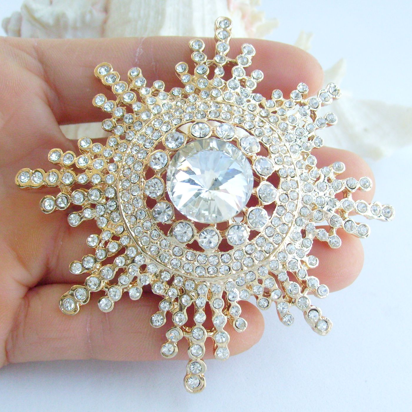 Sindary 3 Inch Austrian Crystal Pin Sunflower Brooch Pin Pendant Boxed BP06014 (Gold-Tone Clear) 40g