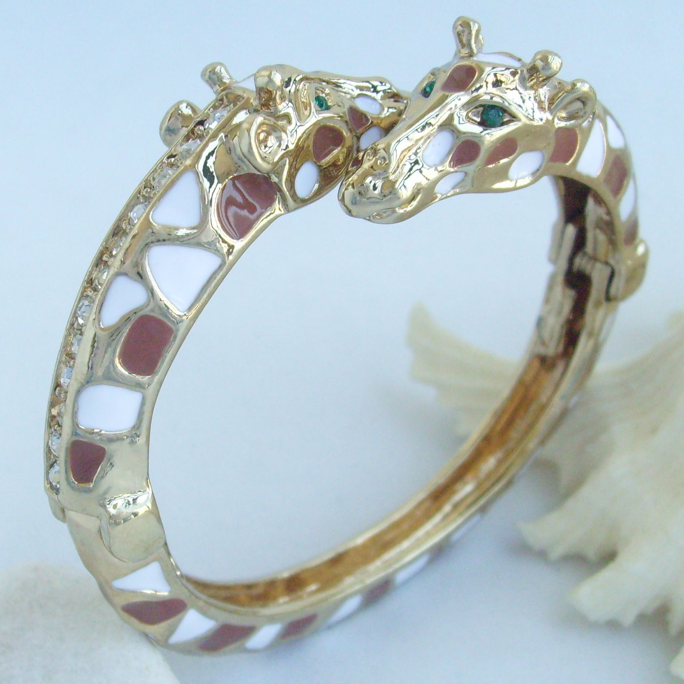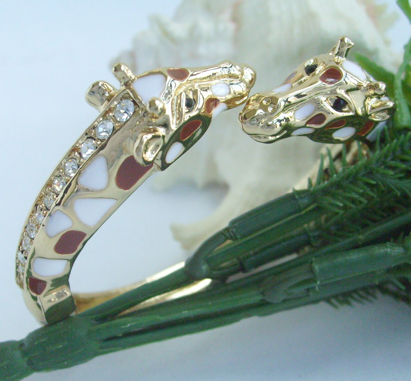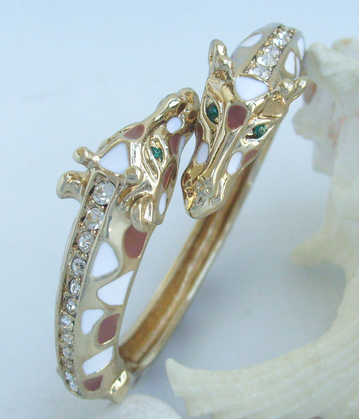 Sindary Unique Animal Giraffe Bracelet Bangle Cuff Clear Austrian Crystal BMC033 (Gold-Tone White Brown Enamel Spot)