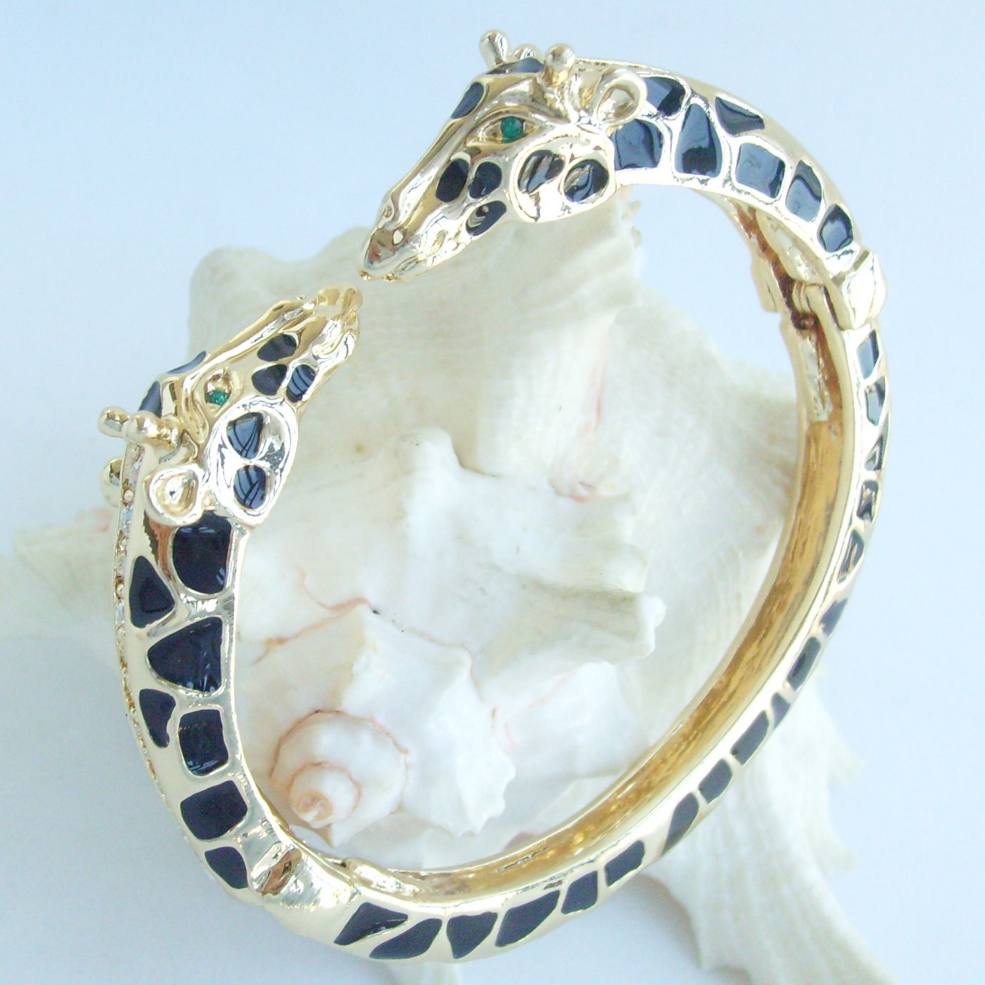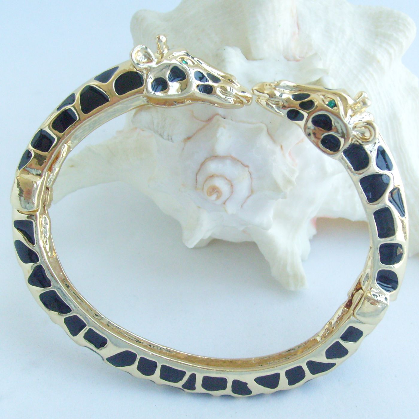 Sindary Unique Animal Giraffe Bracelet Bangle Cuff Clear Austrian Crystal BMC033 (Gold-Tone Black Enamel Spot)