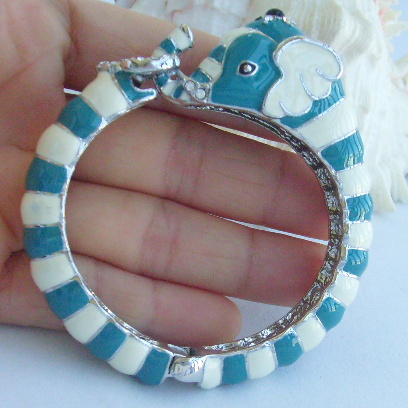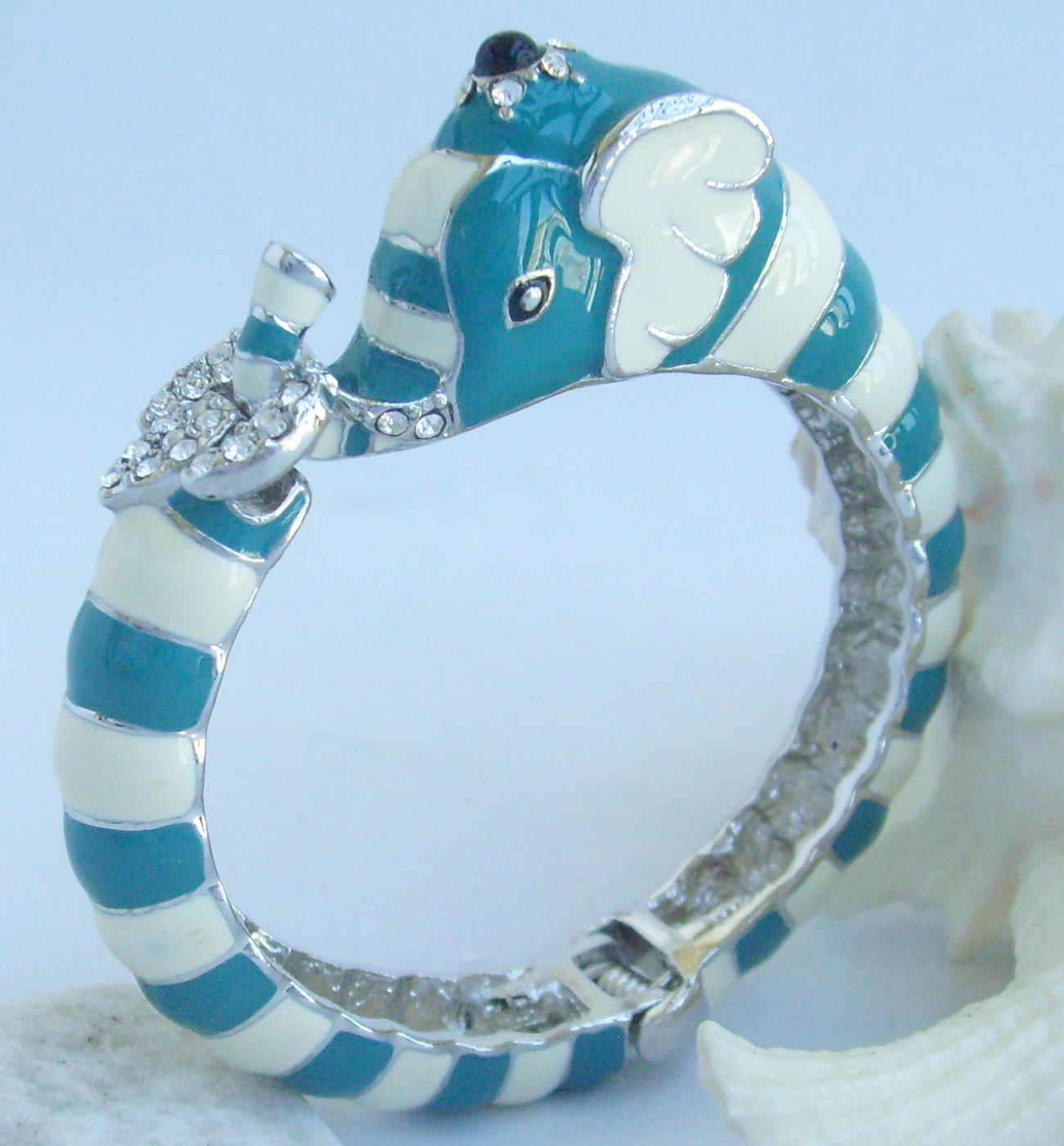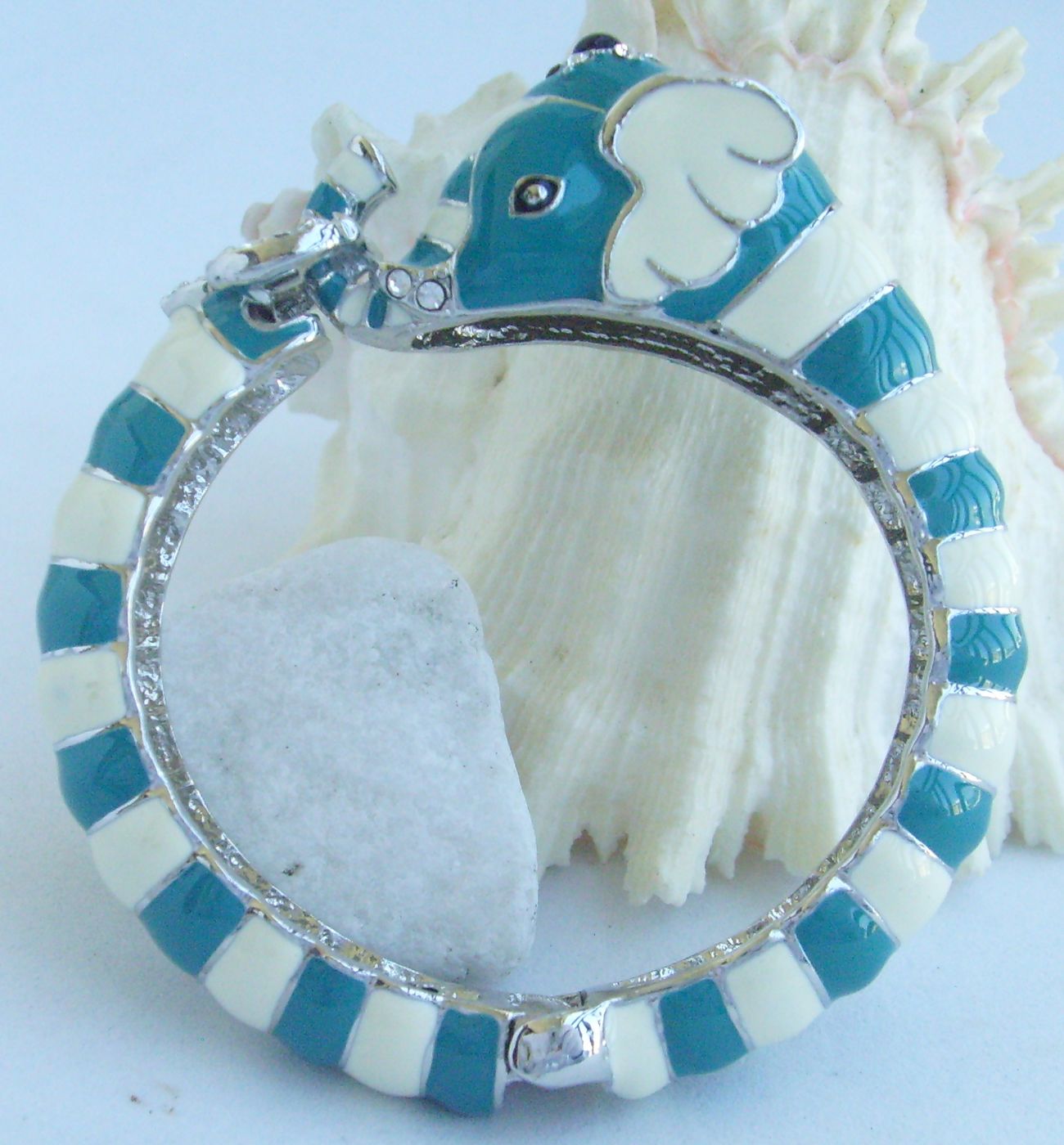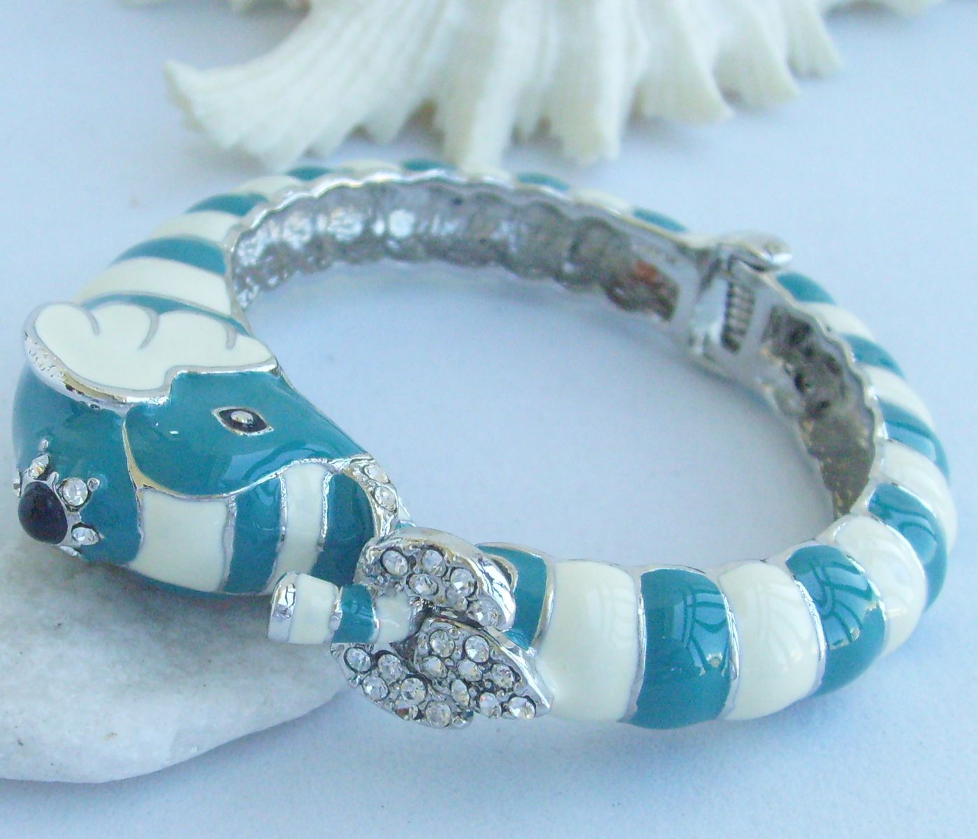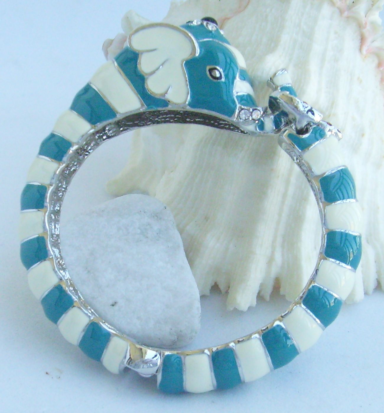 Sindary Unique Animal Elephant Bracelet Bangle Cuff Clear Austrian Crystal BCL509 (Silver-Tone Blue White Enamel Stripe)