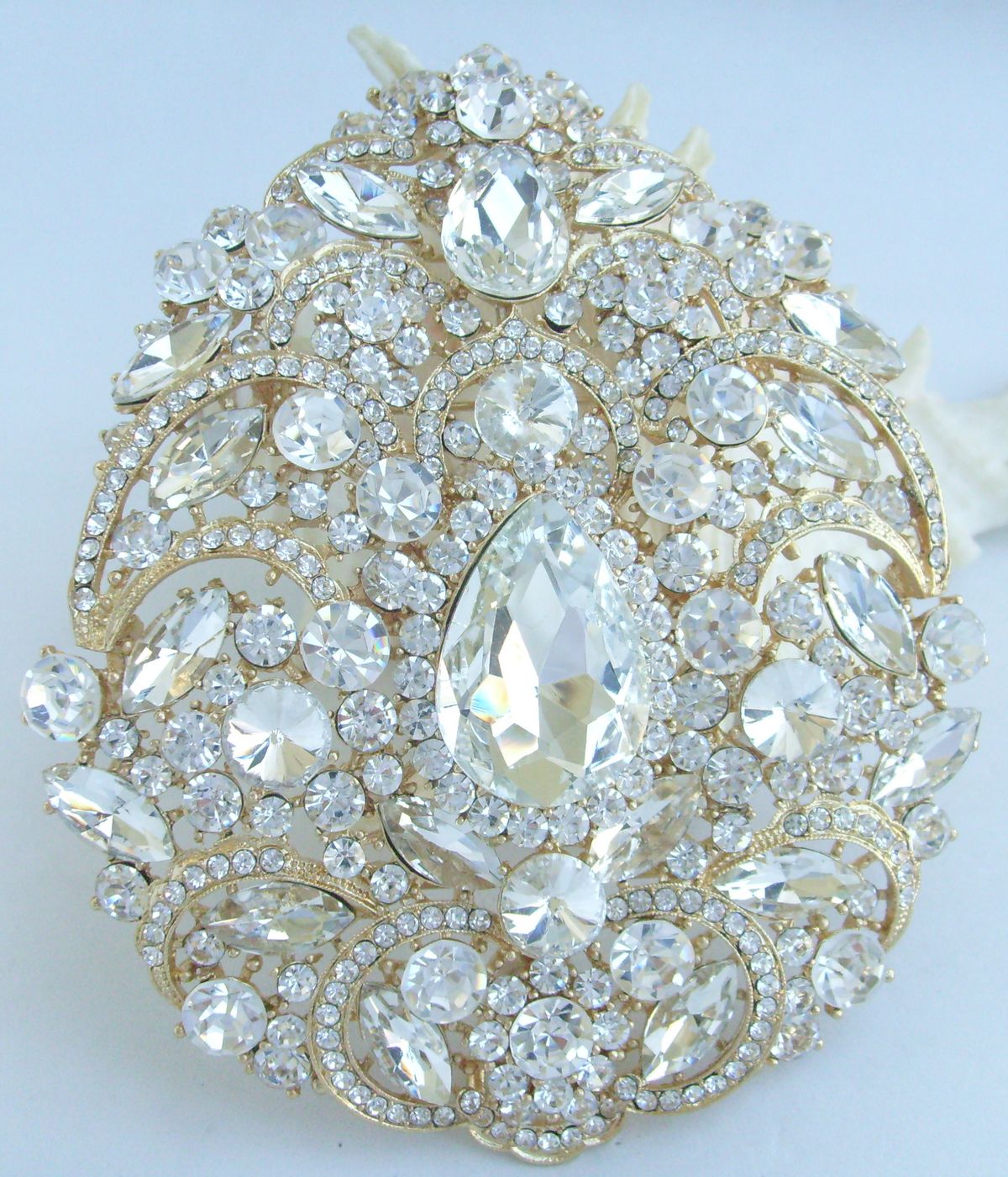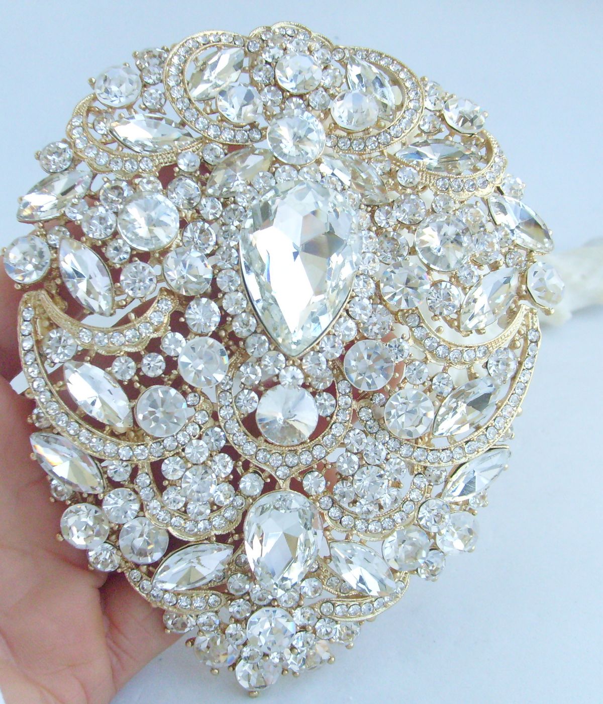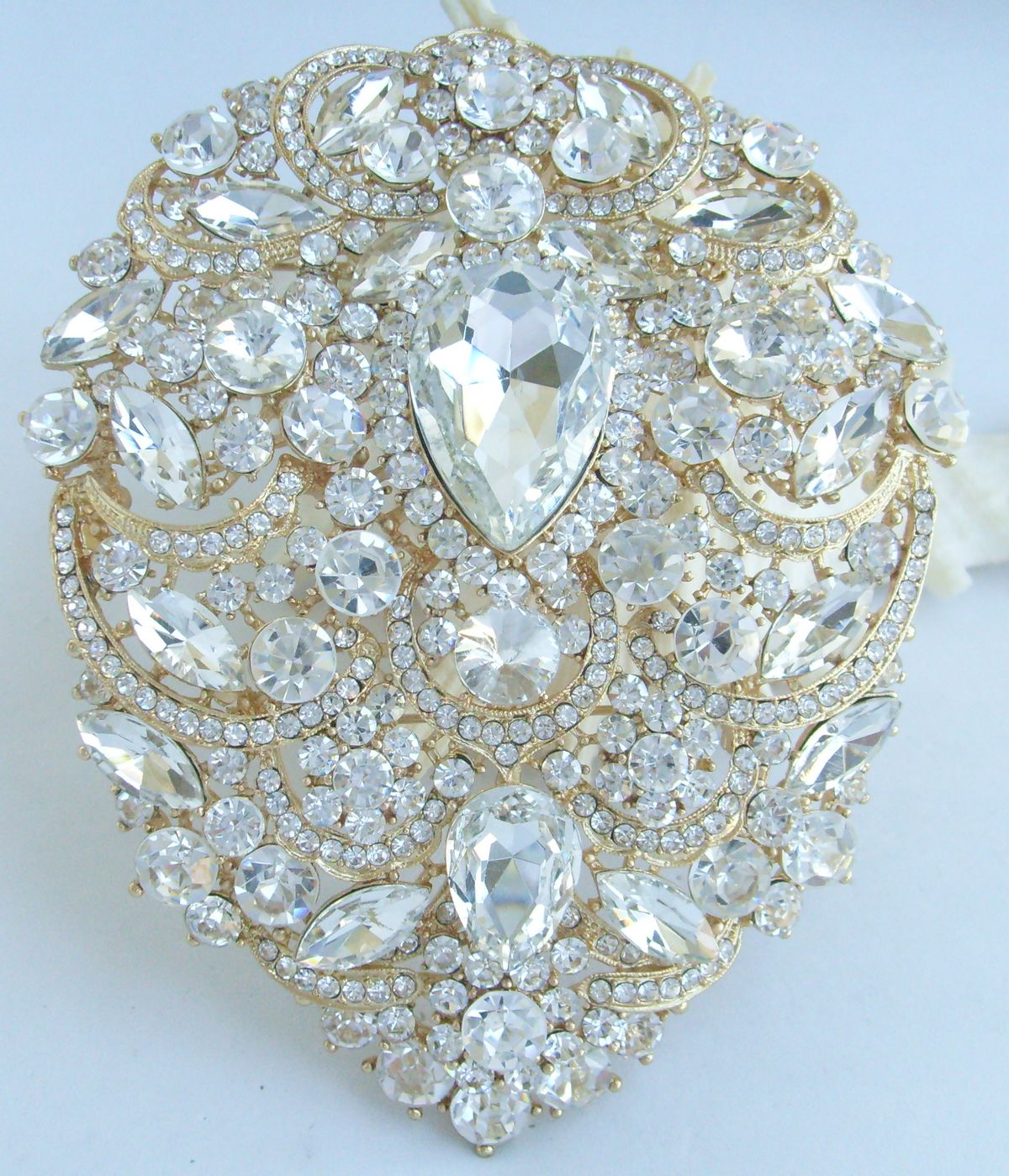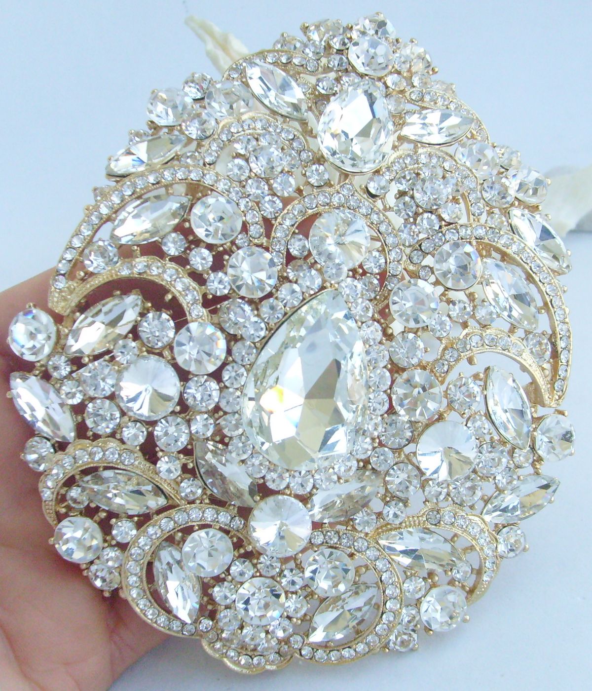 Sindary 5 Inch Rhinestone Teardrop Brooch Pin Pendant Austrian Crystal Large Brooch BP04045 (Gold-Tone Clear) 120g