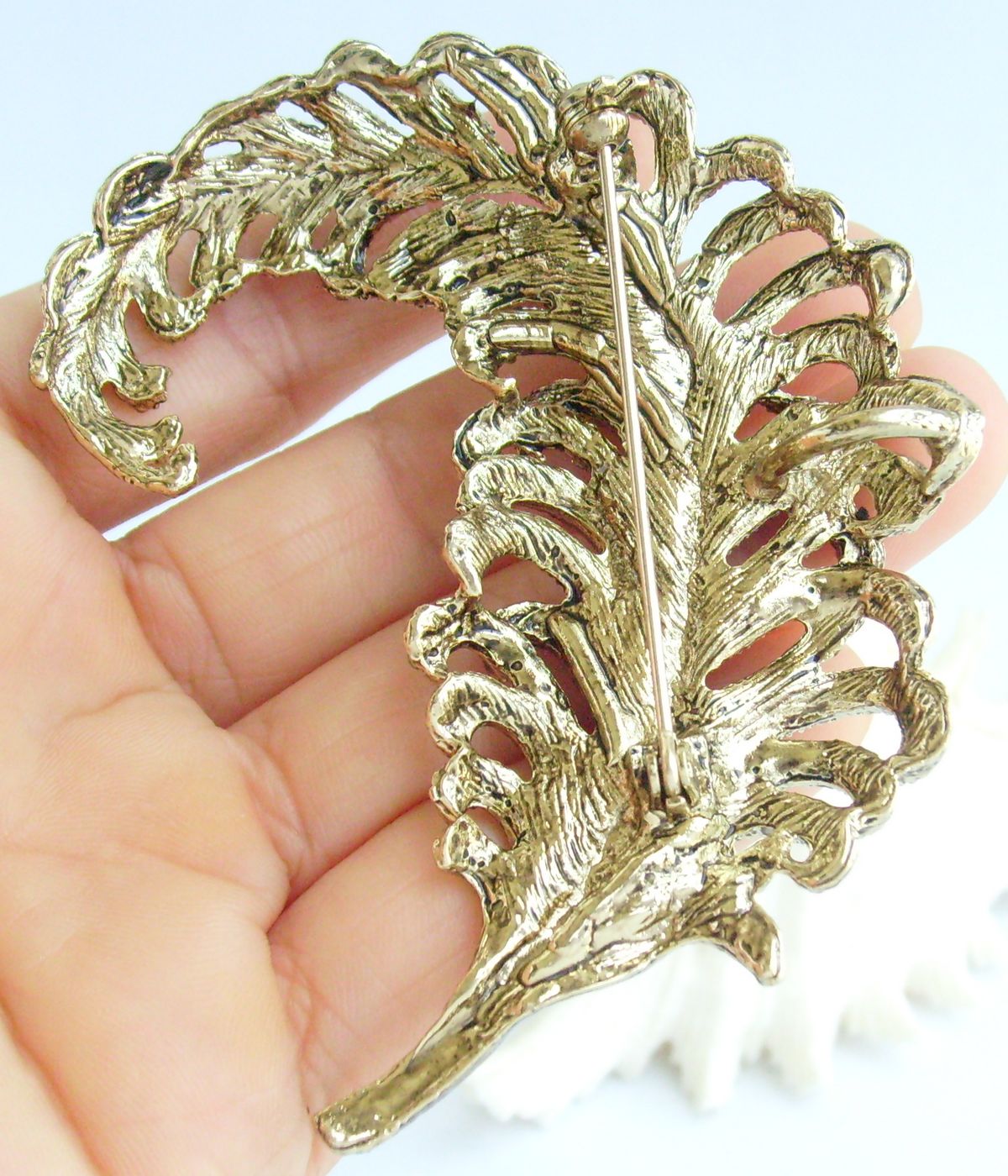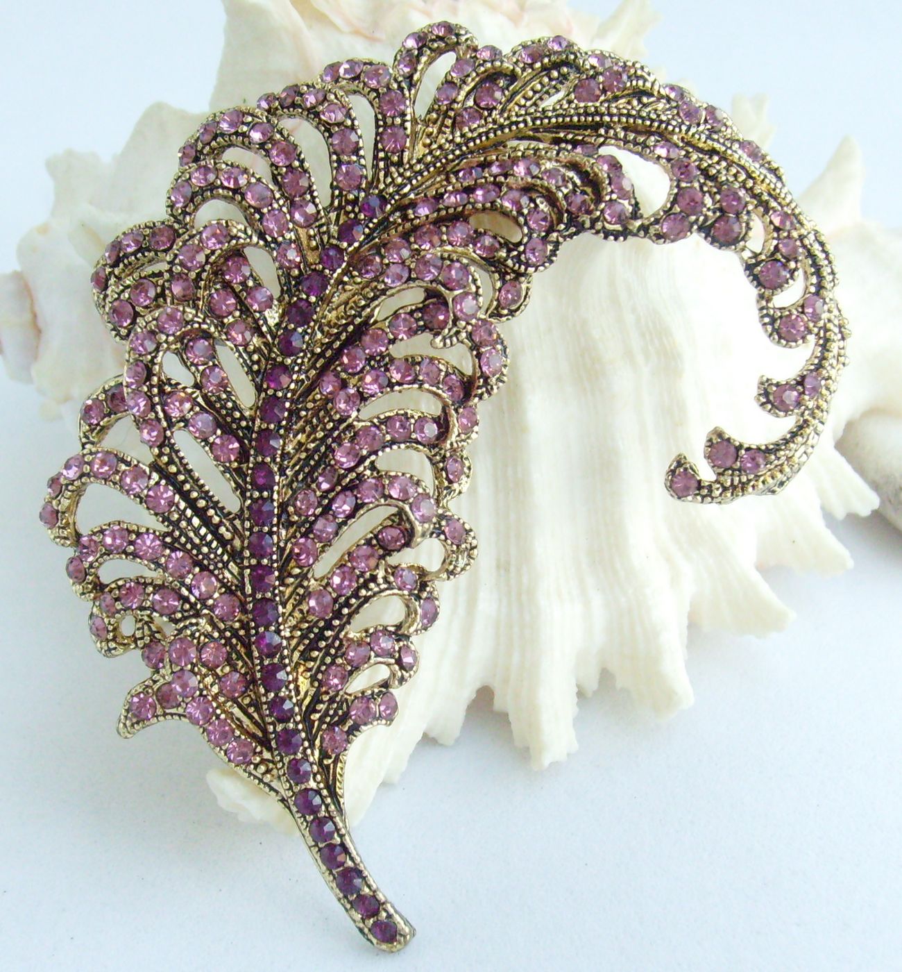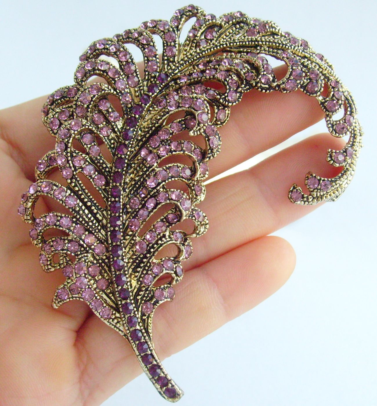 Sindary Rhinestone Crystal Feather Brooch Pin Pendant BP05065 (Gold-Tone Purple) 40g