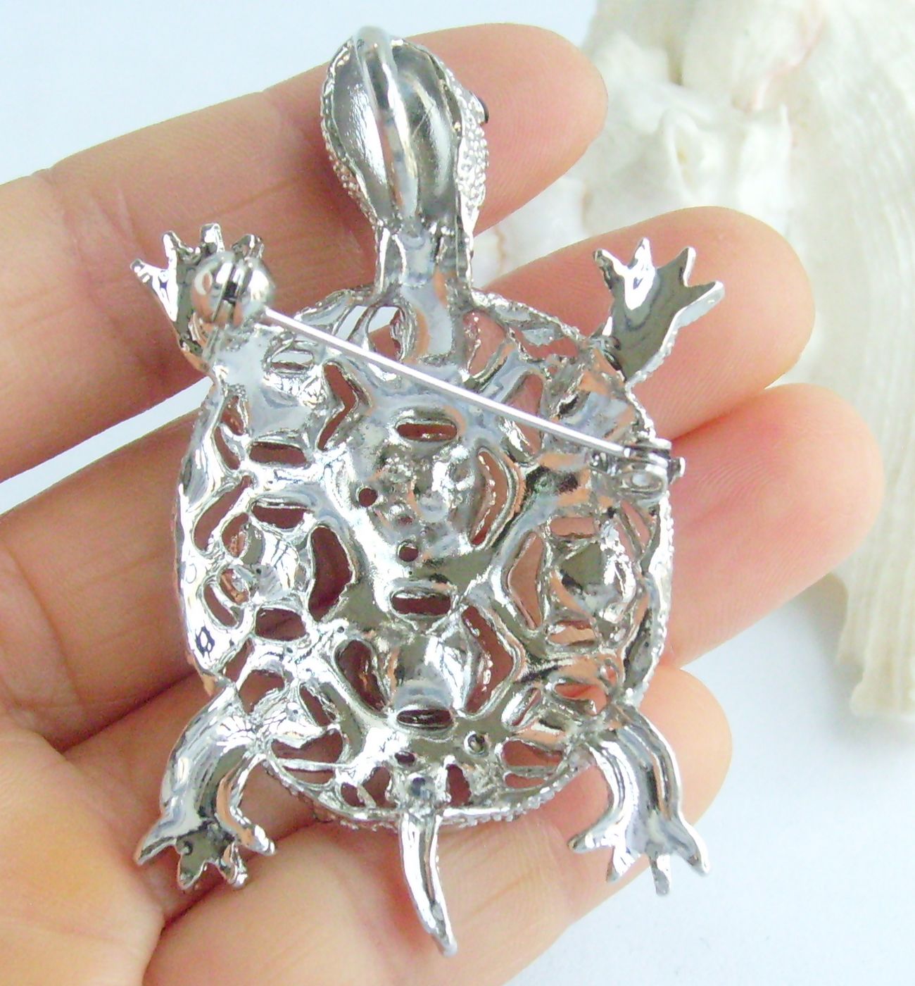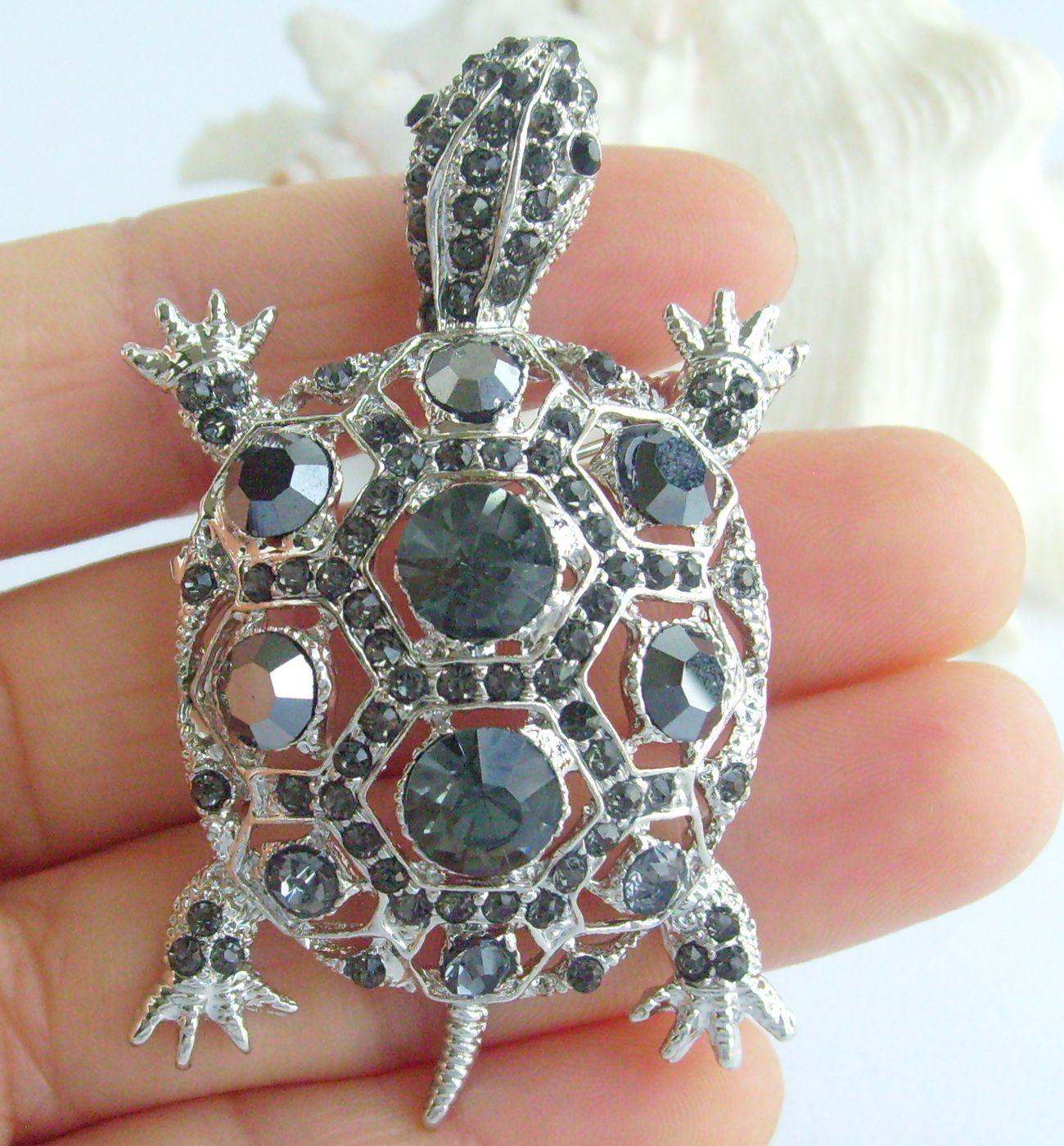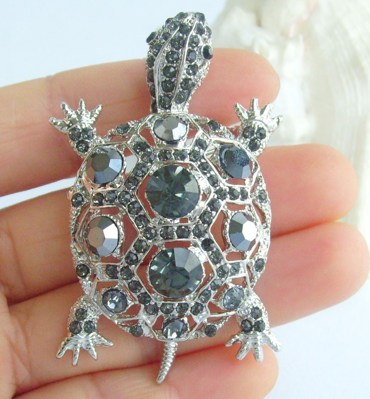 Sindary Rhinestone Crystal Turtle Tortoise Brooch Pin Pendant Animal Pin BP03631 (Silver-Tone Gray) 20g