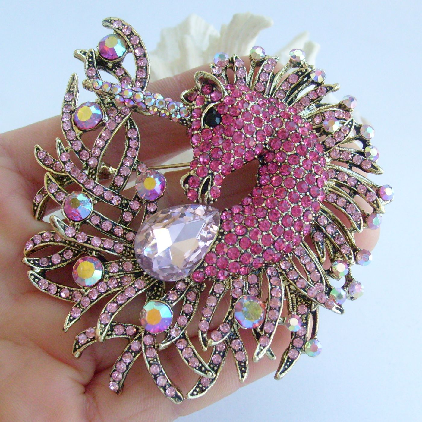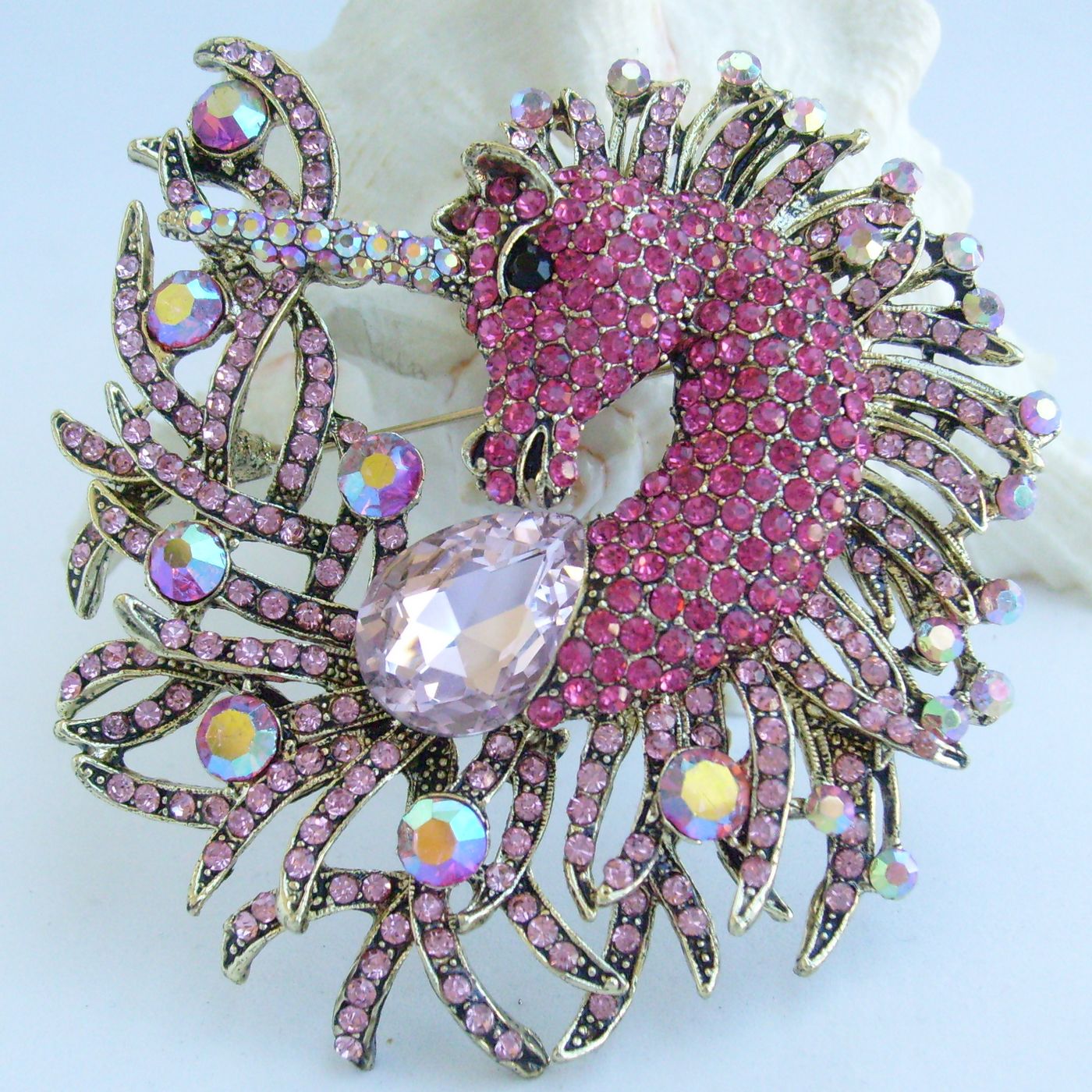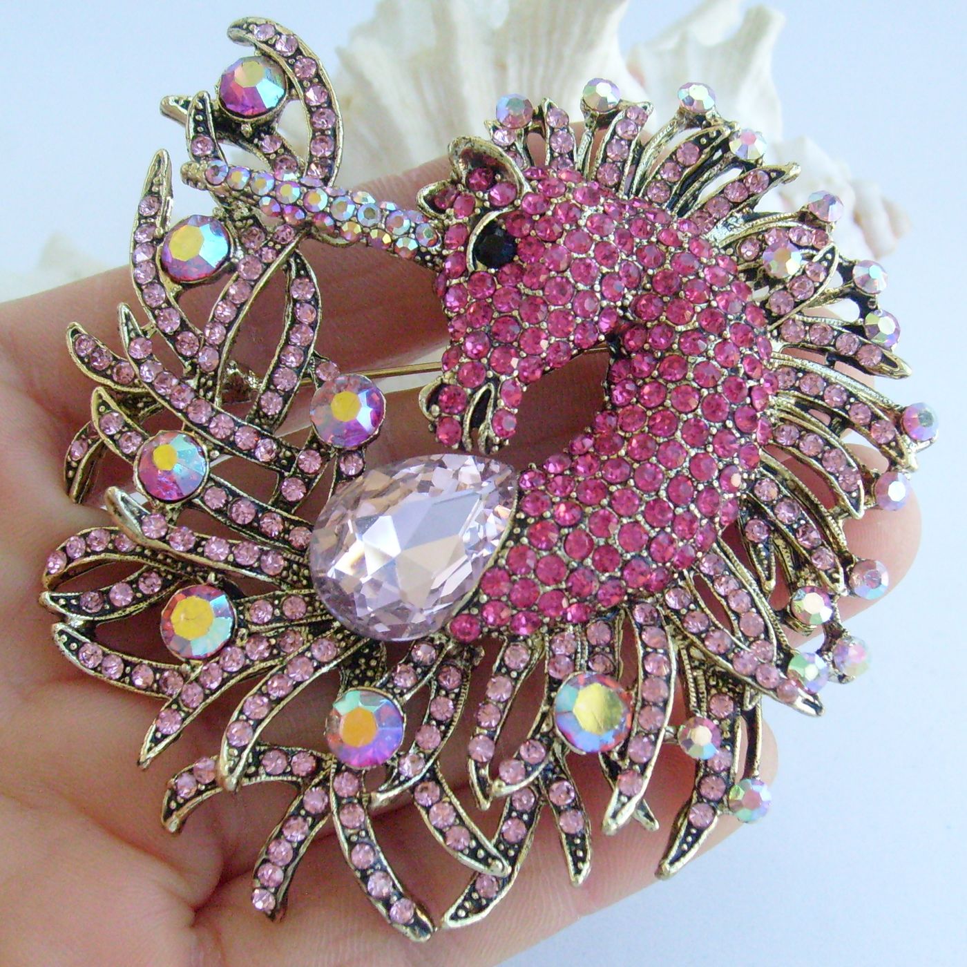 Sindary Rhinestone Crystal Unicorn Horse Brooch Pin Pendant Animal Pin BP05954 (Gold-Tone Pink) 45g