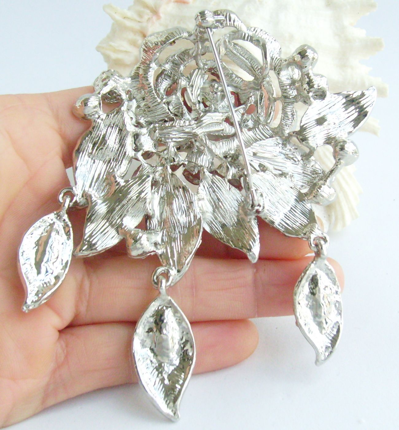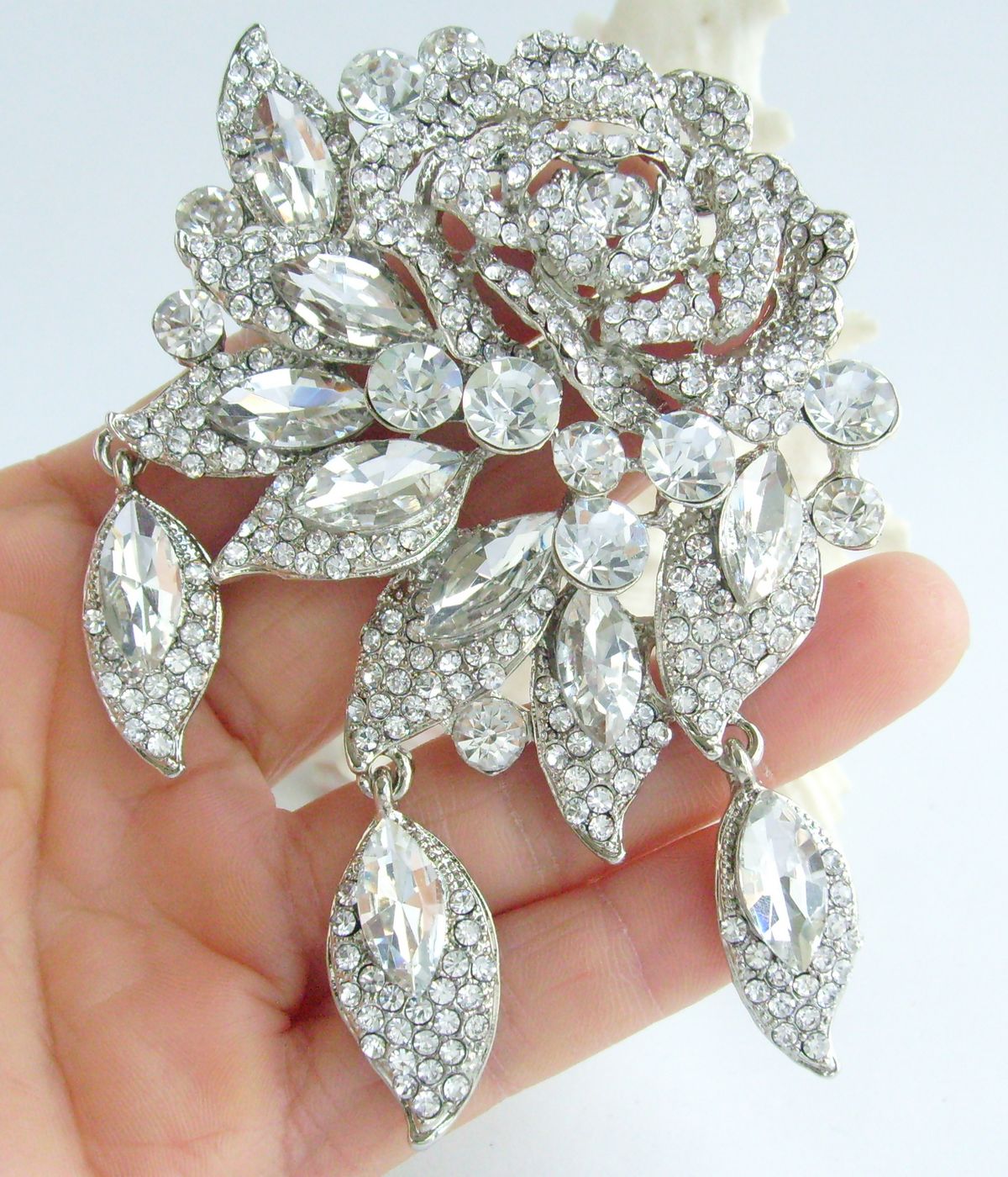 Sindary Jewelry 3.94 Inch Pretty Rhinestone Crystal Flower Brooch Pin Pendant BP06454 (Silver-Tone Clear) 65g