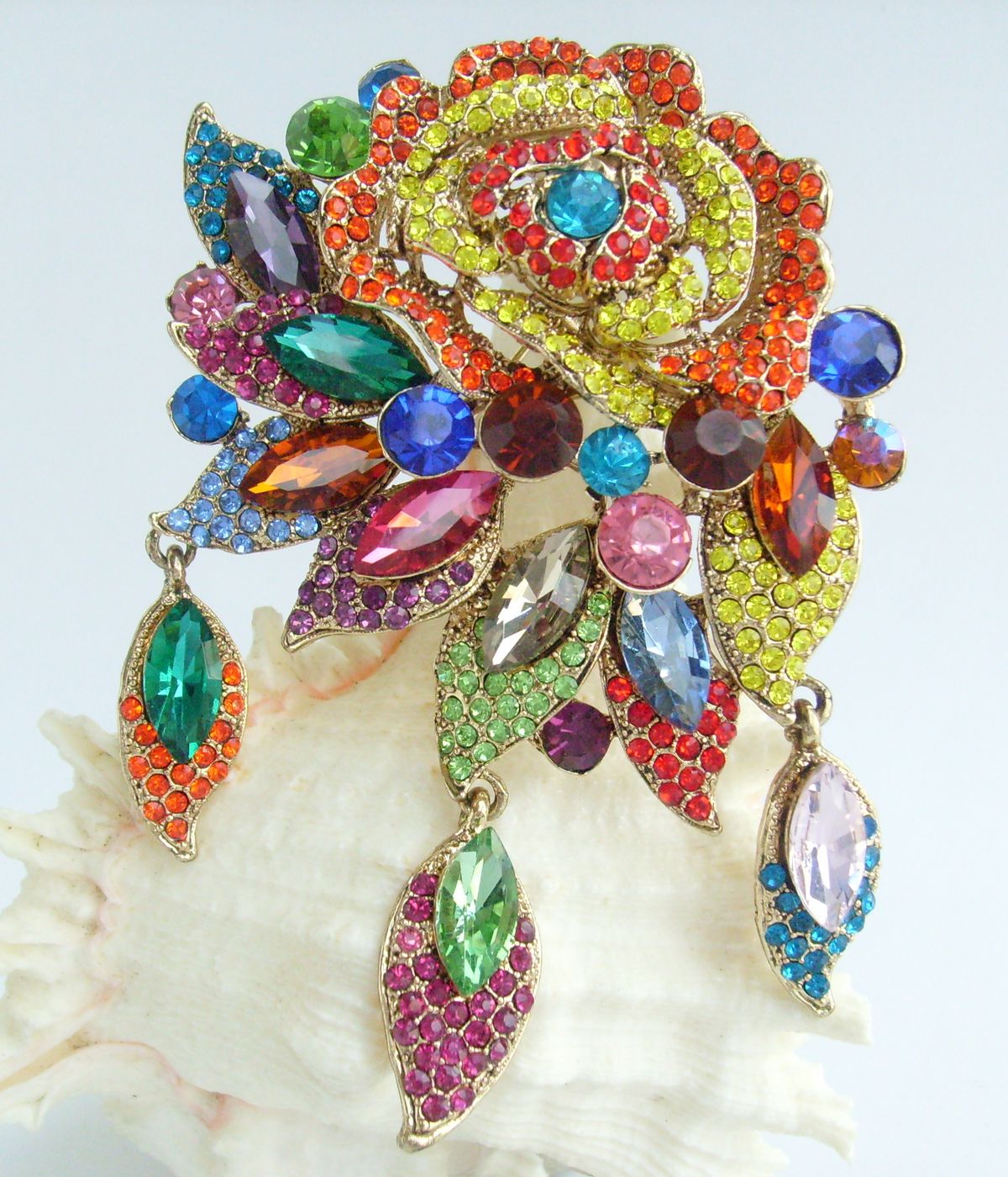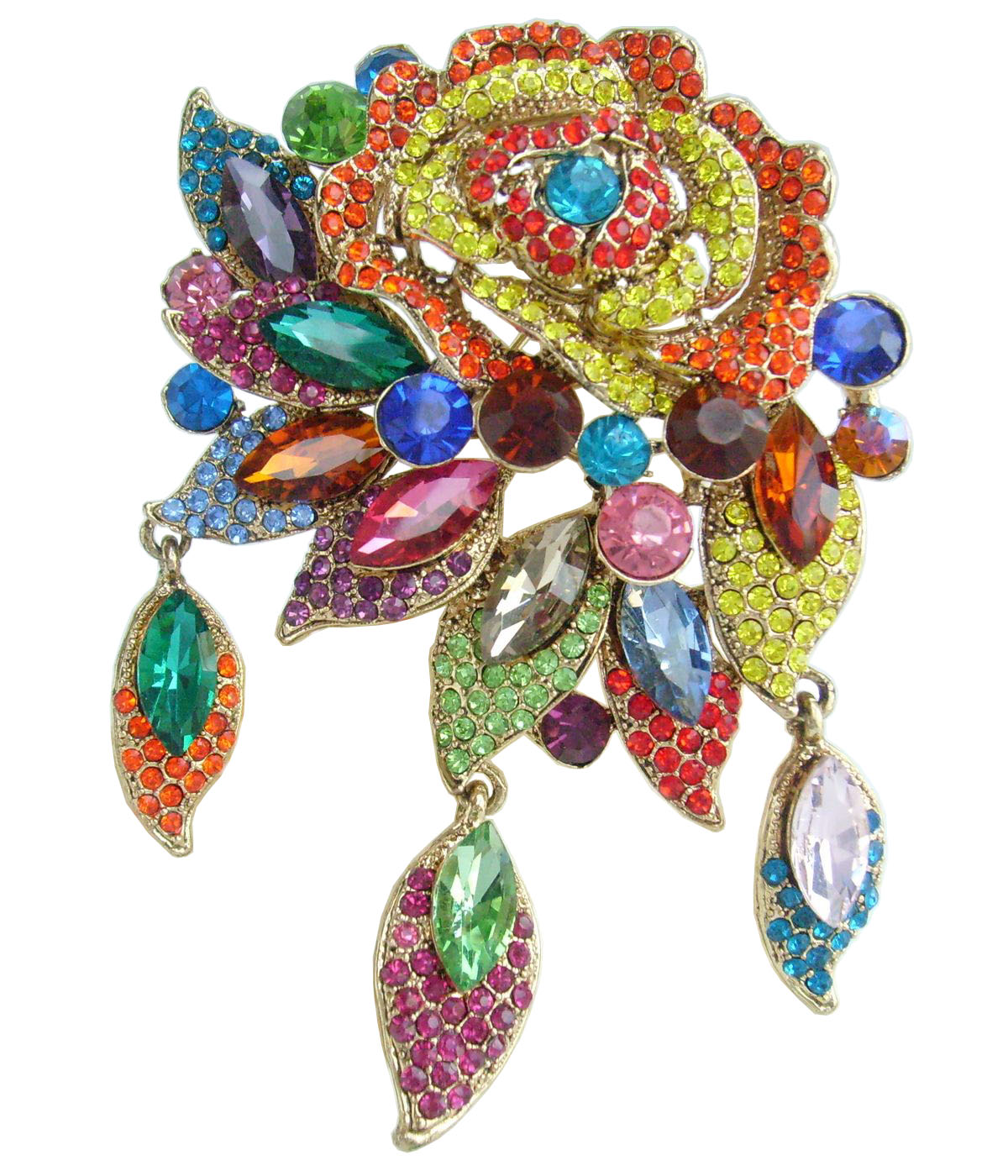 Sindary Jewelry 3.94 Inch Pretty Rhinestone Crystal Flower Brooch Pin Pendant BP06454 (Gold-Tone Multicolor) 65g