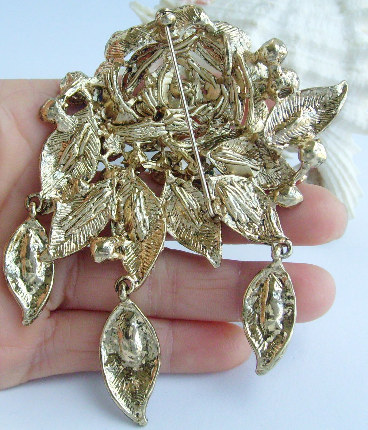 The size of the brooch: 10.0cm (3.94 inch) Length by 7.5cm (2.95 inch) Width.