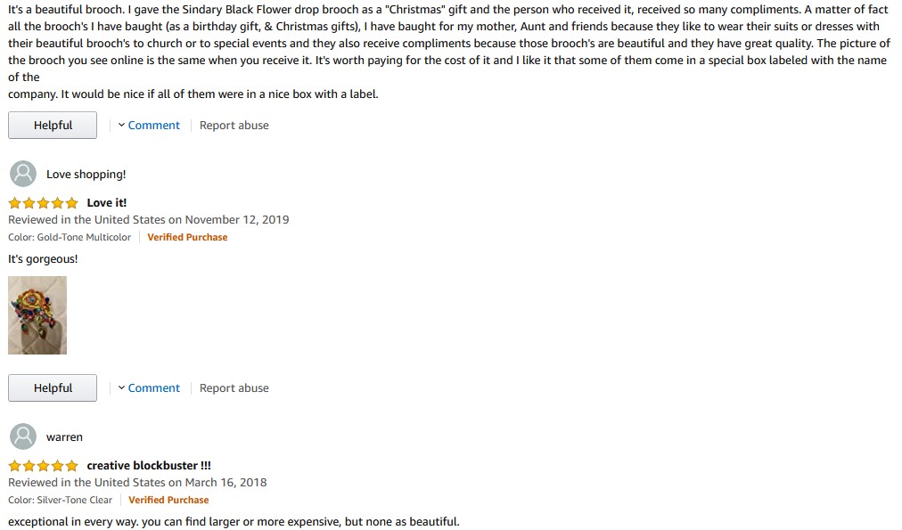 This is a brooch of high quality and craftsmanship, which can be used to decorate clothes, hats, bags, scarves, etc. Buyers with good skills can also purchase this brooch as an accessory to make noble bouquets or other decorations. Many buyers who have bought this brooch have given a high satisfaction rating. If you also like it, buy with confidence. It can be used as a gift for someone you like. It is also a good choice for buyers who like to collect brooches. We are committed to resolve all issues in a friendly and satisfactory manner. If you have any other questions, please feel free to contact us. Your opinions about our products or our service are much appreciated.