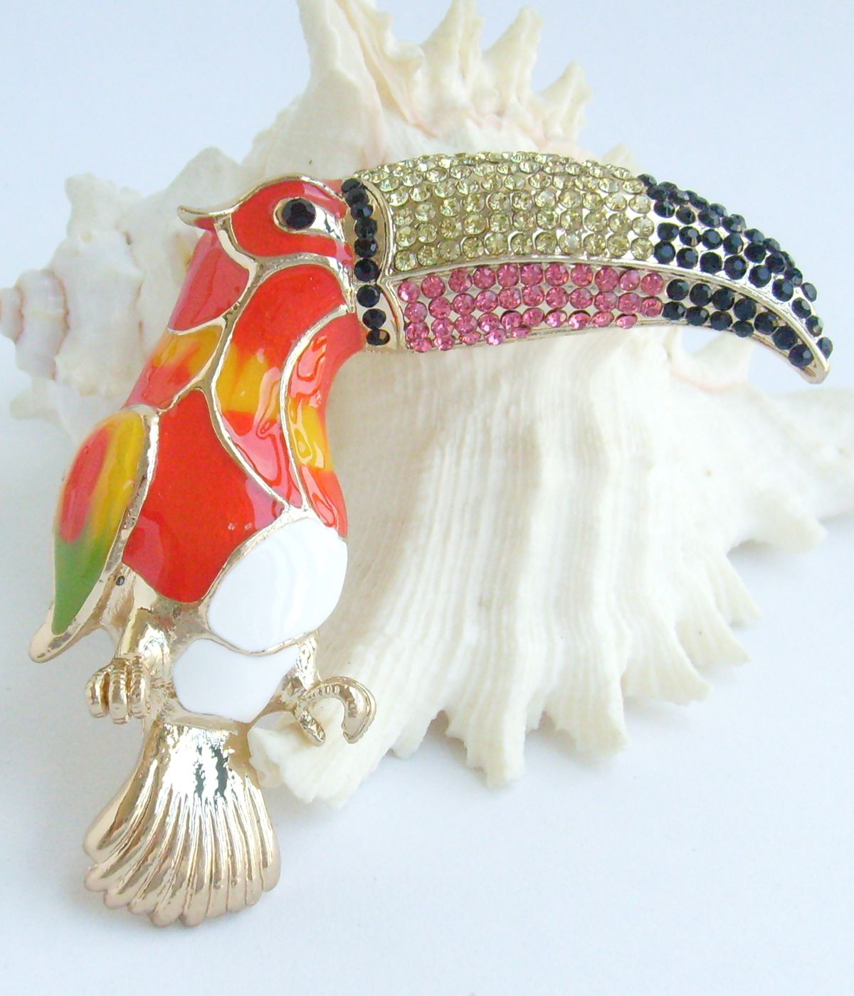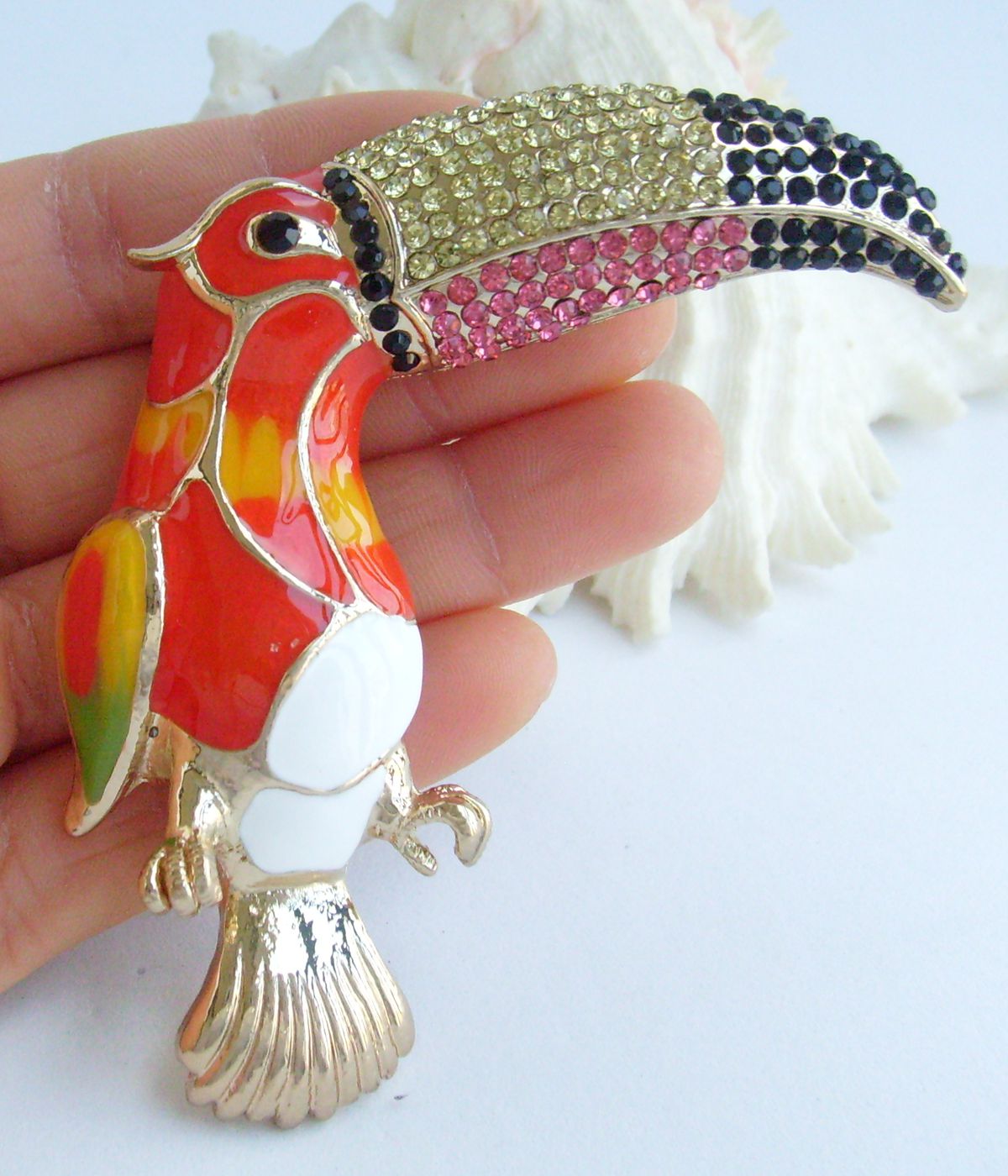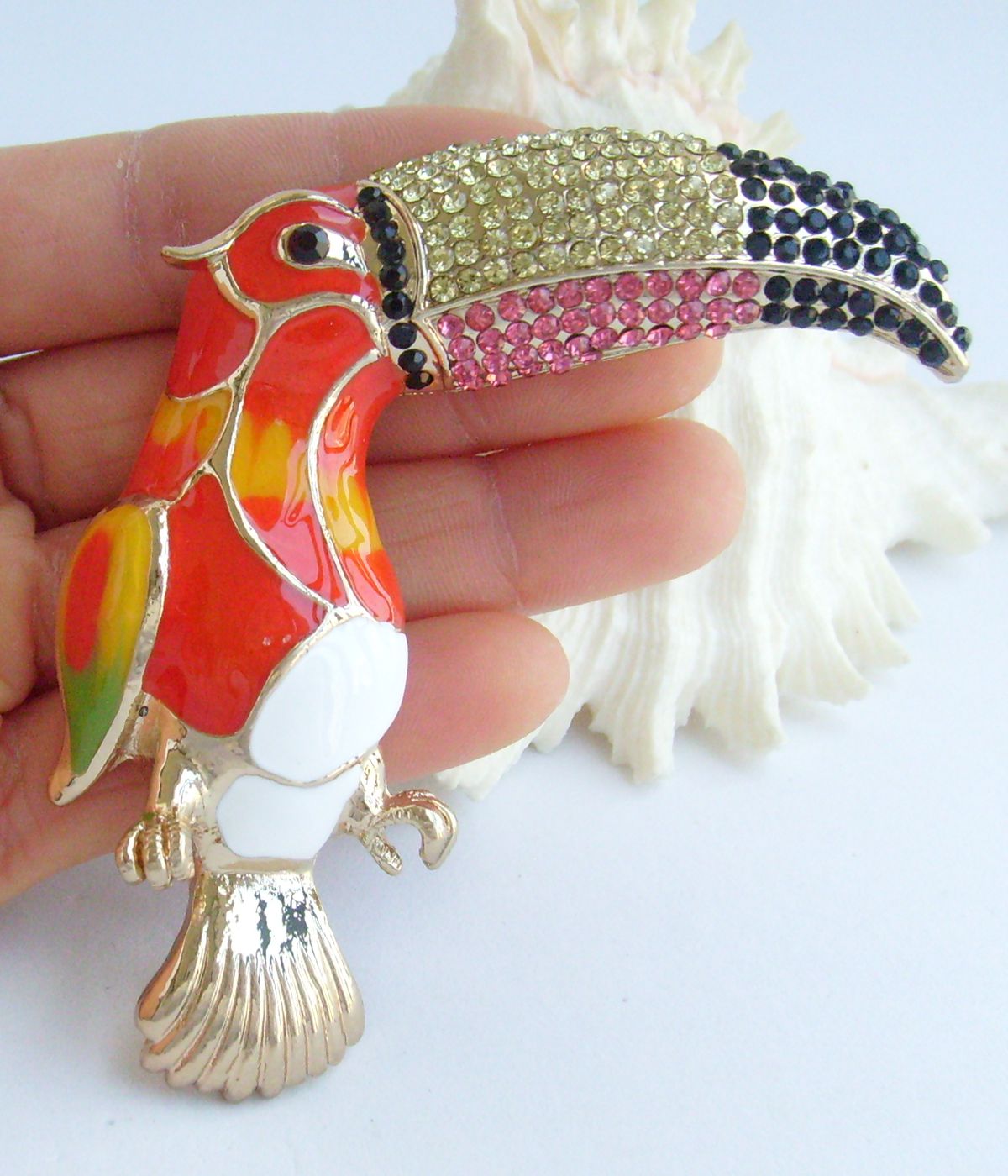 Sindary Rhinestone Crystal Animal Toucan Bird Brooch Pin Pendant Orange Red Enamel Brooch BP02109