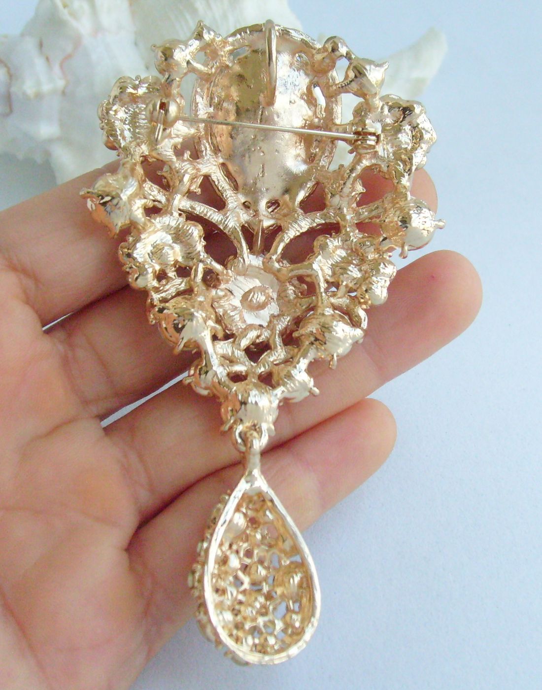 The size of the brooch: 10.0cm (3.94 inch) Length by 5.5cm (2.17 inch) Width.