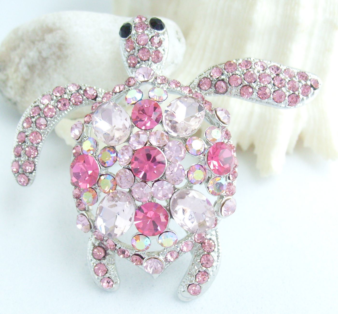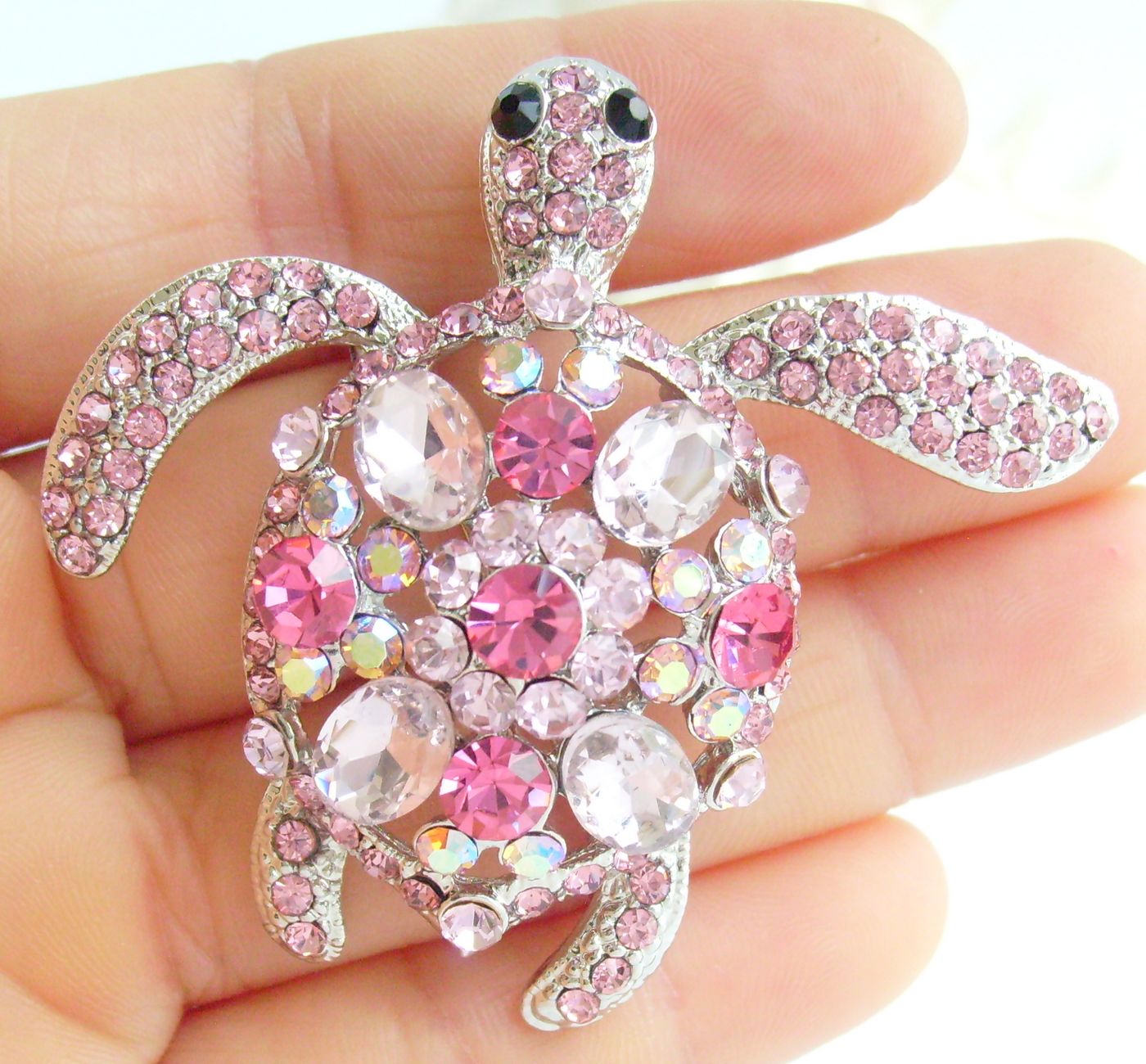 Sindary Rhinestone Crystal Turtle Tortoise Brooch Pin Pendant Animal Pin BP03344 (Silver-Tone Pink) 20g