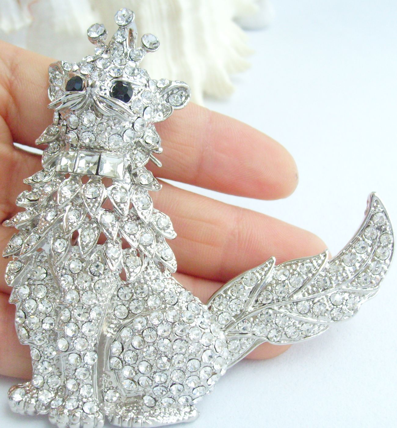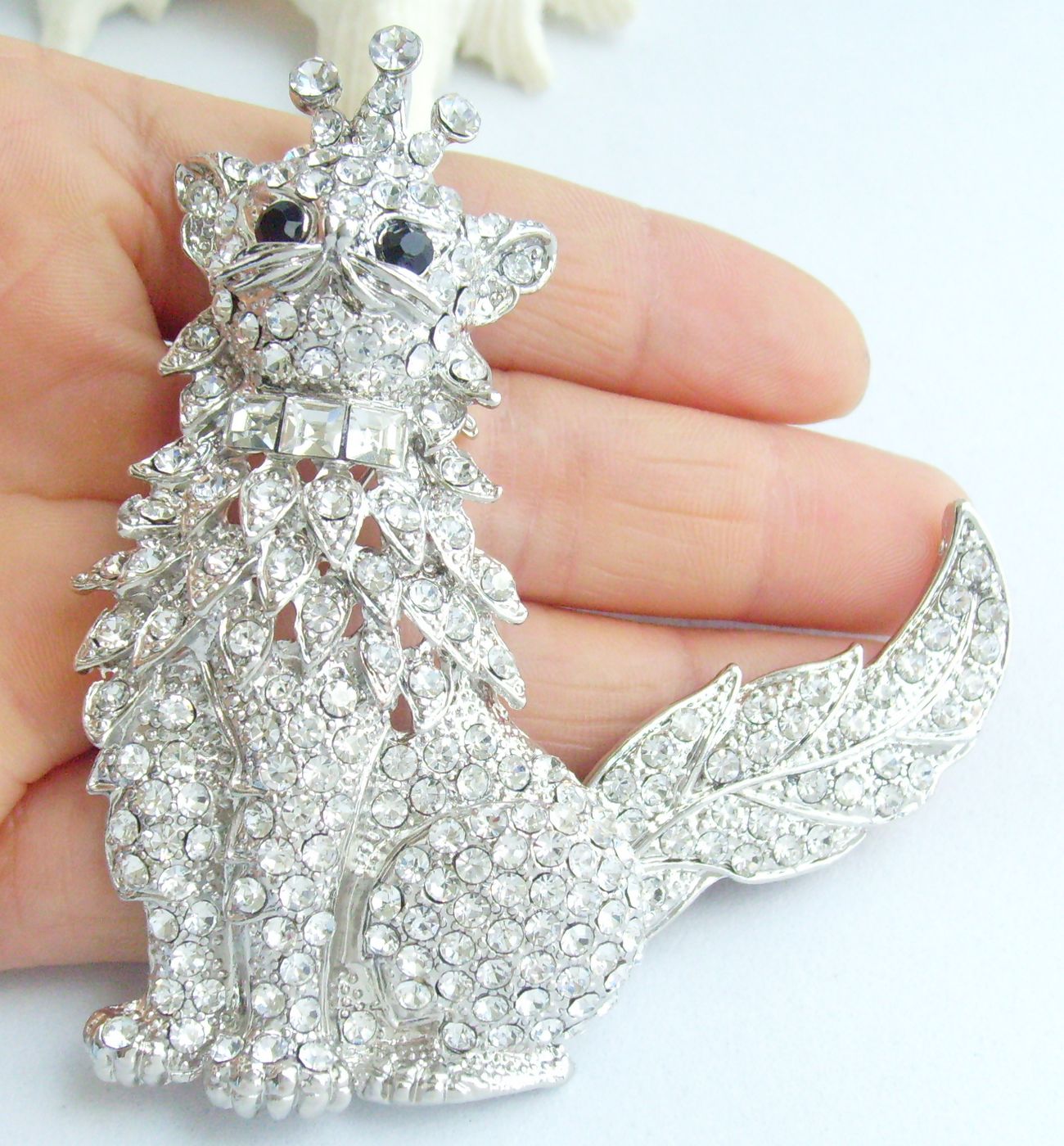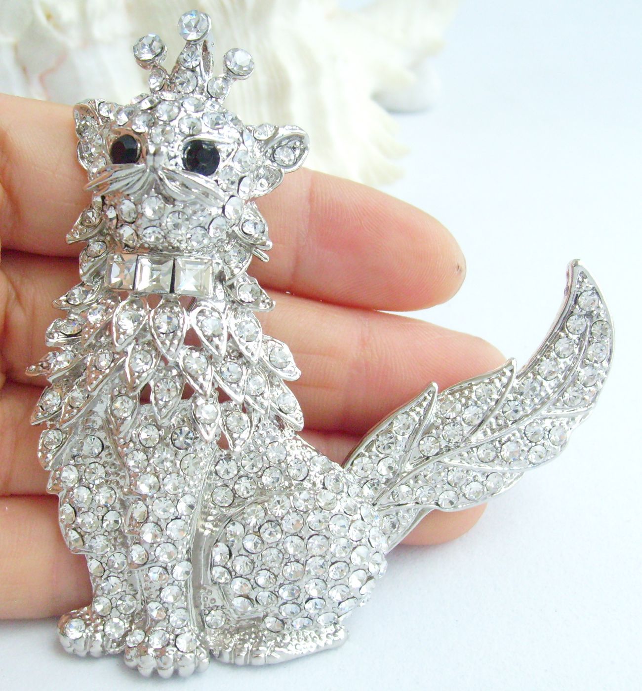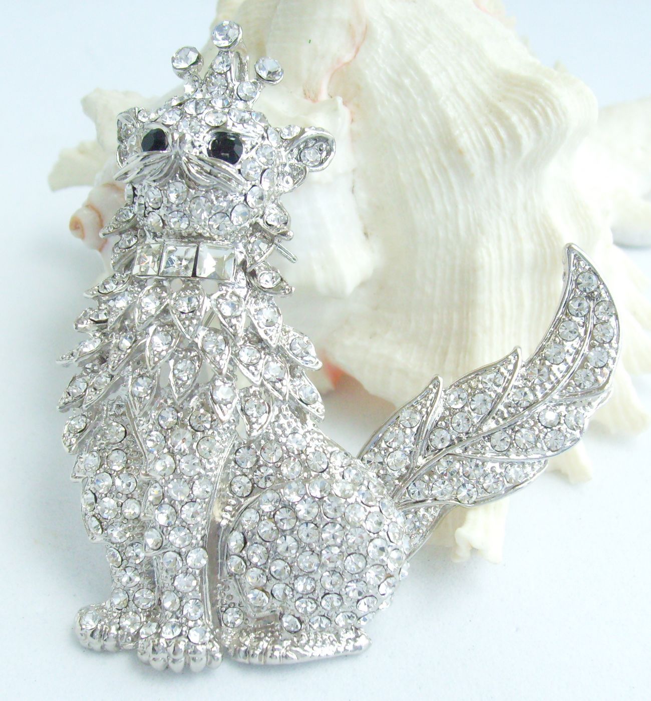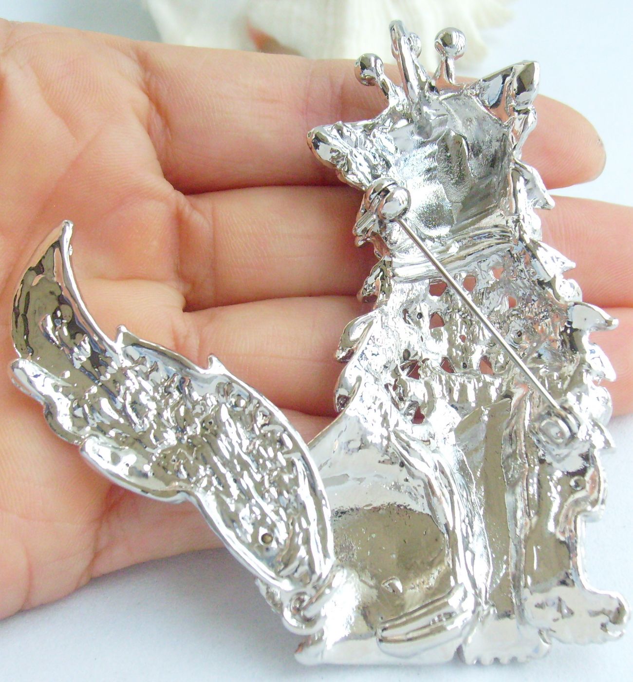 Sindary Rhinestone Crystal Lovely Cat Kitty Brooch Pin Pendant Animal Pin BP05953 (Silver-Tone Clear) 40g