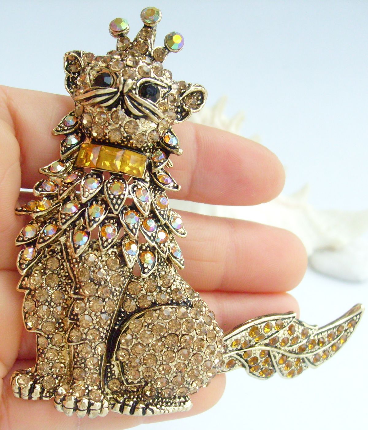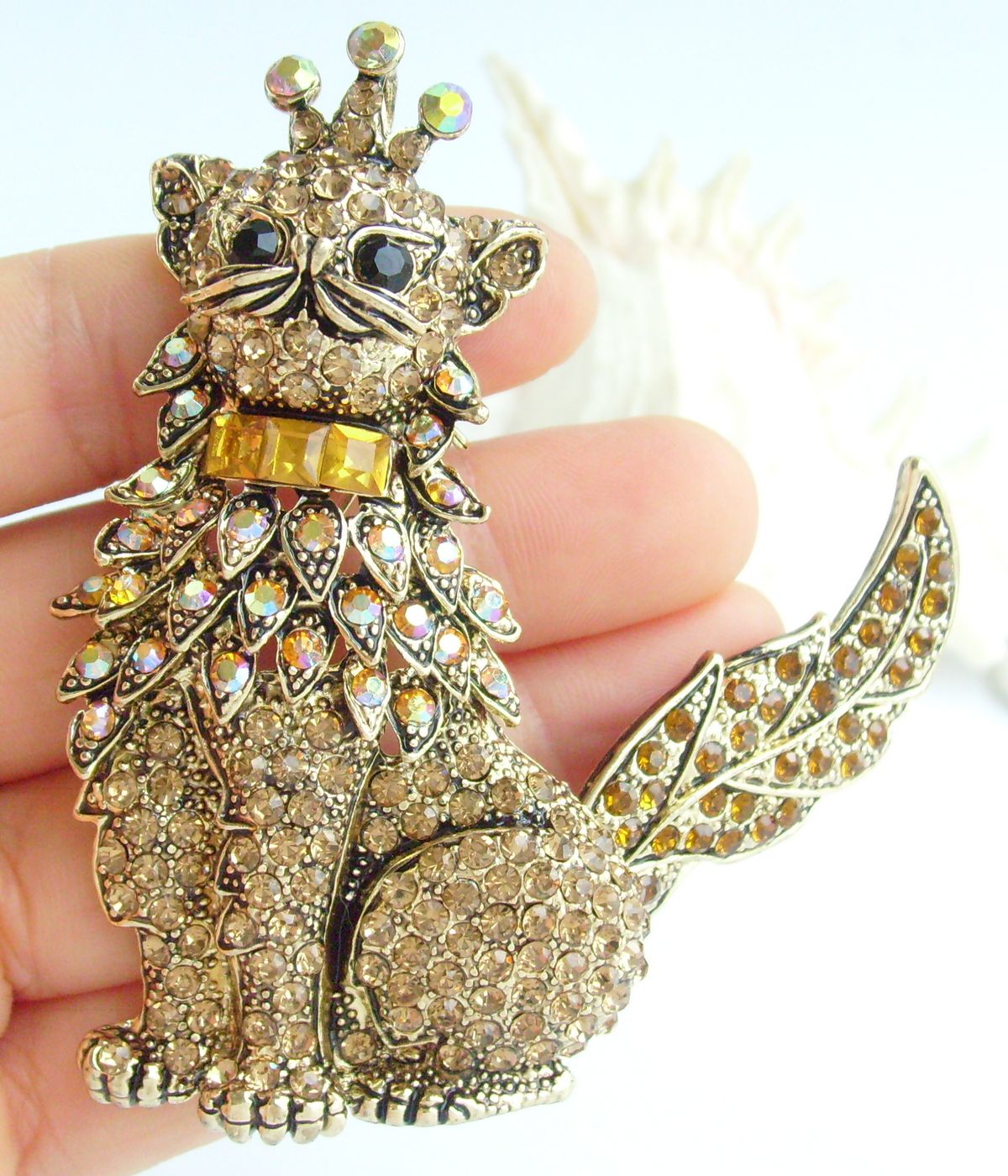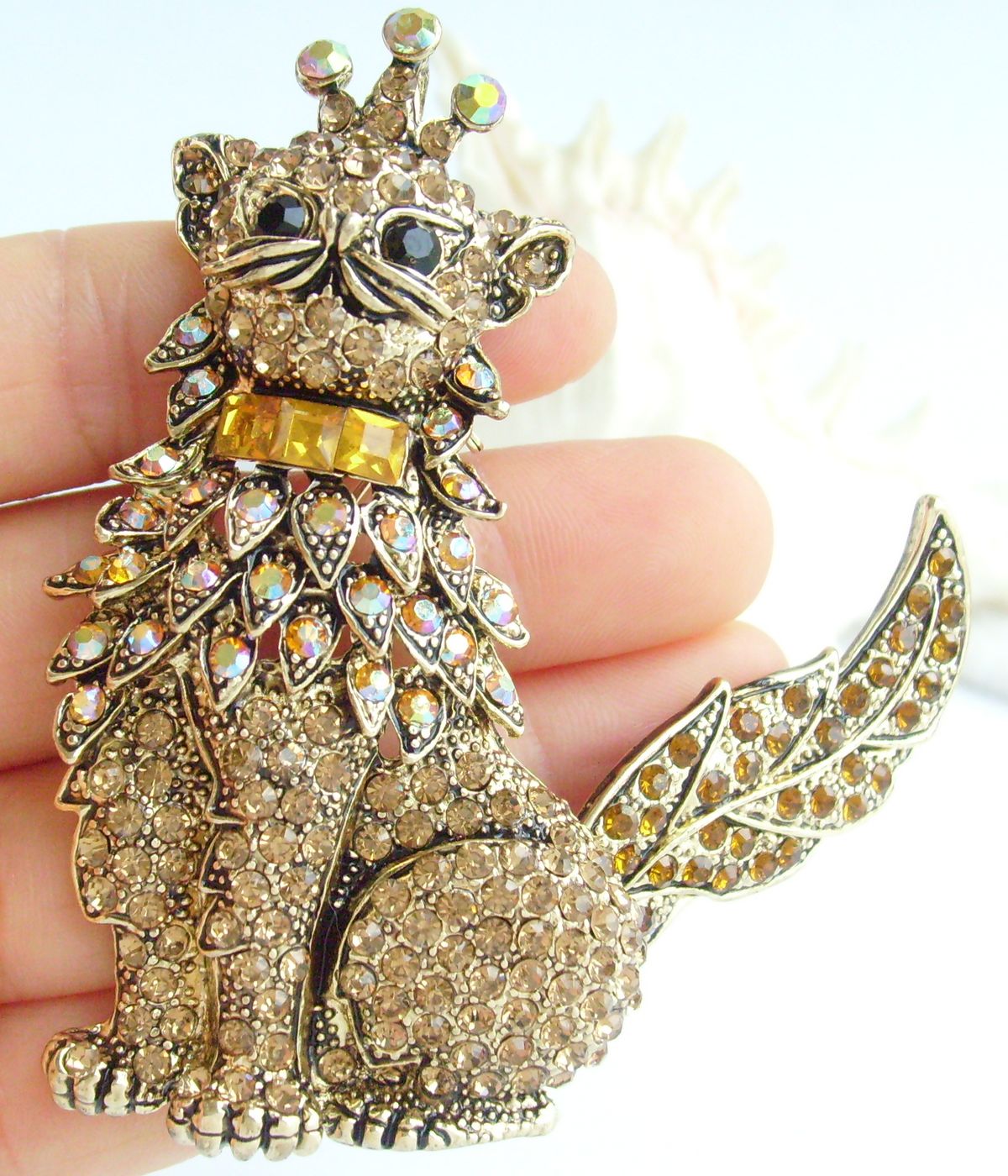 Sindary Rhinestone Crystal Lovely Cat Kitty Brooch Pin Pendant Animal Pin BP05953 (Gold-Tone Brown) 40g