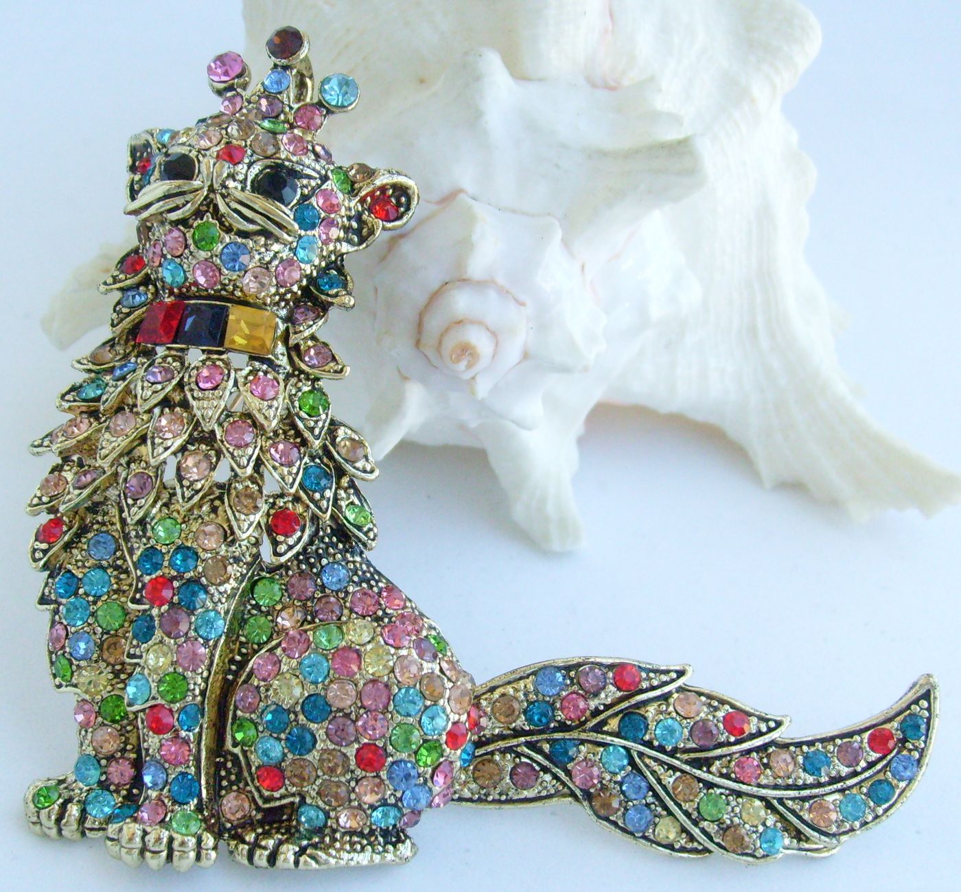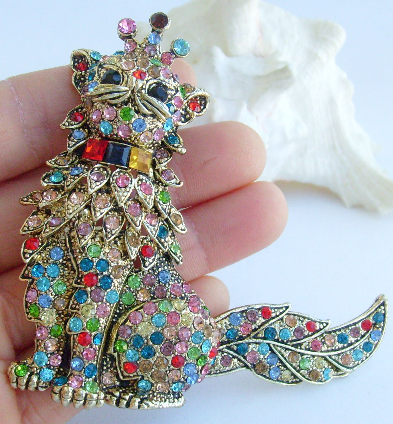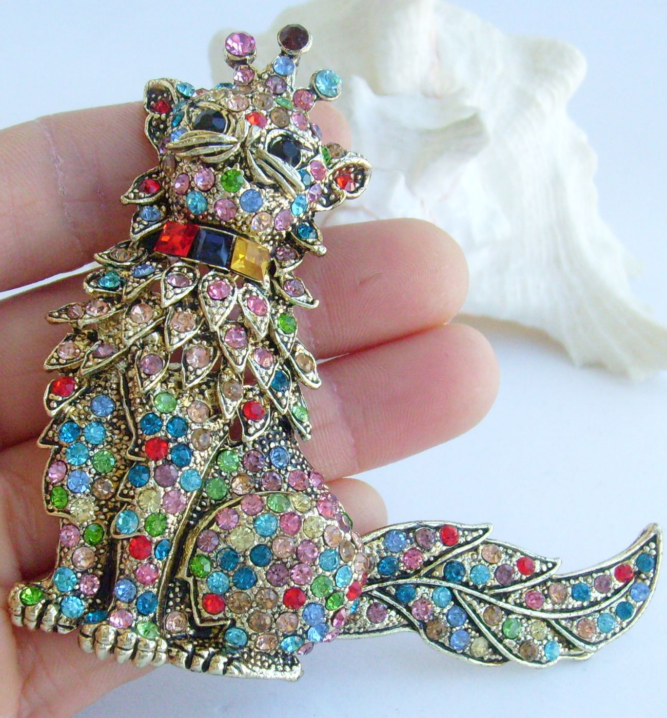 Sindary Rhinestone Crystal Lovely Cat Kitty Brooch Pin Pendant Animal Pin BP05953 (Gold-Tone Multicolor) 40g