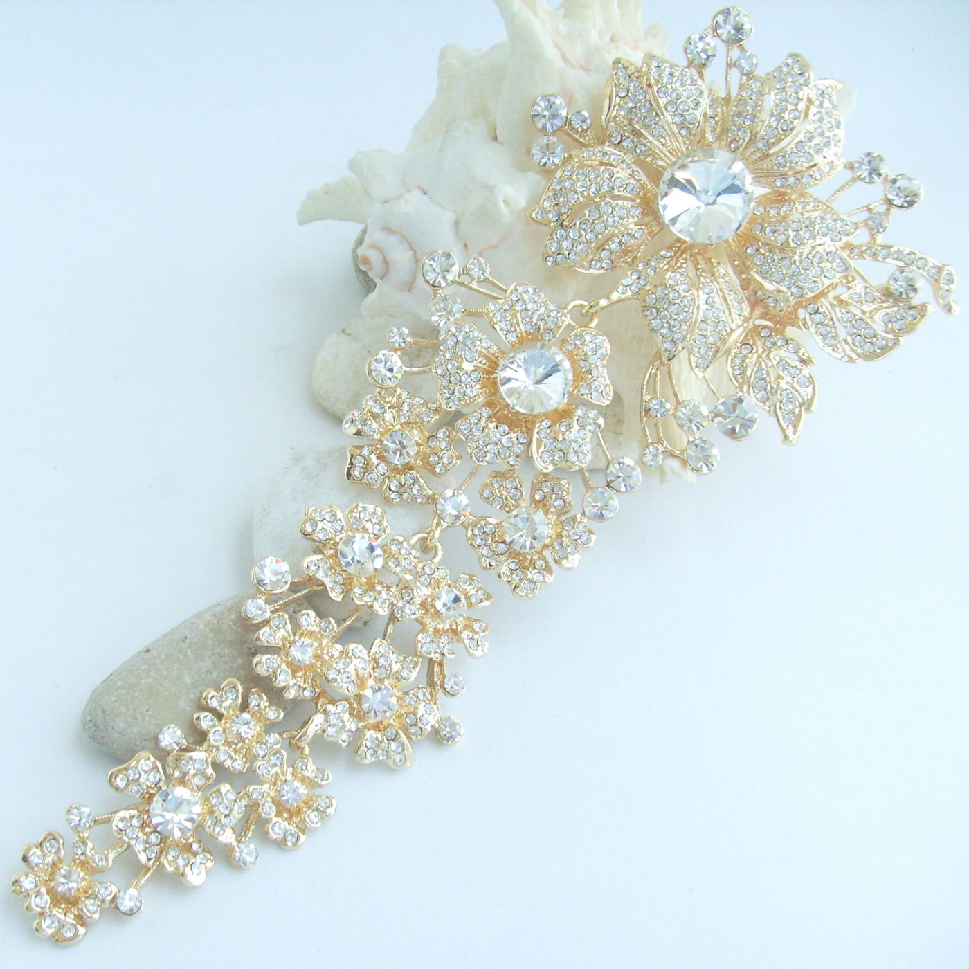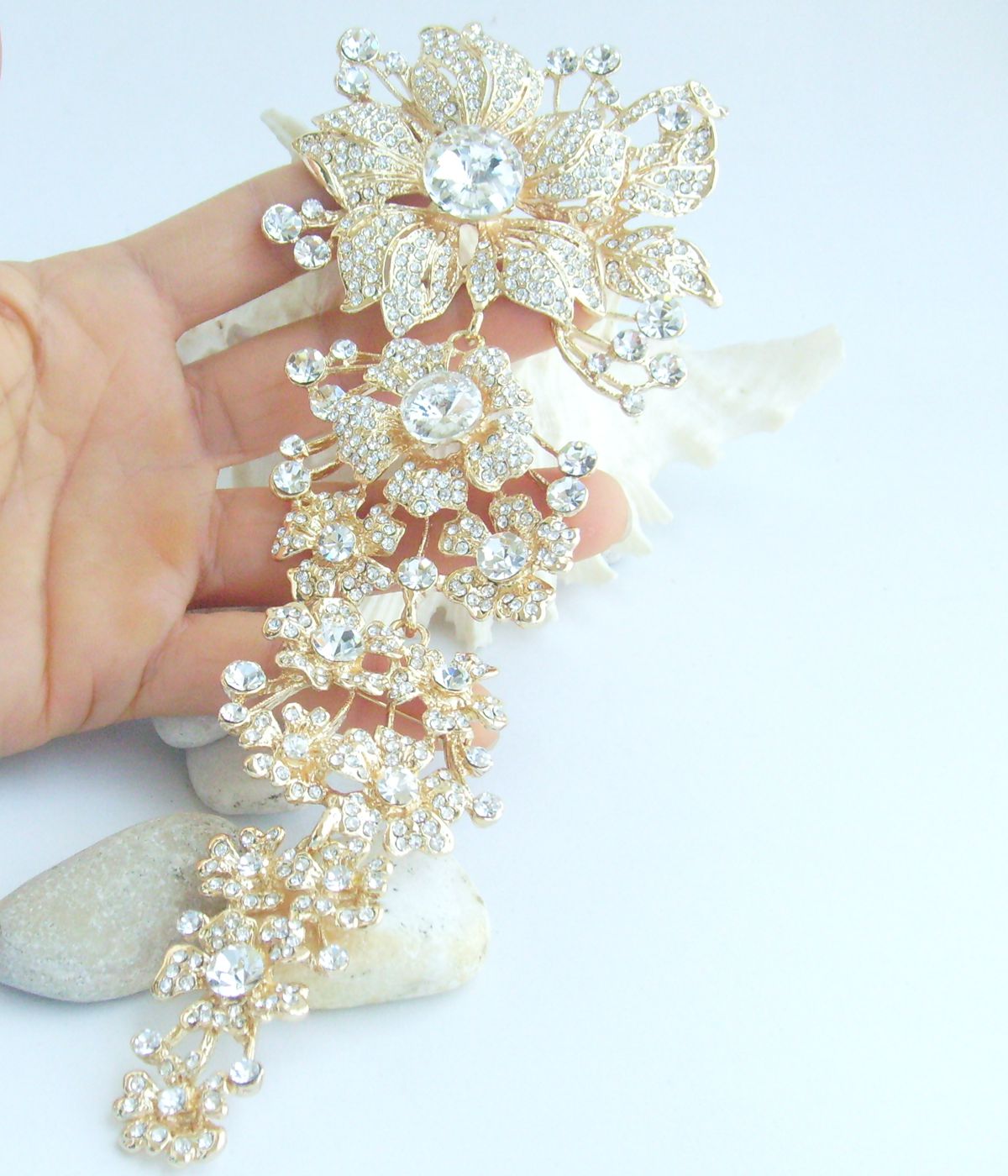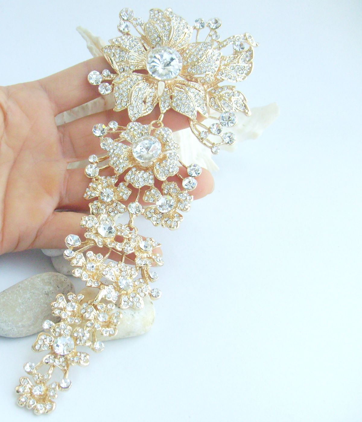Sindary Austrian Crystal 7.3 Inch Long Flower Brooch Pin Pendant Rhinestone Pin BP04704 (Gold-Tone Clear) 90g