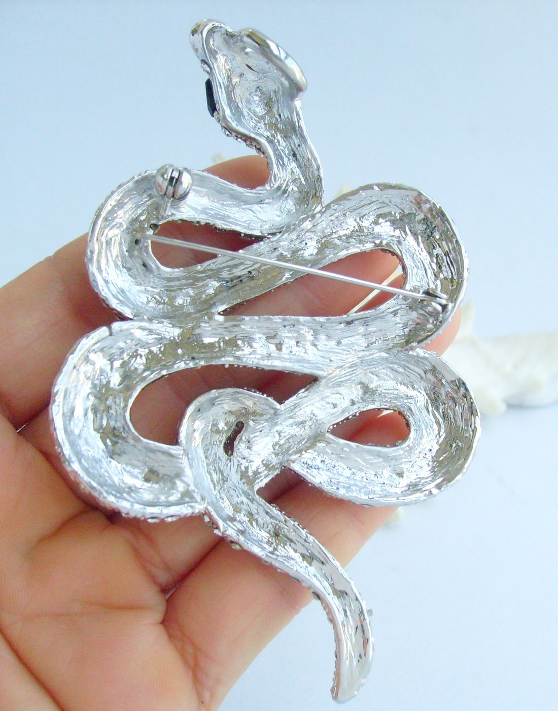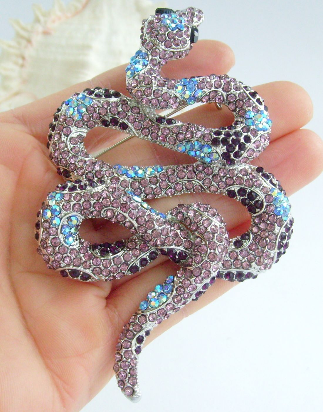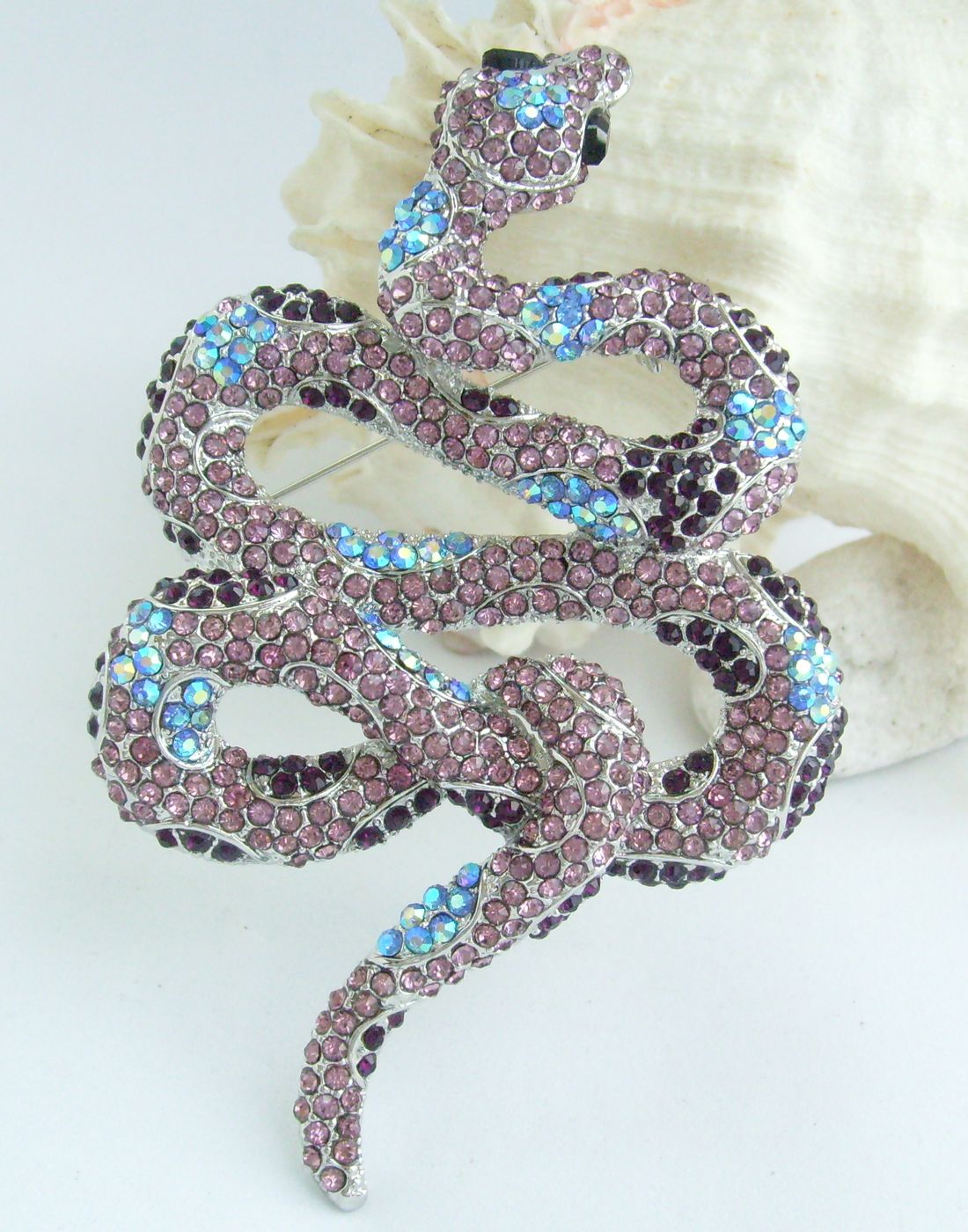 Sindary Rhinestone Crystal 4 Inch Unique Snake Brooch Pin Animal Pendant BP05847 (Silver-Tone Purple) 45g