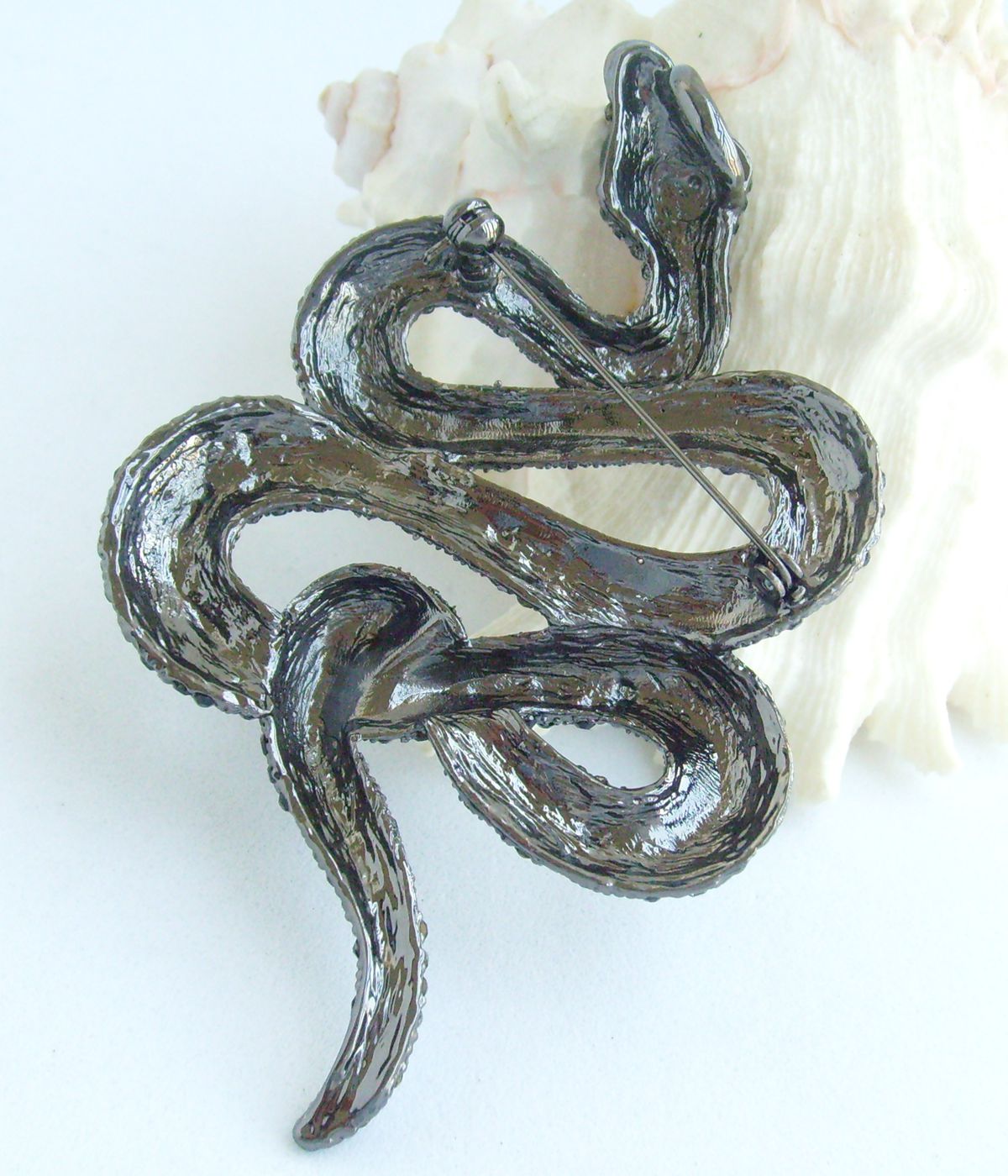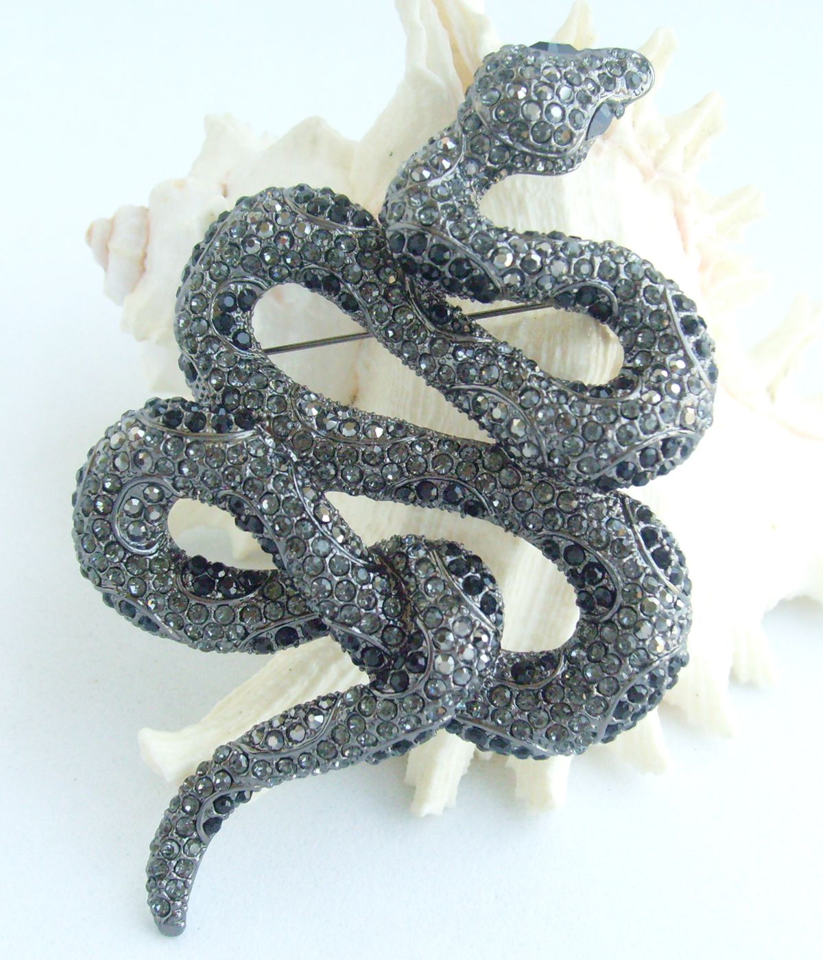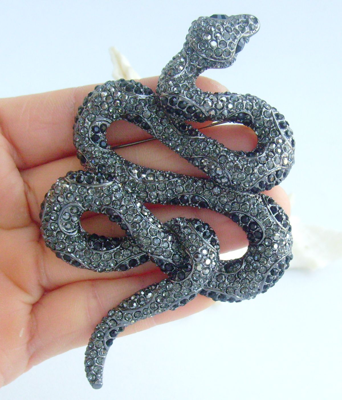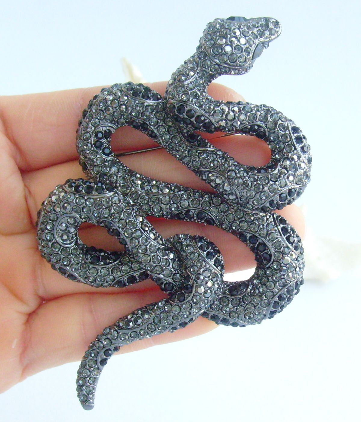 Sindary Rhinestone Crystal 4 Inch Unique Snake Brooch Pin Animal Pendant BP05847 (Black-Tone Black Gray) 45g