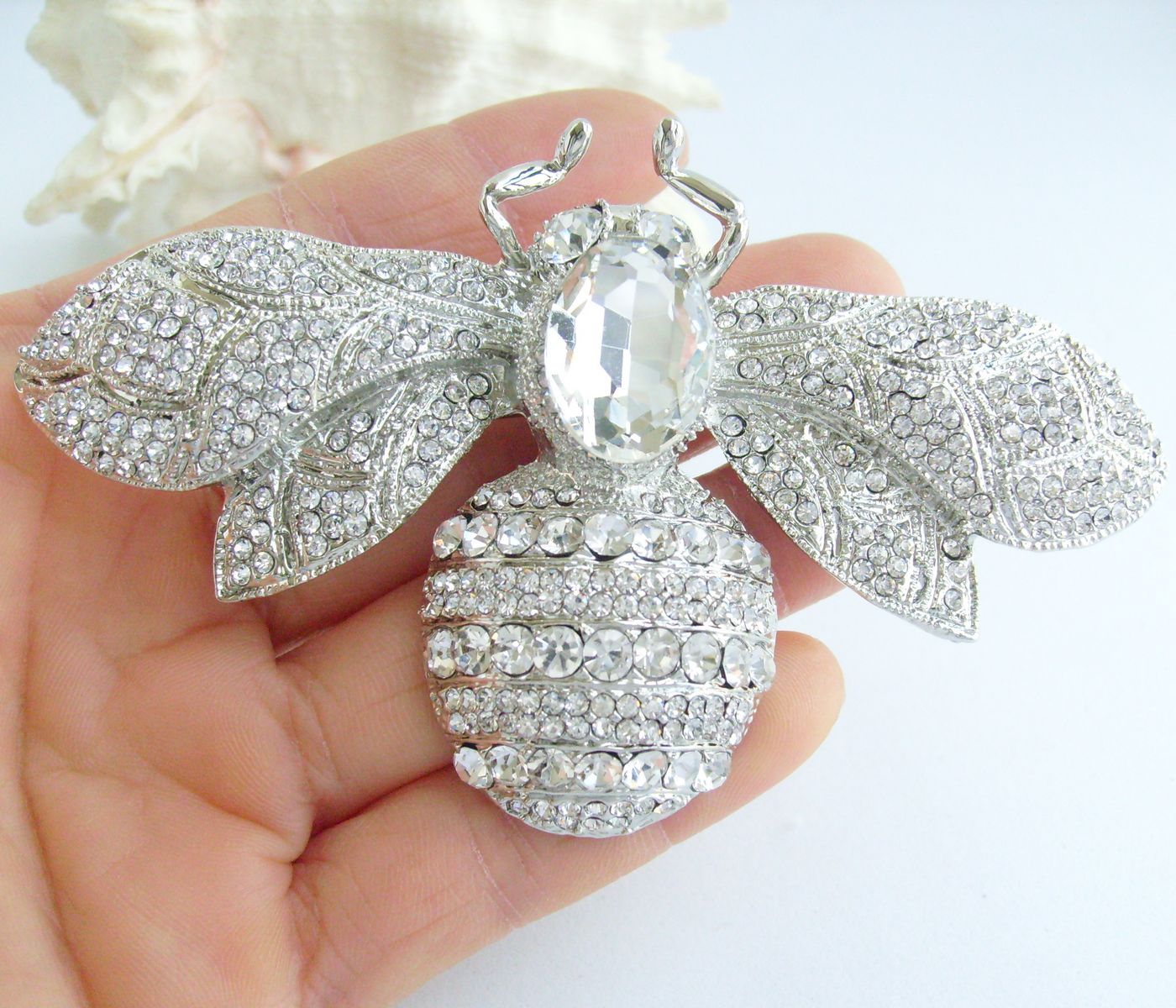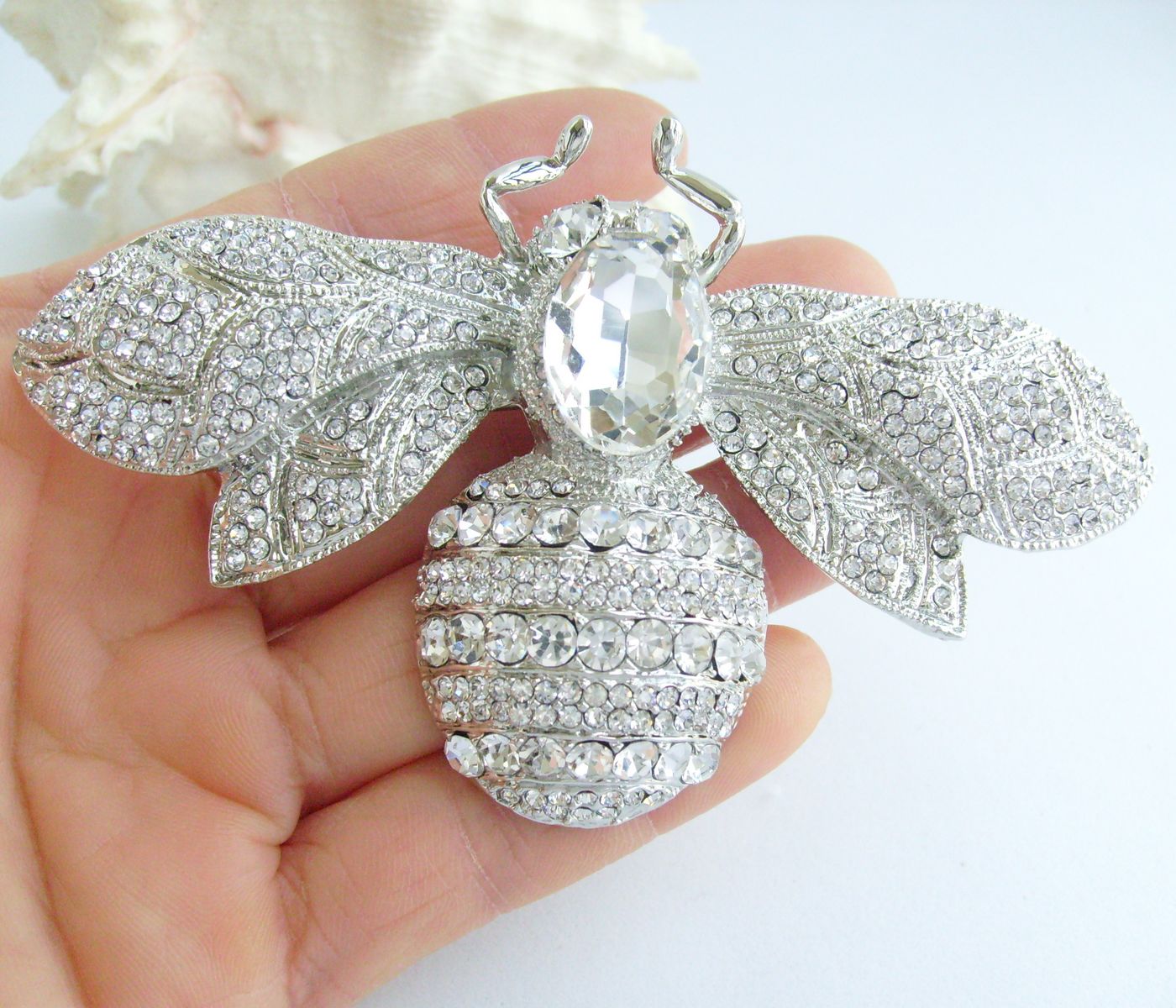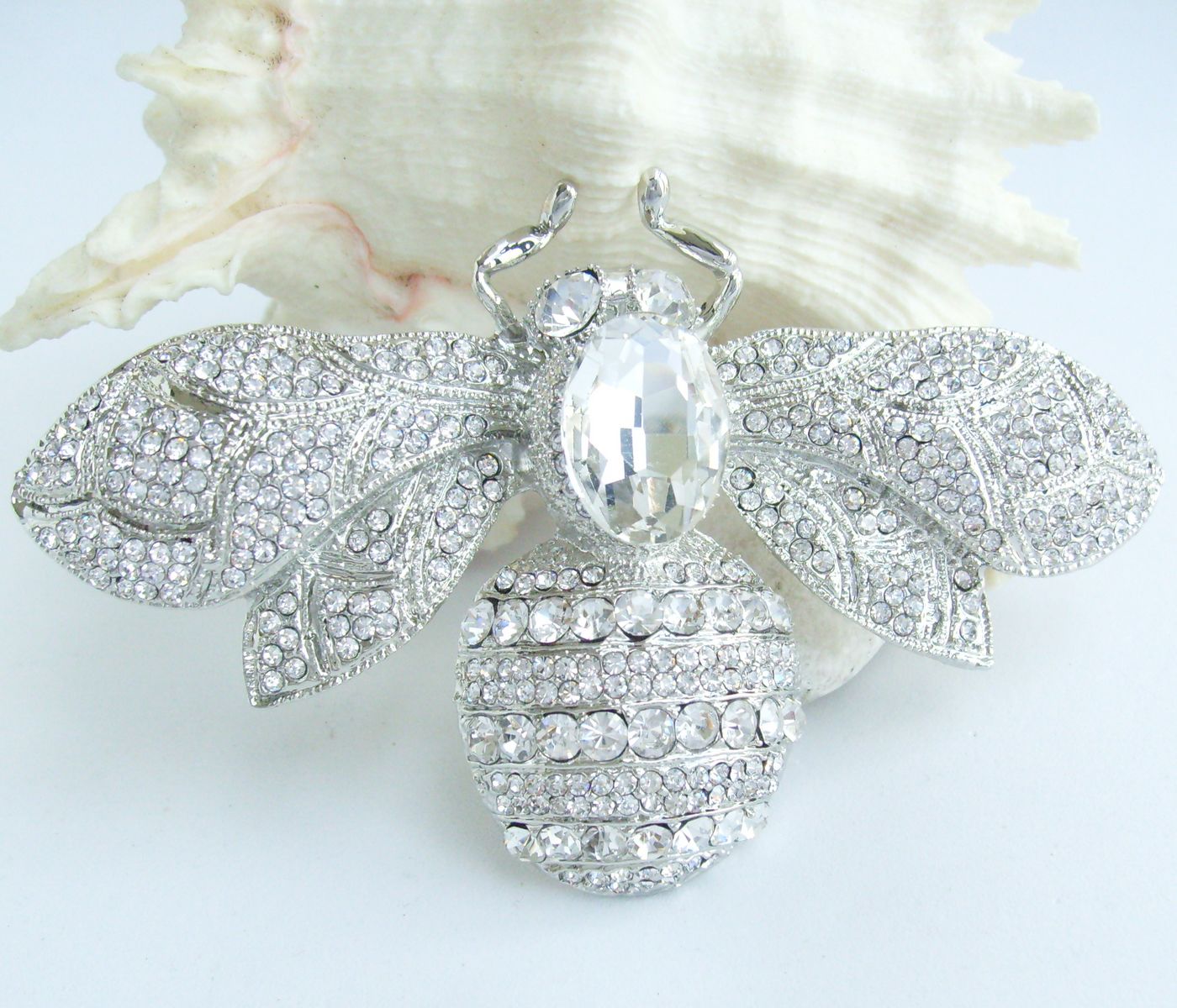 Sindary Rhinestone Crystal Insect Honeybee Bee Brooch Pin Animal Pendant BP06608 (Silver-Tone Clear) 50g