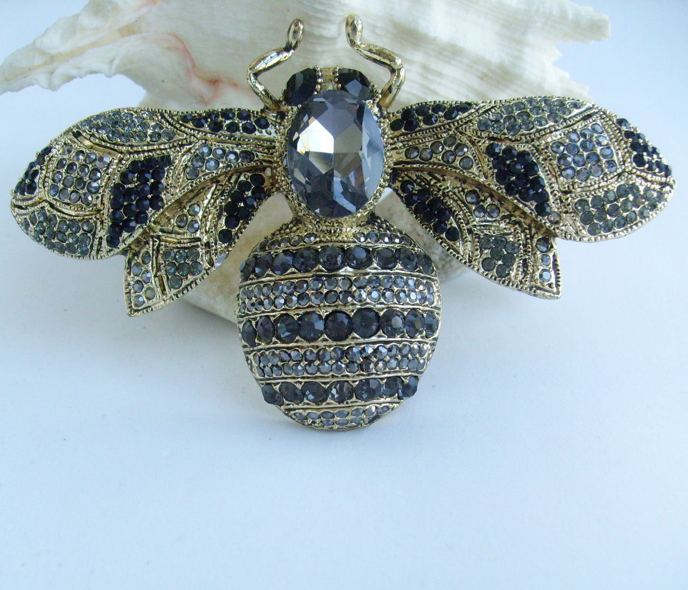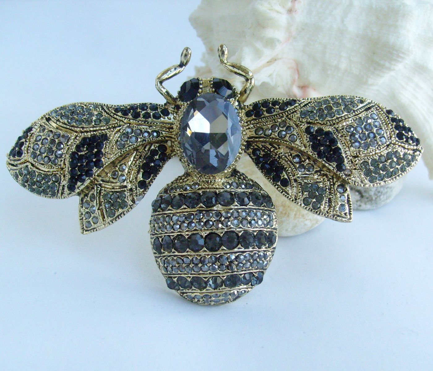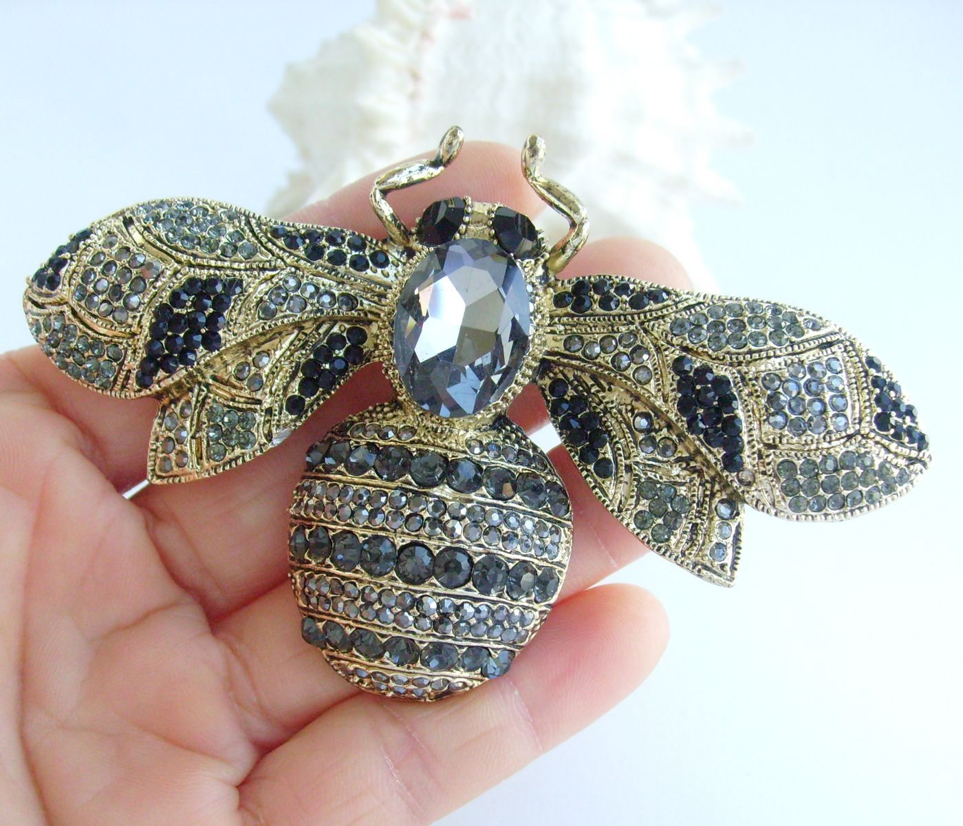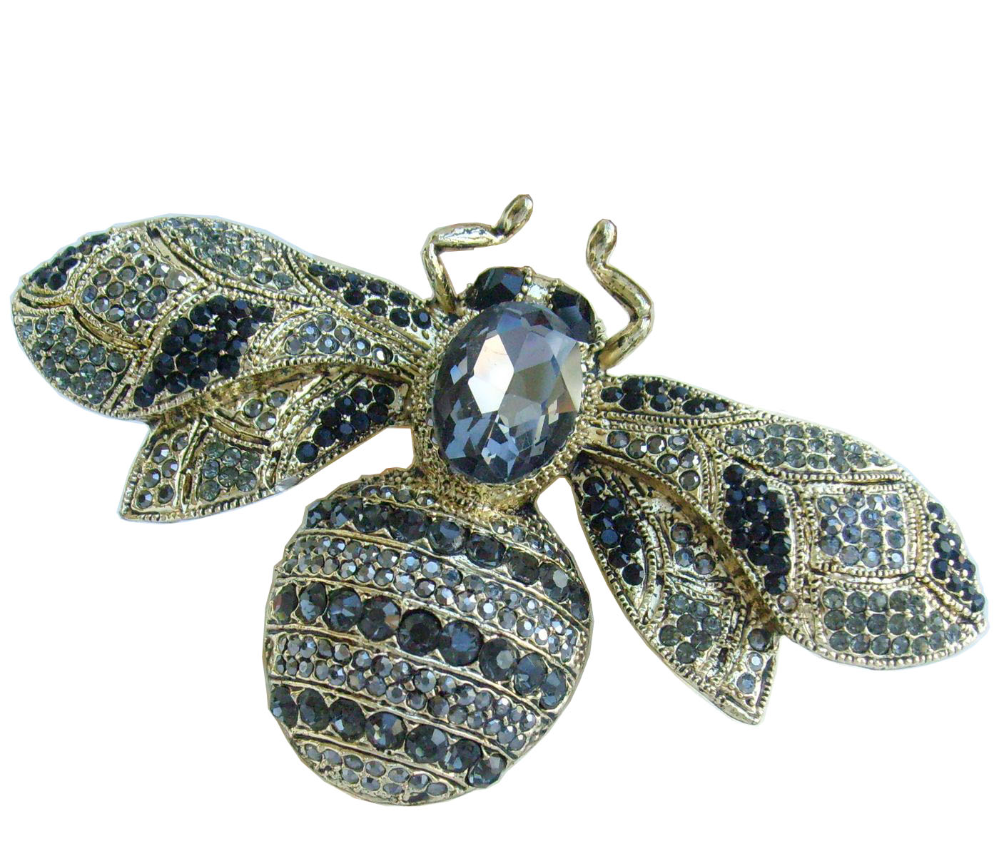 Sindary Rhinestone Crystal Insect Honeybee Bee Brooch Pin Animal Pendant BP06608 (Gold-Tone Black Gray) 50g