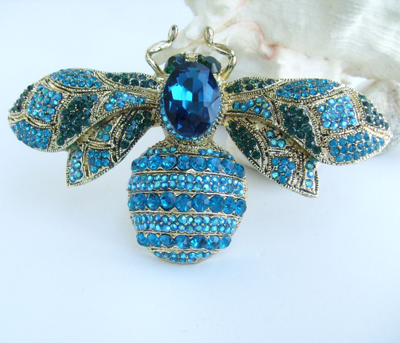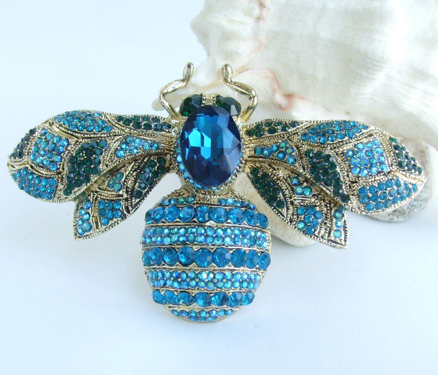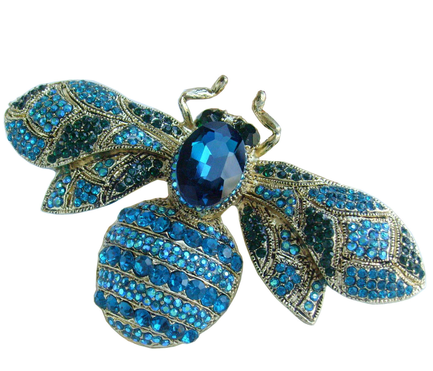 Sindary Rhinestone Crystal Insect Honeybee Bee Brooch Pin Animal Pendant BP06608 (Gold-Tone Turquoise Green) 50g