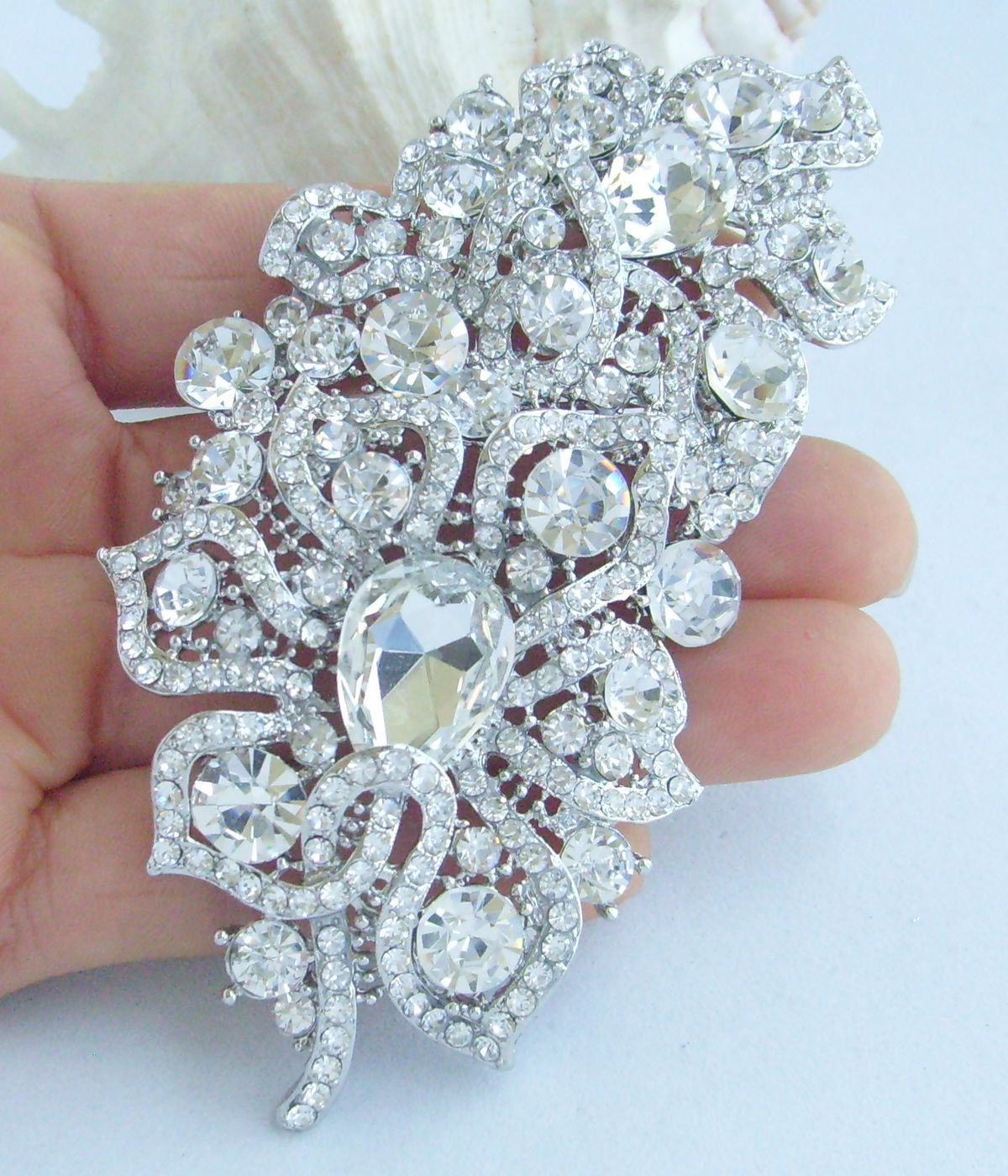 Sindary Rhinestone Crystal Elegant Flower Brooch Pin Pendant BP05093 (Silver-Tone Clear) 50g
