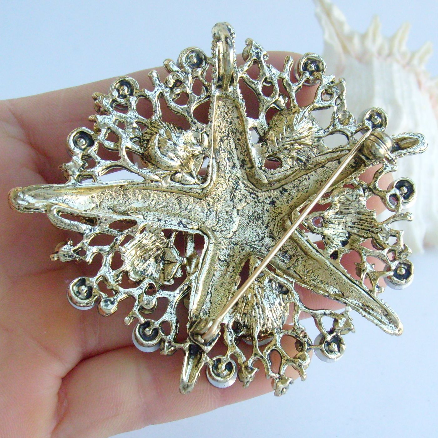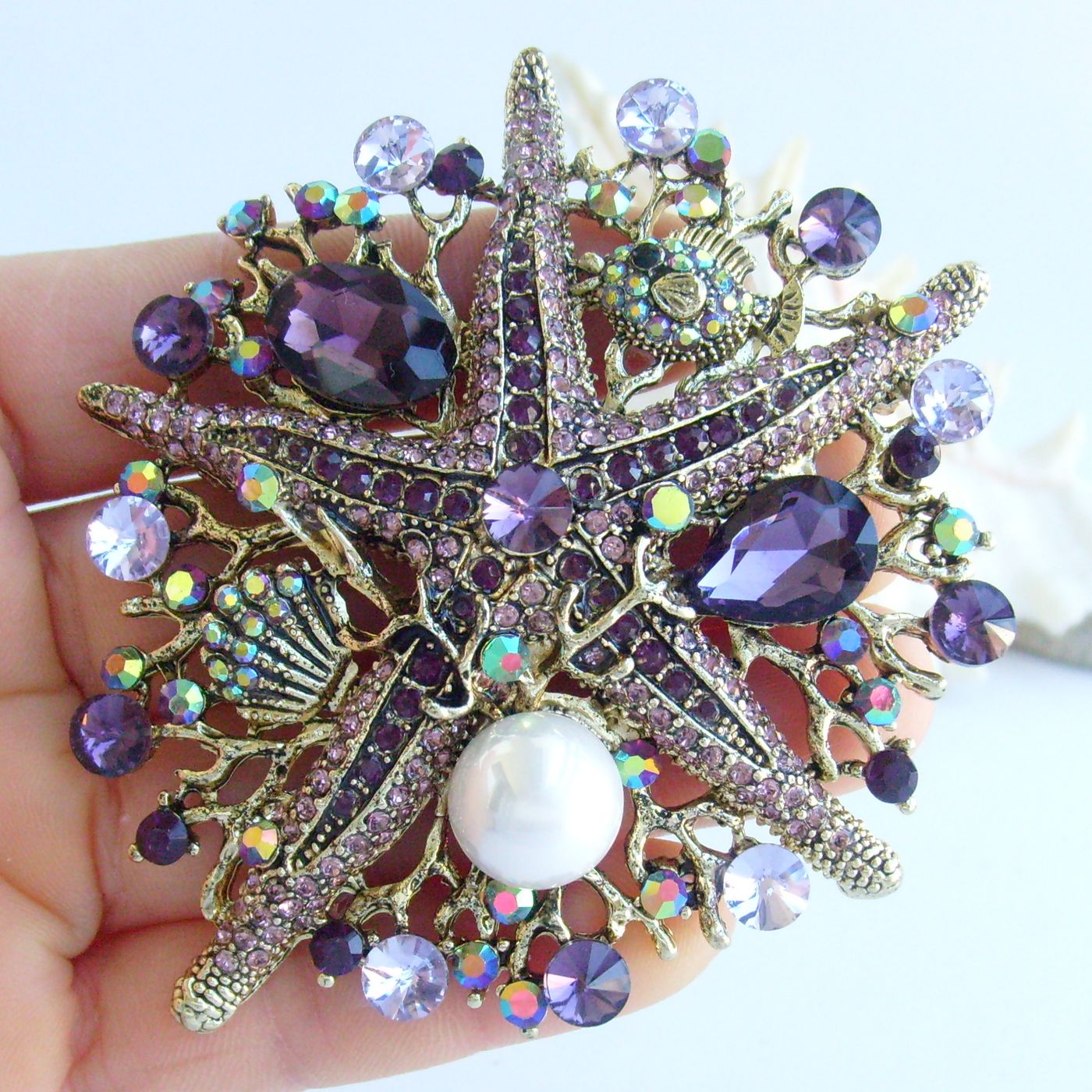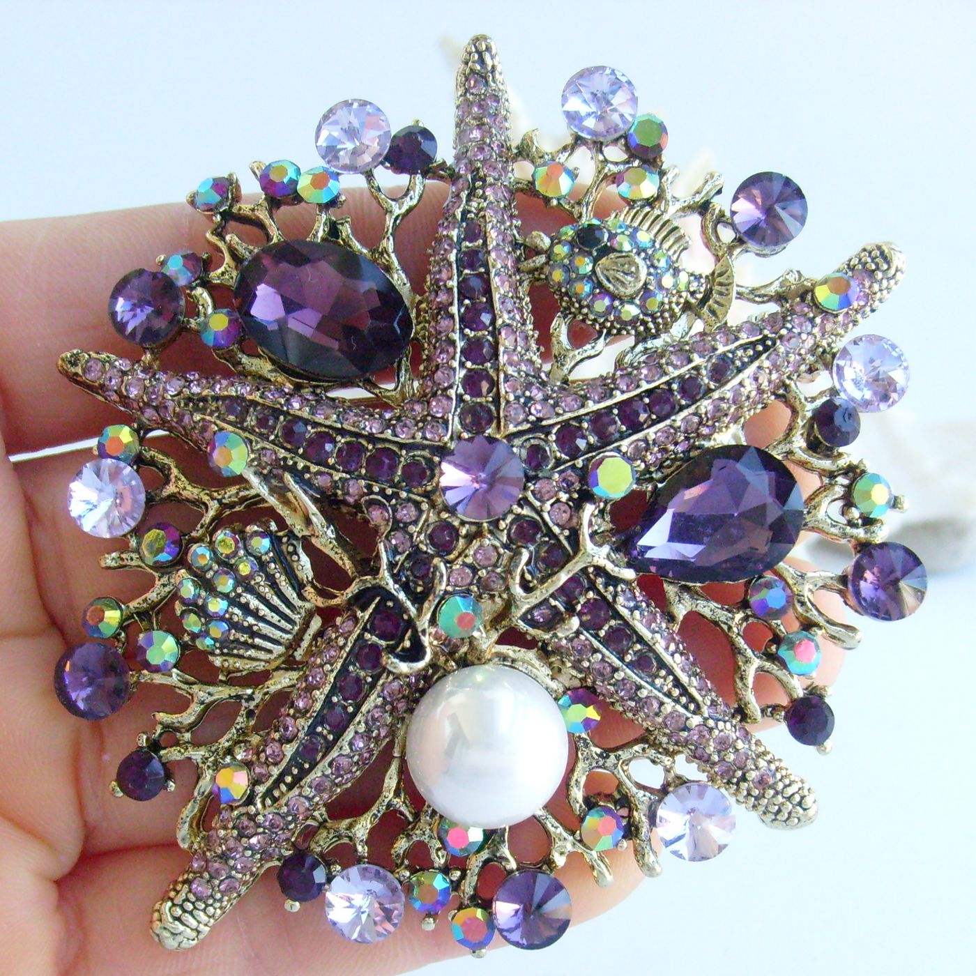 Sindary Rhinestone Crystal Starfish Brooch Pin Pendant BP06412 (Gold-Tone Purple) 50g