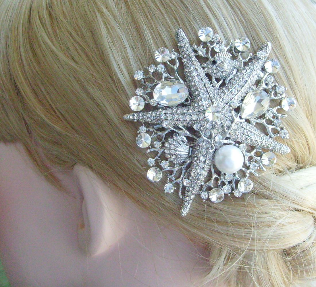 Sindary Wedding Bridal Party Headpiece Starfish Hair Clip Side Comb Rhinestone Hair Comb HC06412 (Silver-Tone Clear) 60g