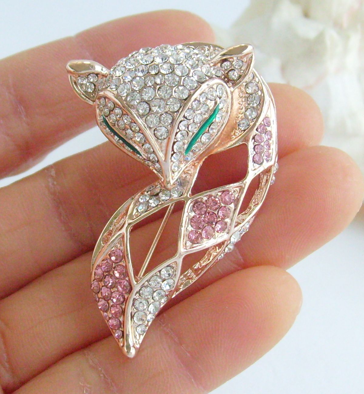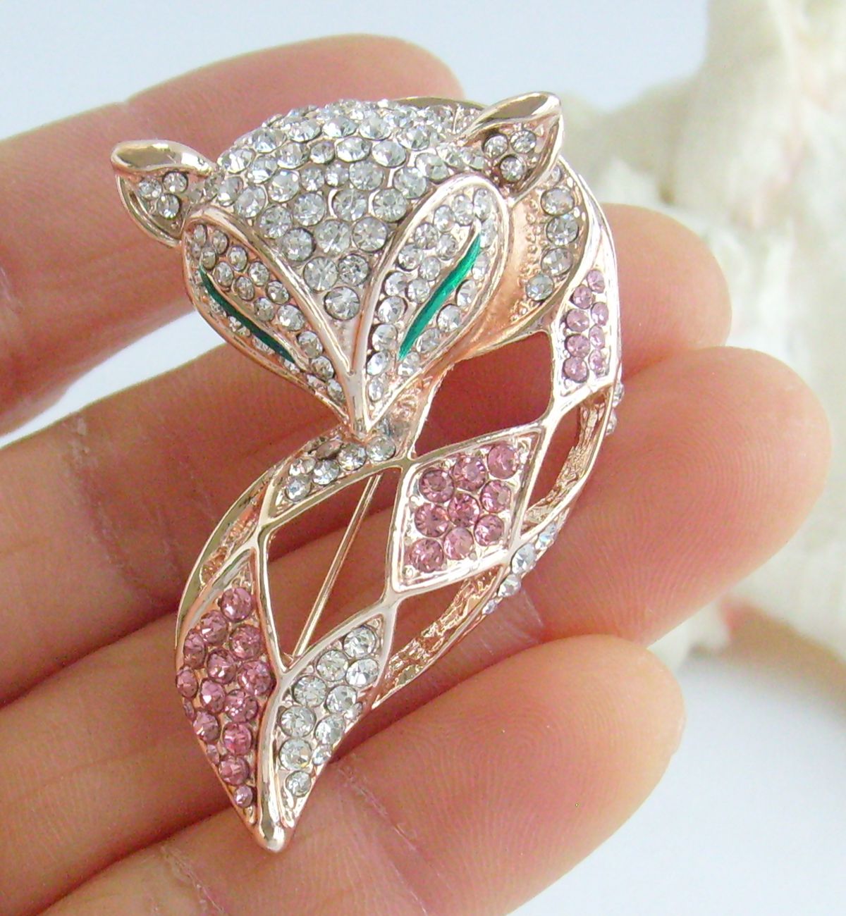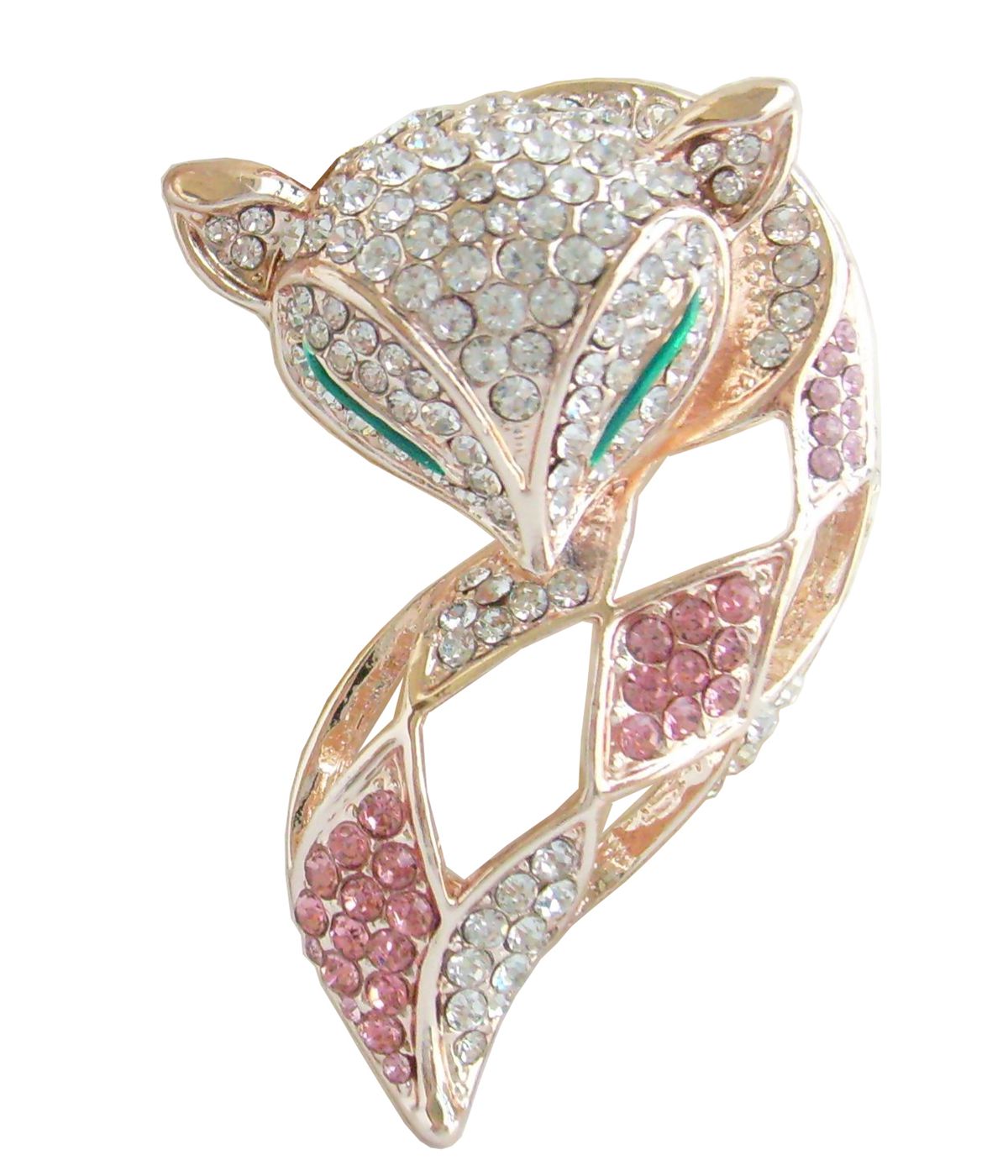 Sindary Rhinestone Crystal Animal Fox Brooch Pin Pendant Animal Pin BP06347 (Gold-Tone Pink Clear) 20g