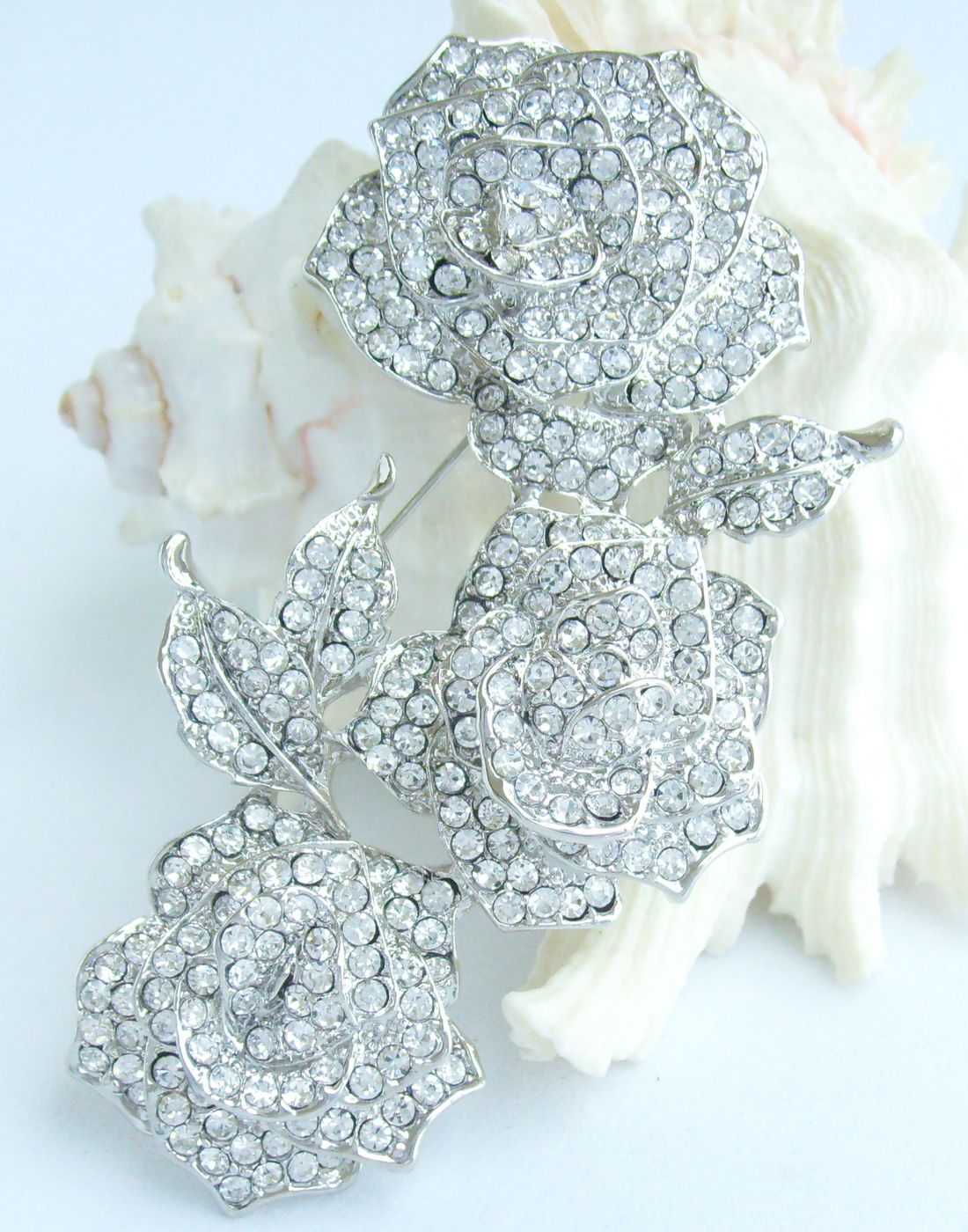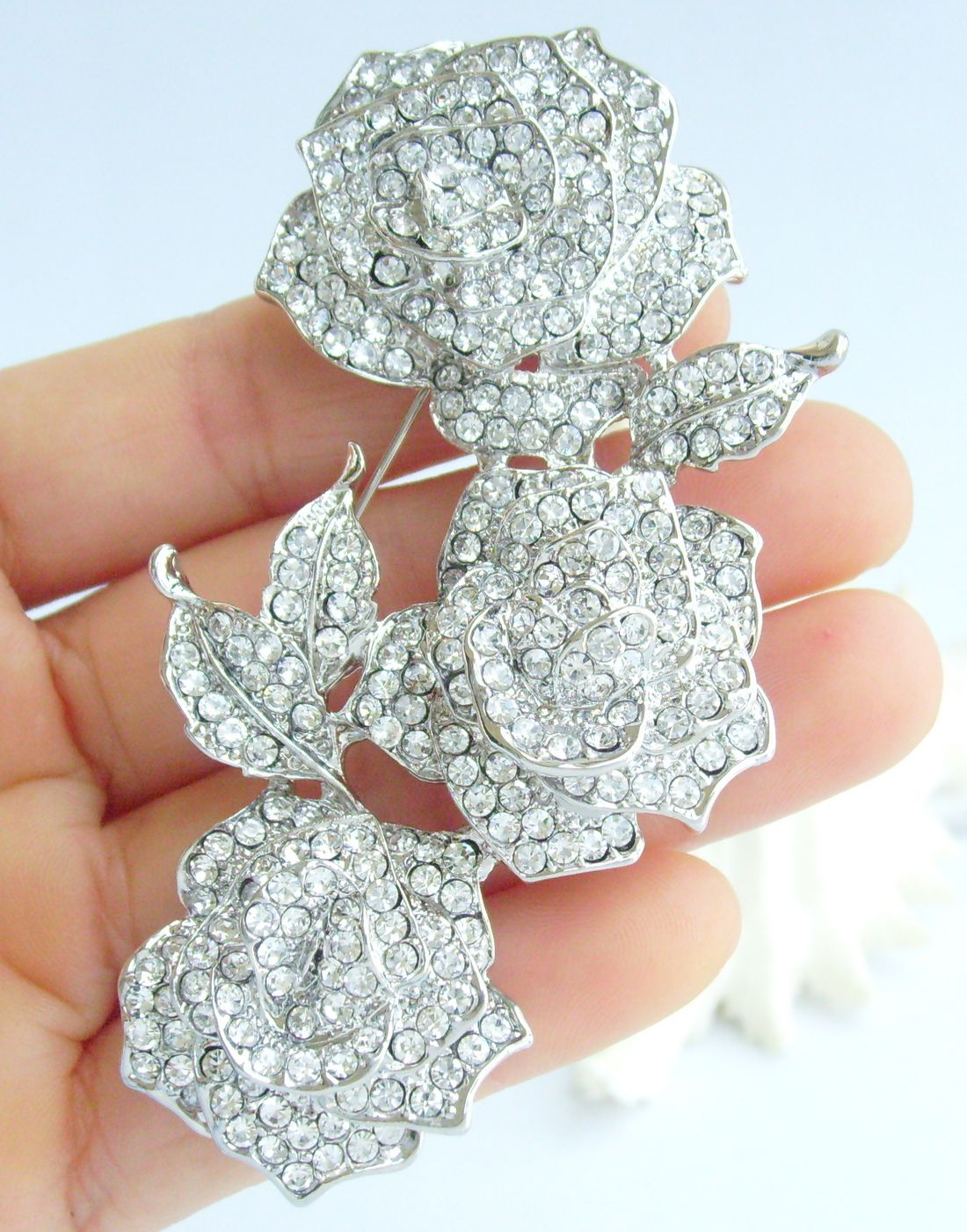Sindary Rhinestone Crystal Rose Flower Brooch Pin Pendant BP03612 (Silver-Tone Clear) 40g