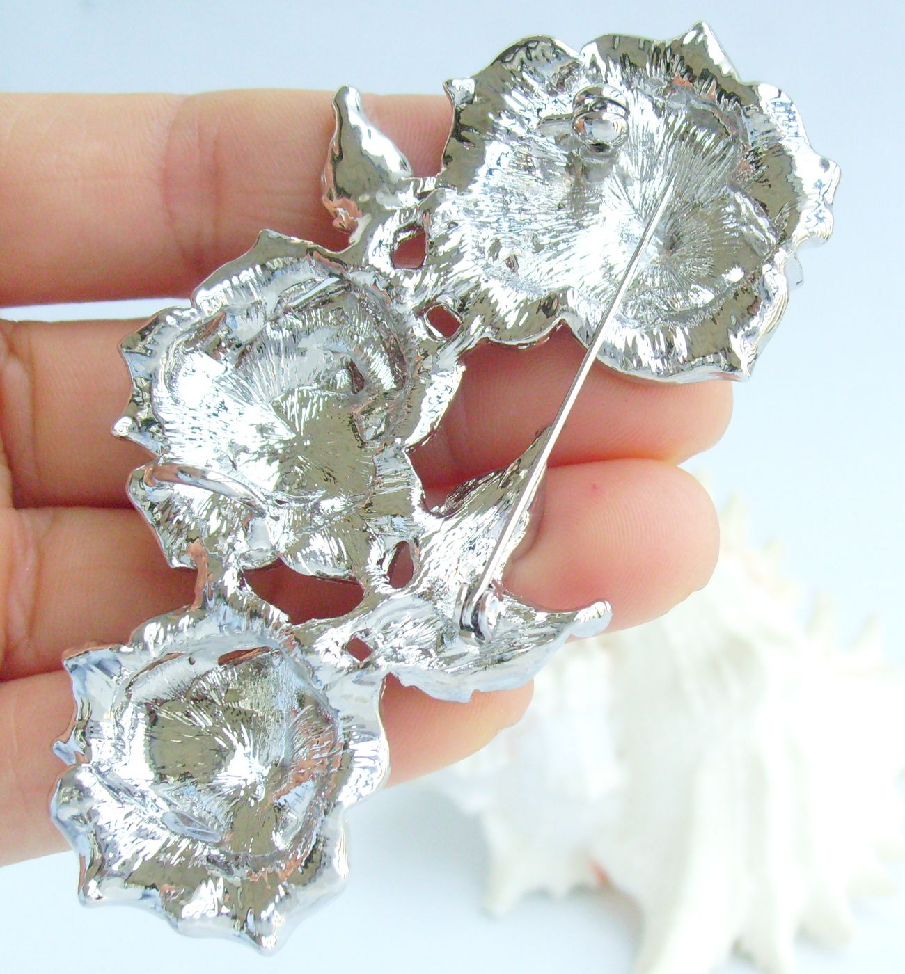 The size of the brooch: 8.5cm (3.35 inch) length by 4.5cm (1.77 inch) width.