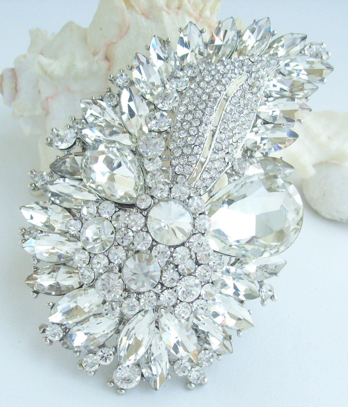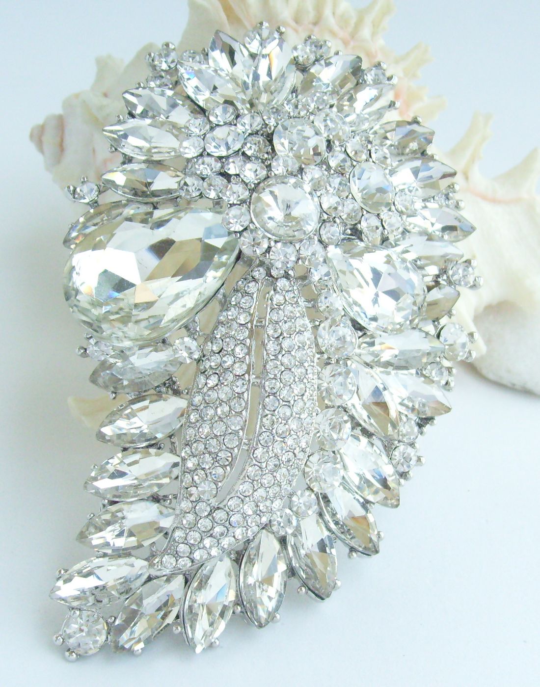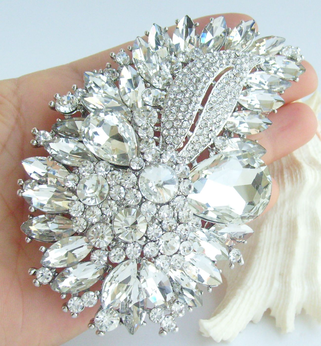 Sindary Rhinestone Crystal Luxurious Teardrop Flower Brooch Pin Pendant Wedding Bridal Jewelry BP04050 (Silver-Tone Clear) 80g