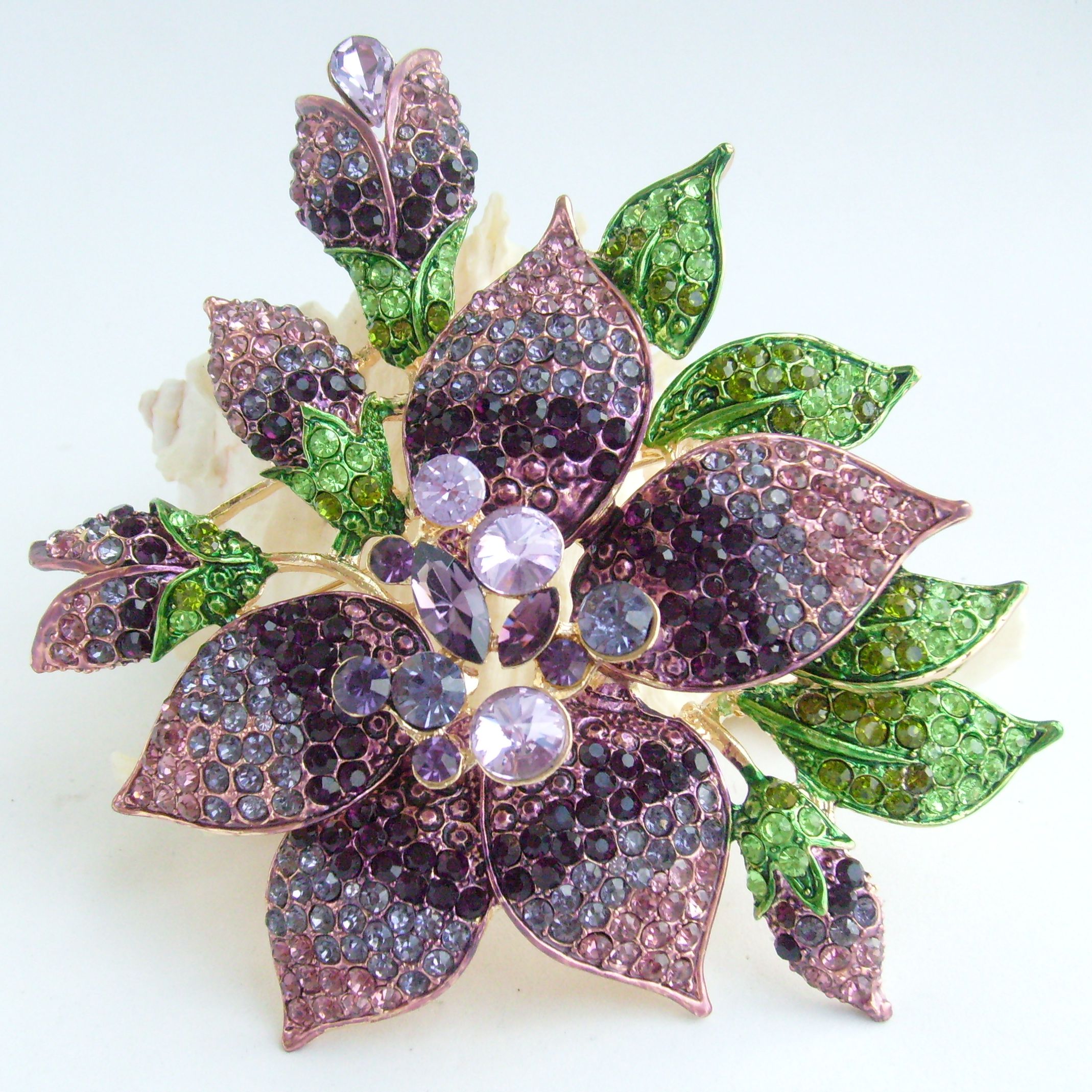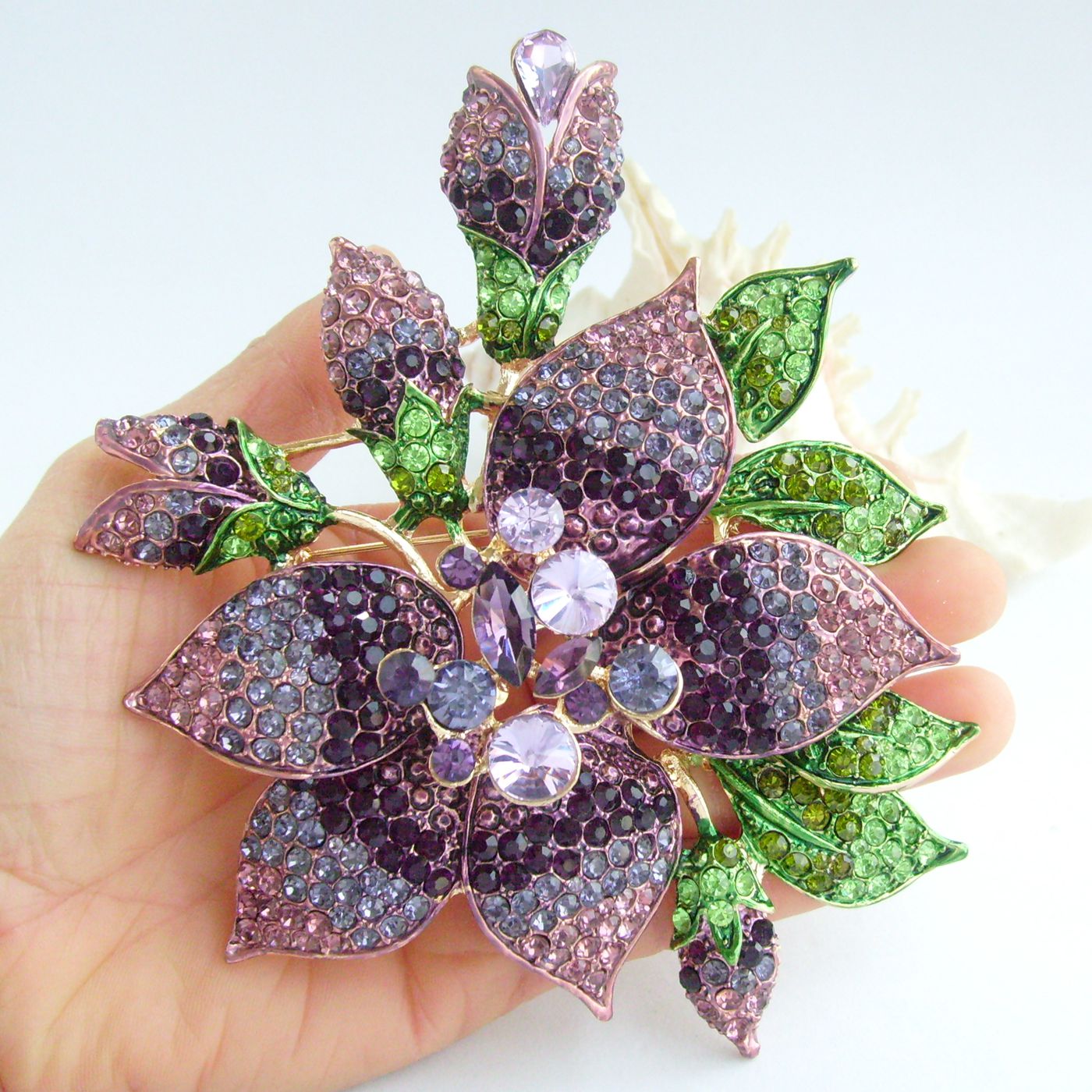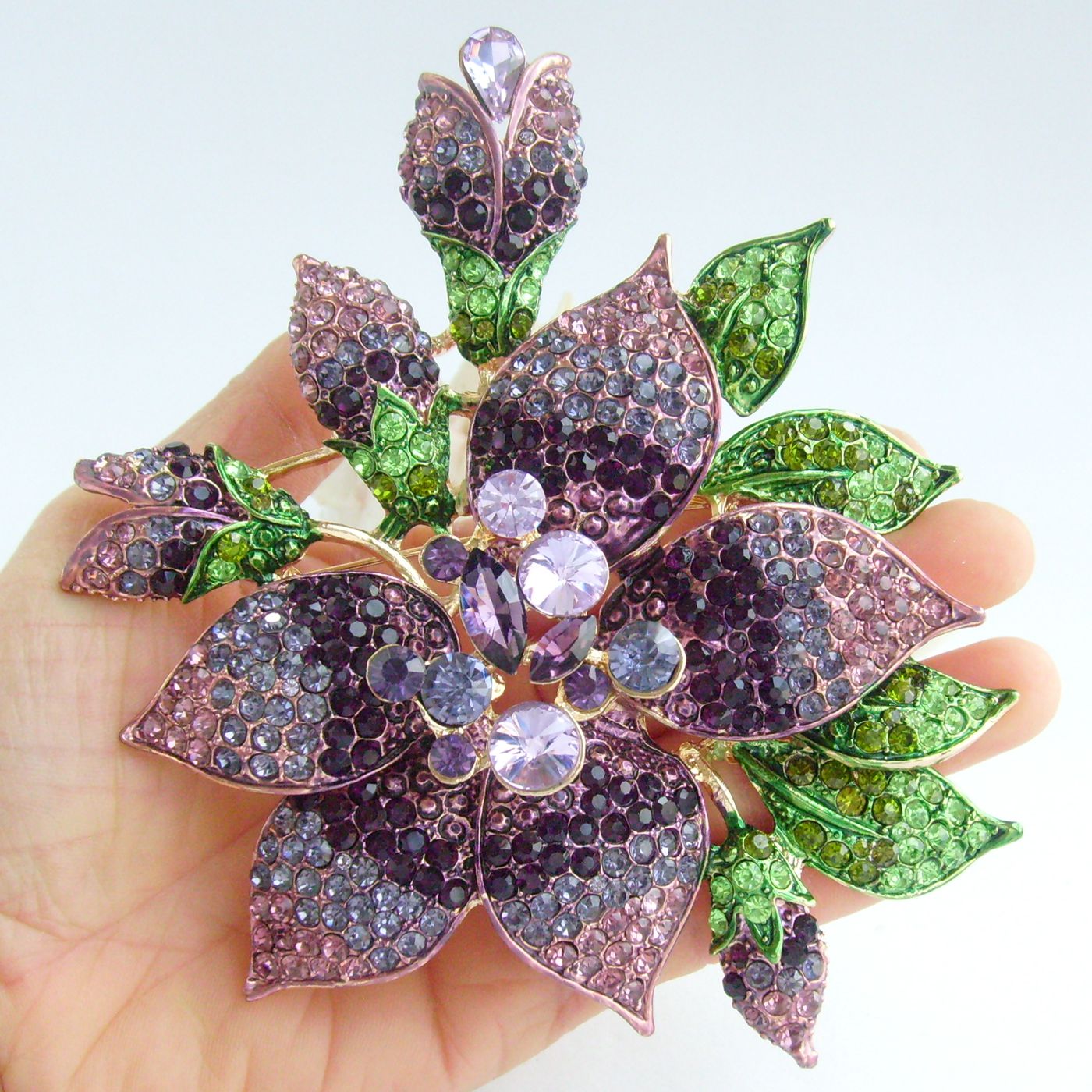 Sindary Rhinestone Crystal 5.5 Inch Large Flower Brooch Pin Pendant Party Jewelry BP04759 (Gold-Tone Purple) 170g