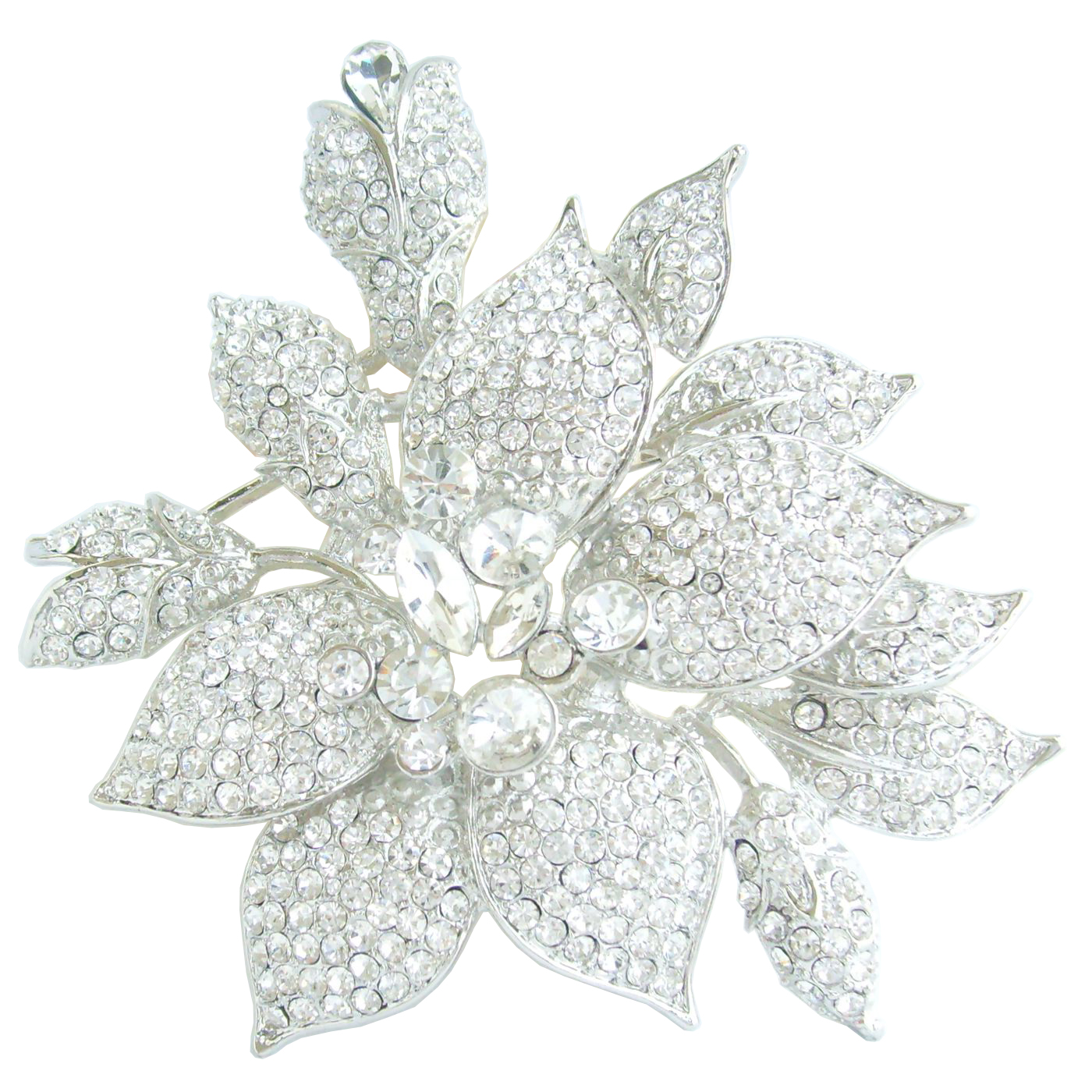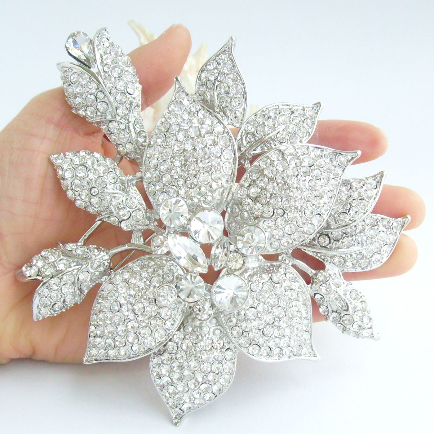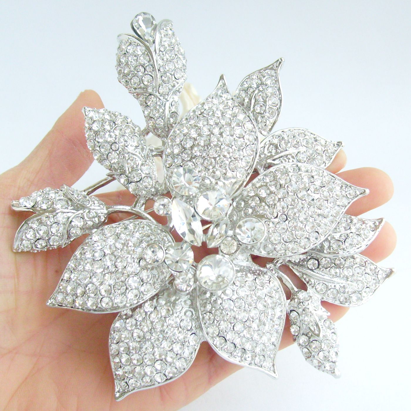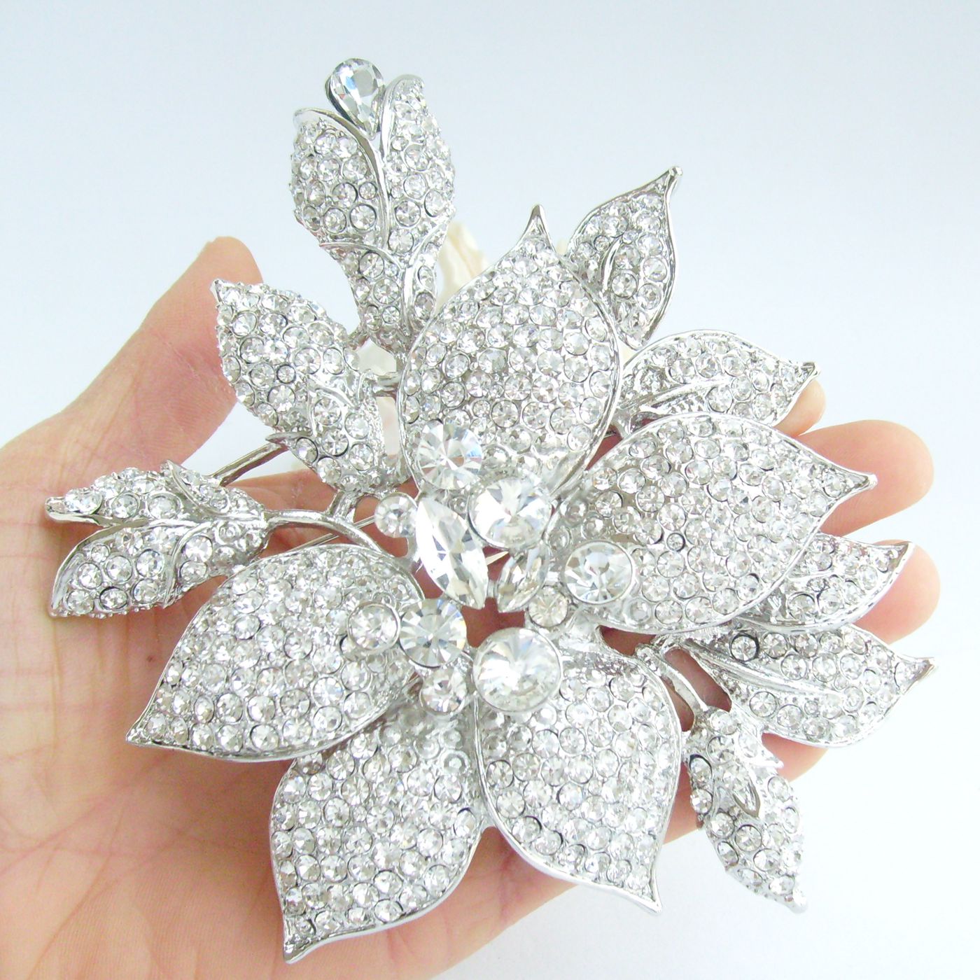 Sindary Rhinestone Crystal 5.5 Inch Large Flower Brooch Pin Pendant Party Jewelry BP04759 (Silver-Tone Clear) 170g