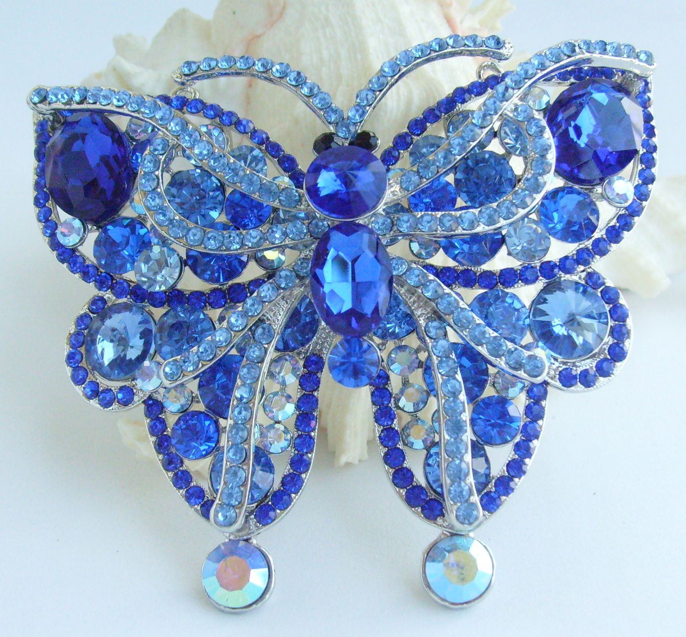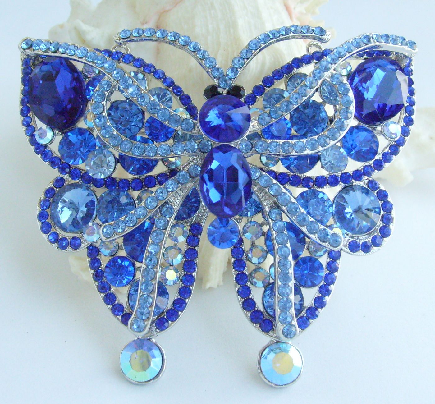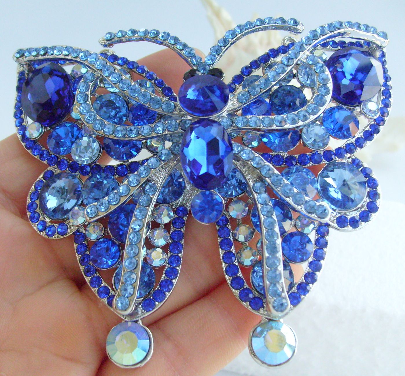 Sindary Rhinestone Crystal Insect Large Butterfly Brooch Pin Pendant BP04921 (Silver-Tone Blue) 75g