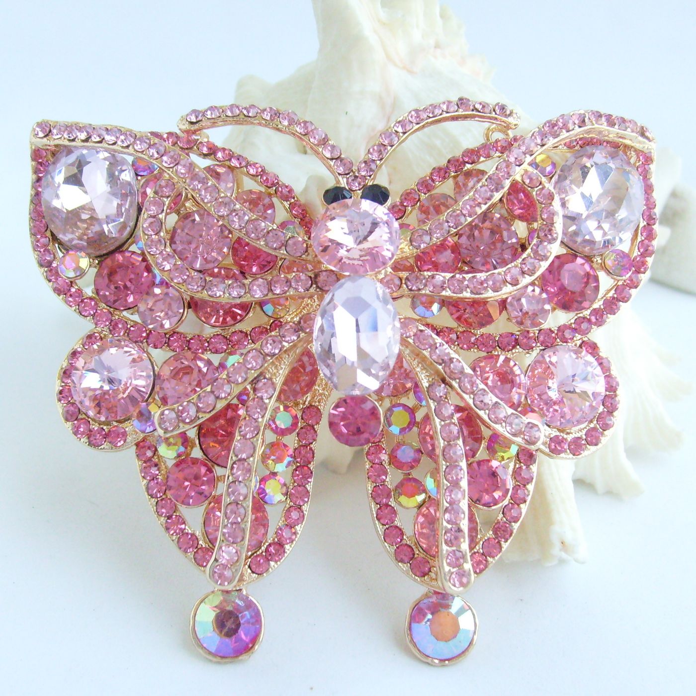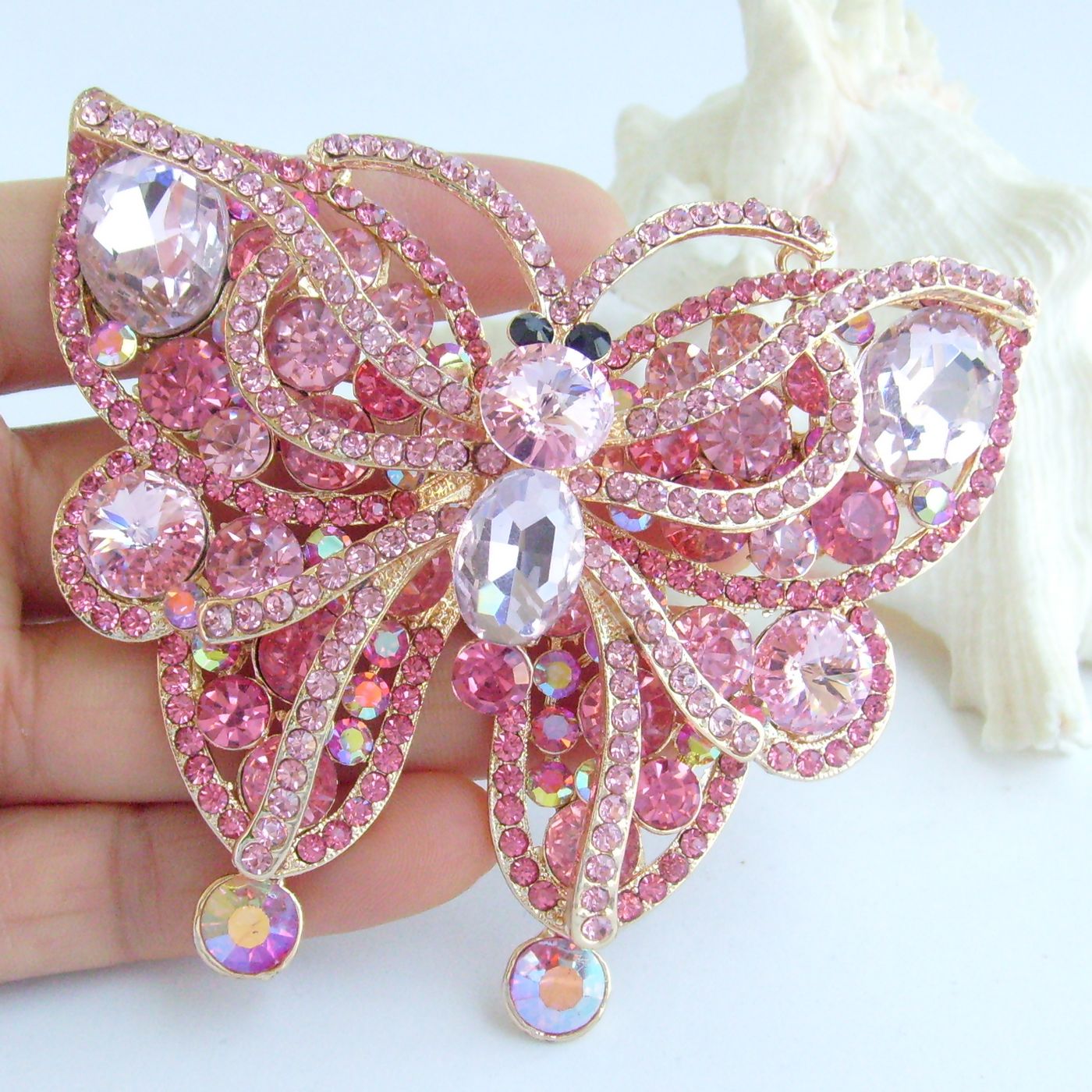 Sindary Rhinestone Crystal Insect Large Butterfly Brooch Pin Pendant BP04921 (Gold-Tone Pink) 75g