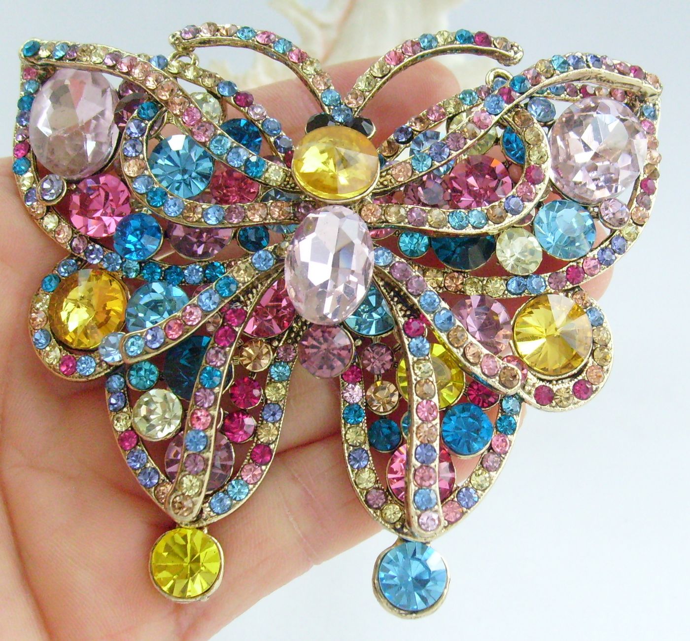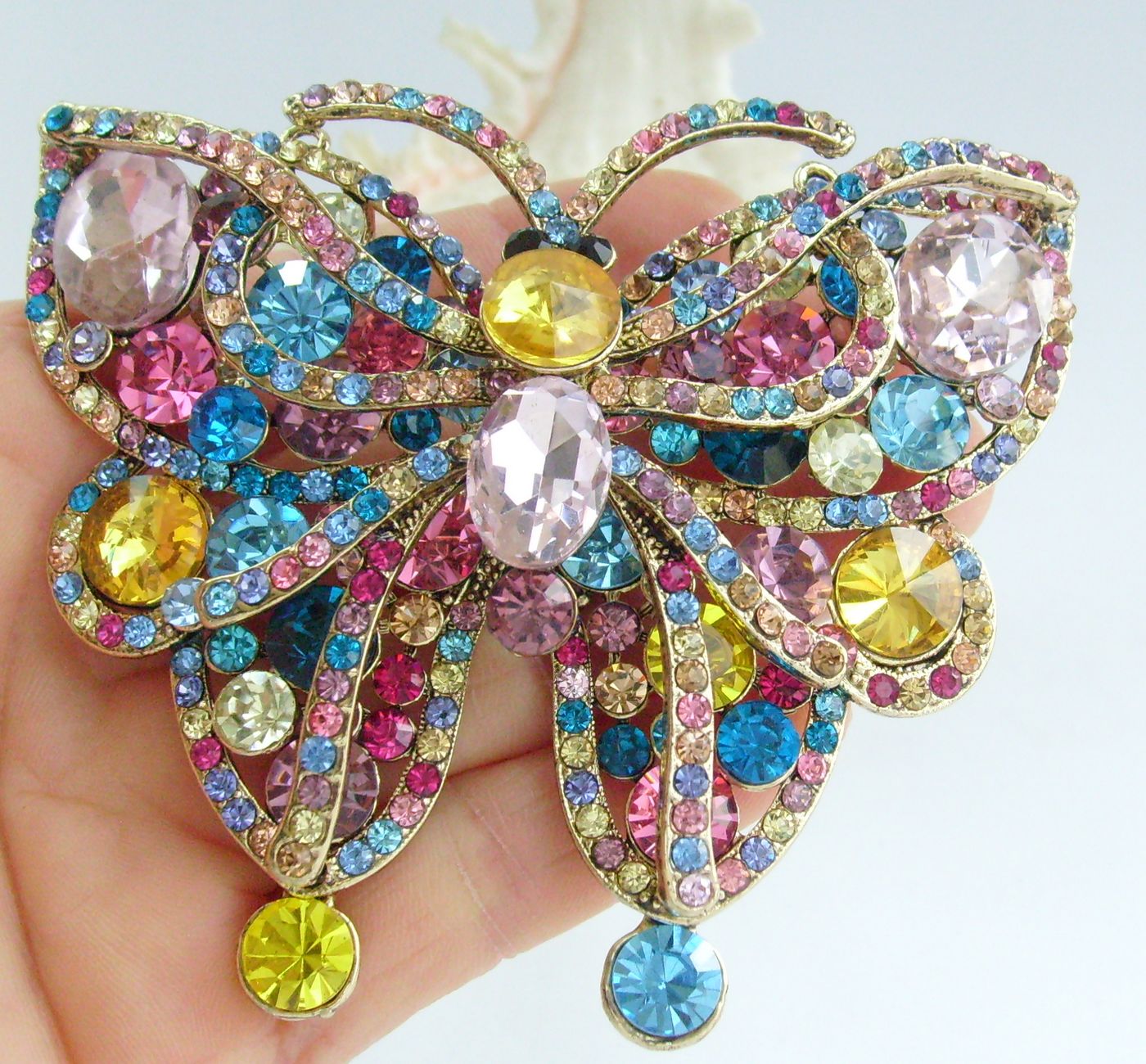 Sindary Rhinestone Crystal Insect Large Butterfly Brooch Pin Pendant BP04921 (Gold-Tone Multicolor) 75g