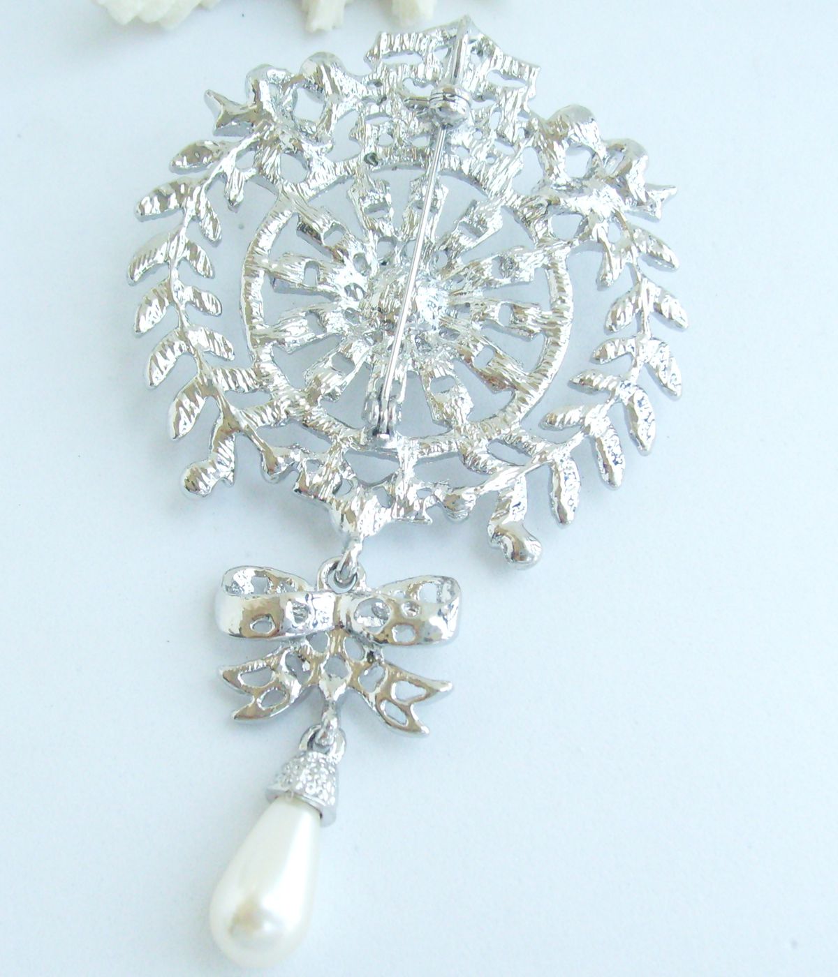 Sindary Pearls Rhinestone Crystal Teardrop Flower Brooch Pin Pendant BP06417 (Silver-Tone Clear) 30g