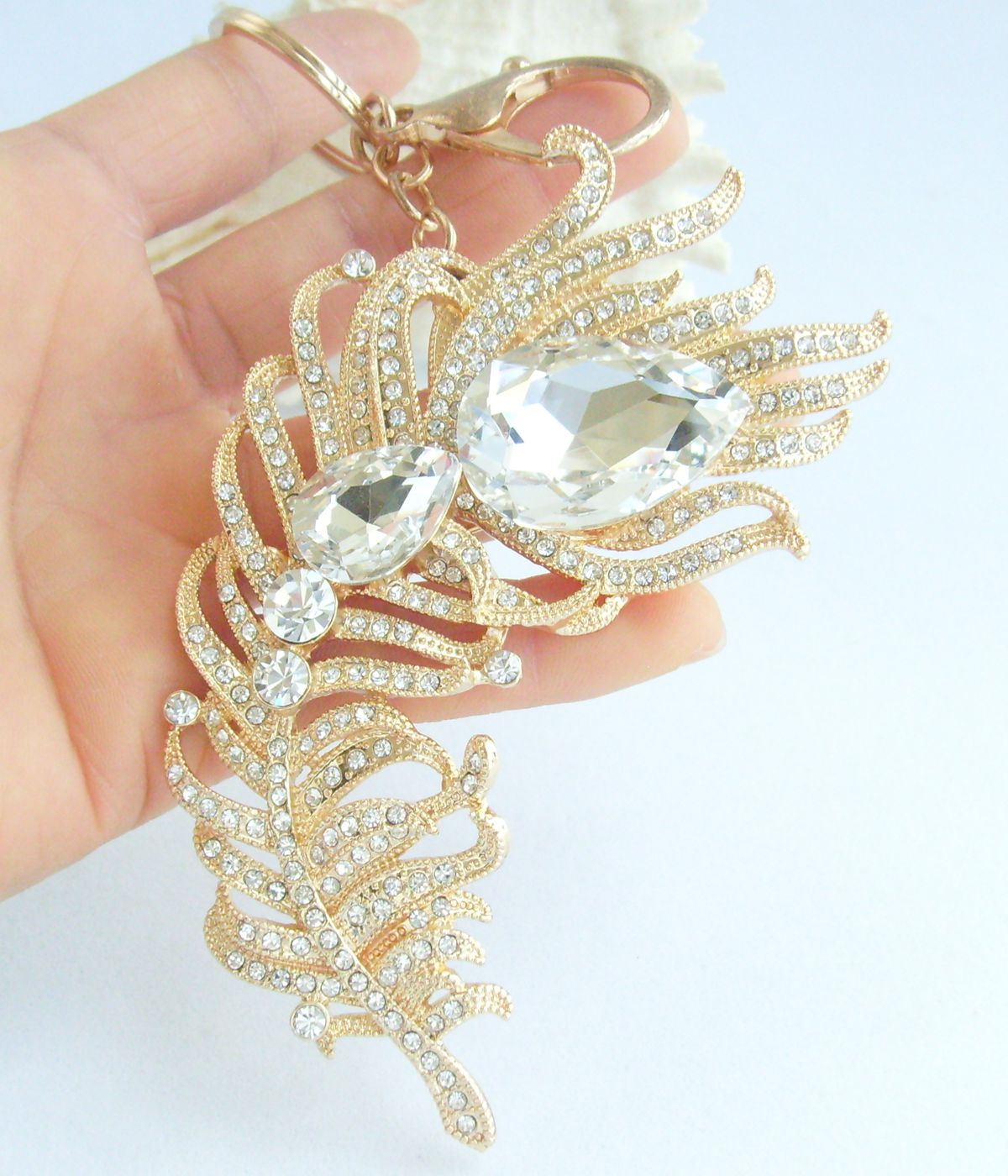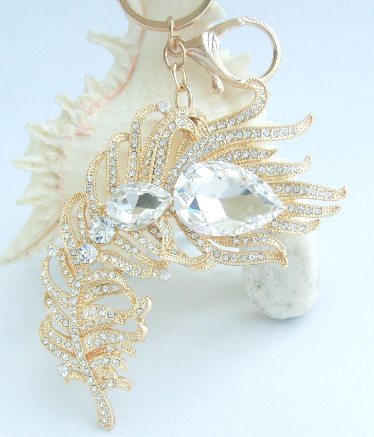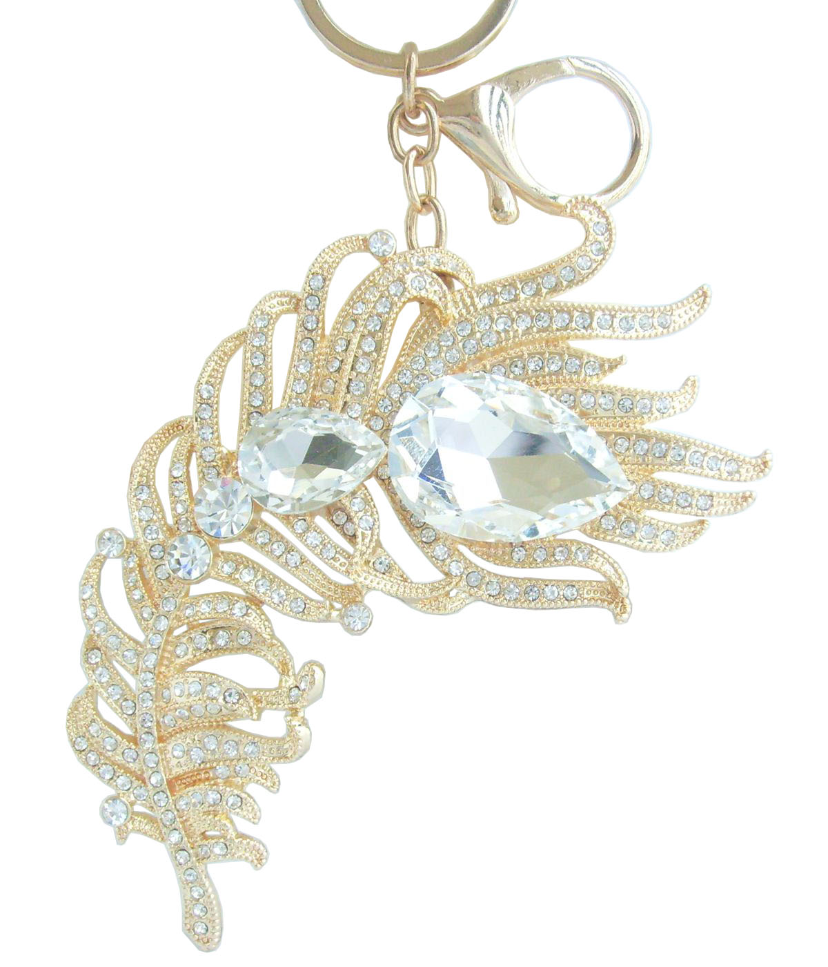 Sindary Rhinestone Crystal Elegant Peacock Feather Keychain Pendant KP05038 (Gold-Tone Clear) 60g