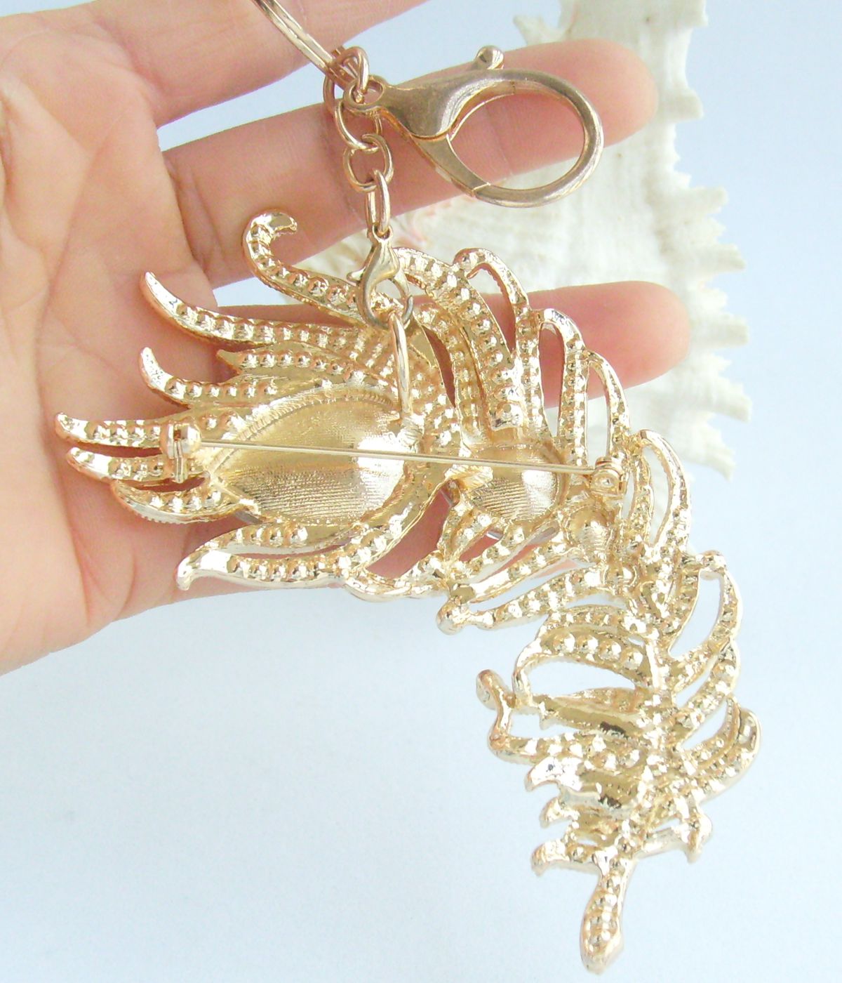 Have a pin on the back, it can be used as a brooch.