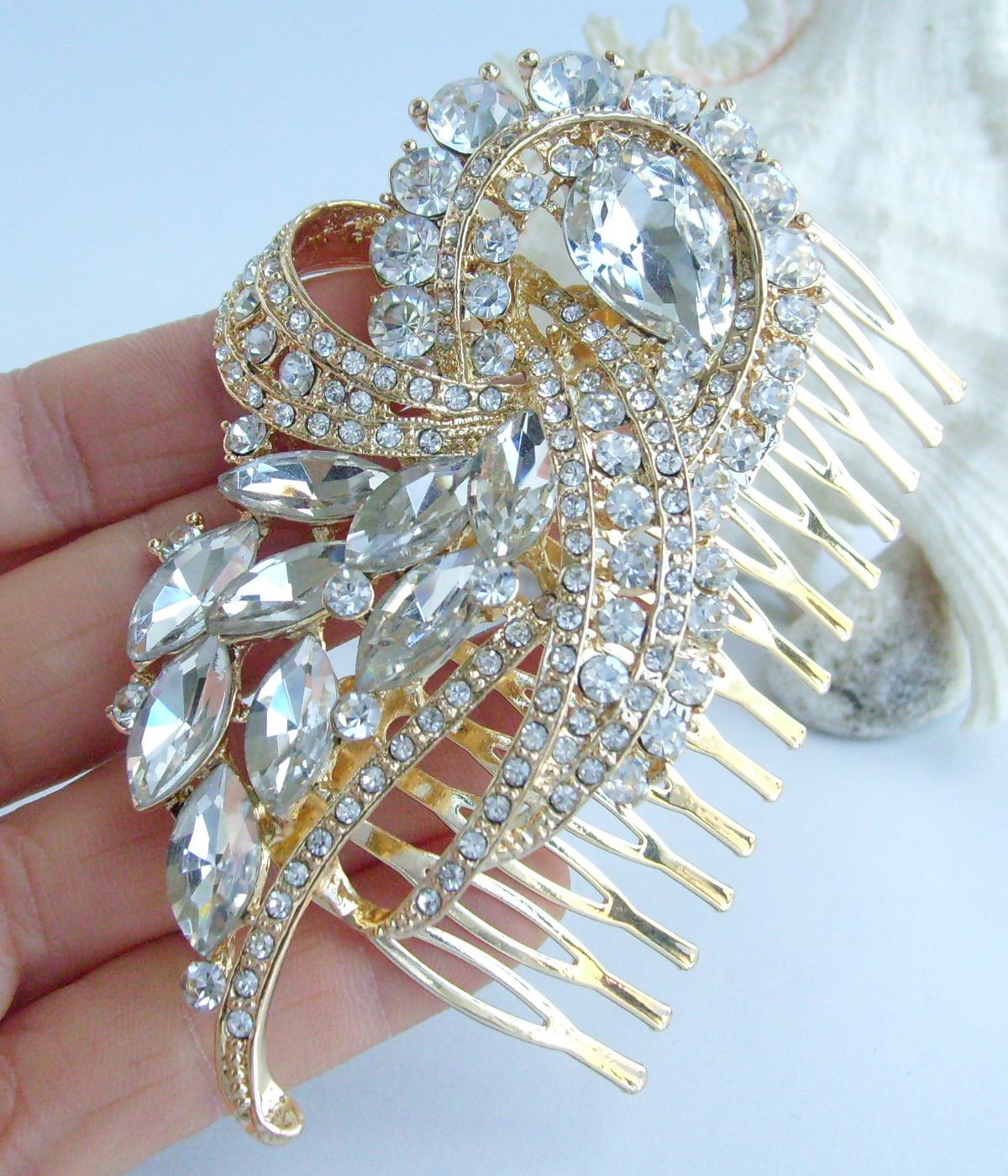 Sindary Wedding Bridal Party Headpiece Bowknot Hair Clip Side Comb Rhinestone Hair Comb HC04243 (Gold-Tone Clear) 55g