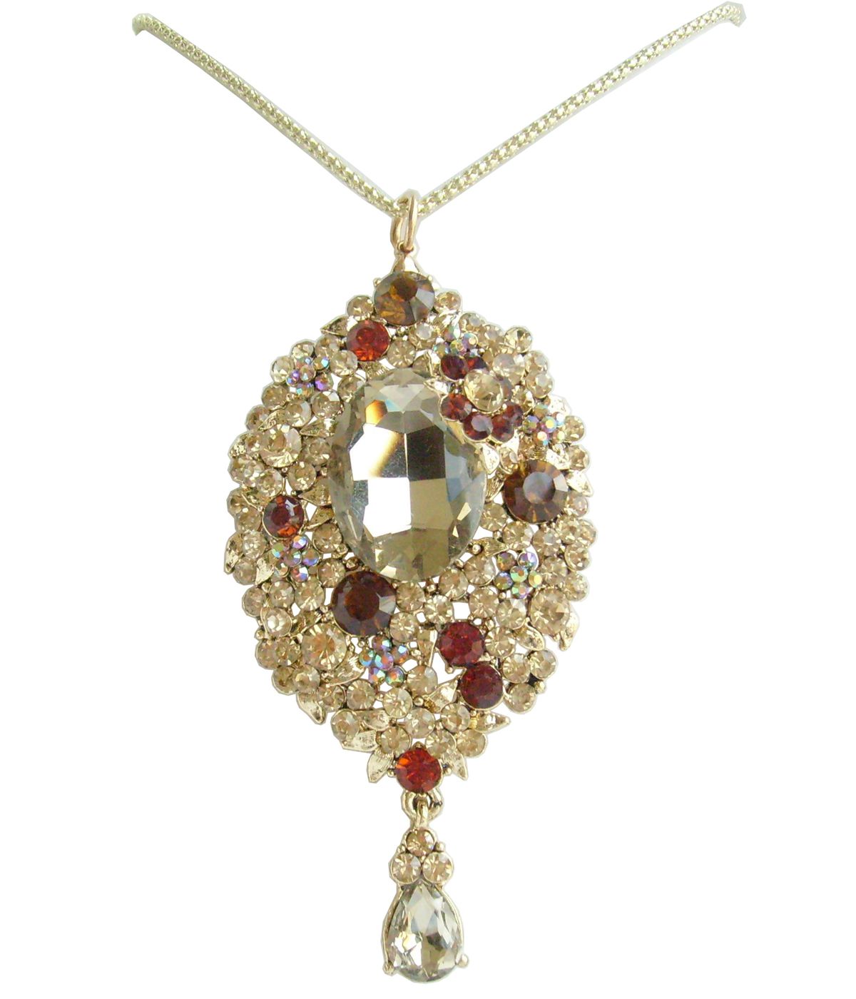 Sindary Rhinestone Crystal Teardrop Necklace Pendant NL04882 (Gold-Tone Brown) 50g