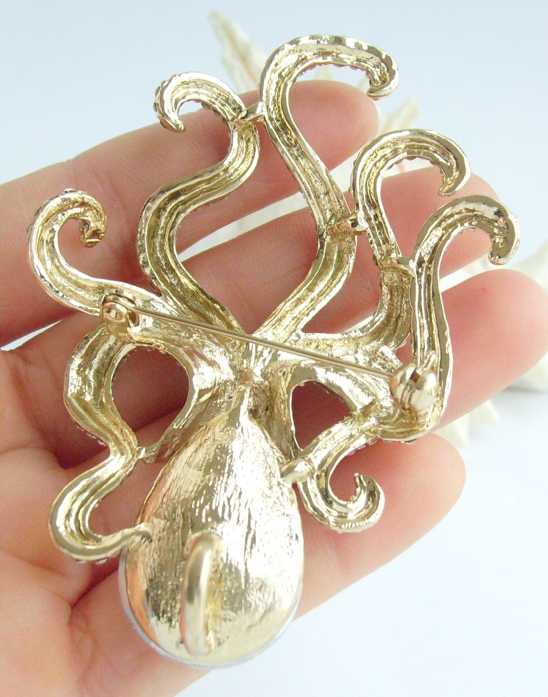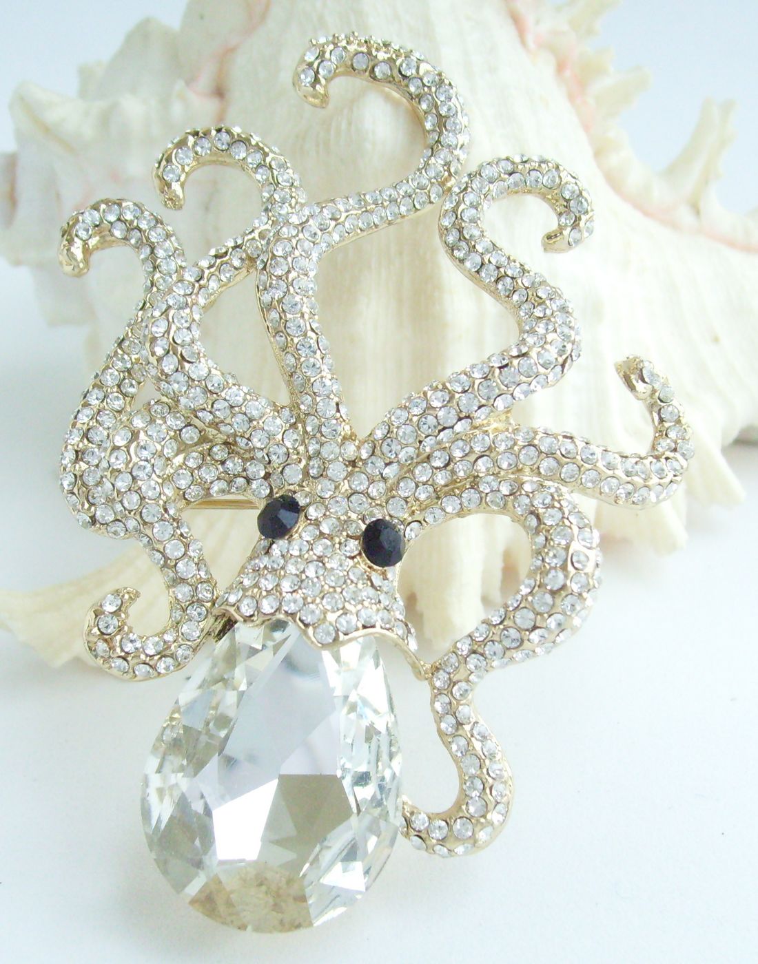Sindary Rhinestone Crystal Animal Octopus Brooch Pin Pendant BP05097 (Gold-Tone Clear) 30g