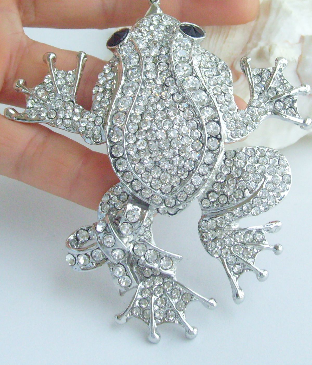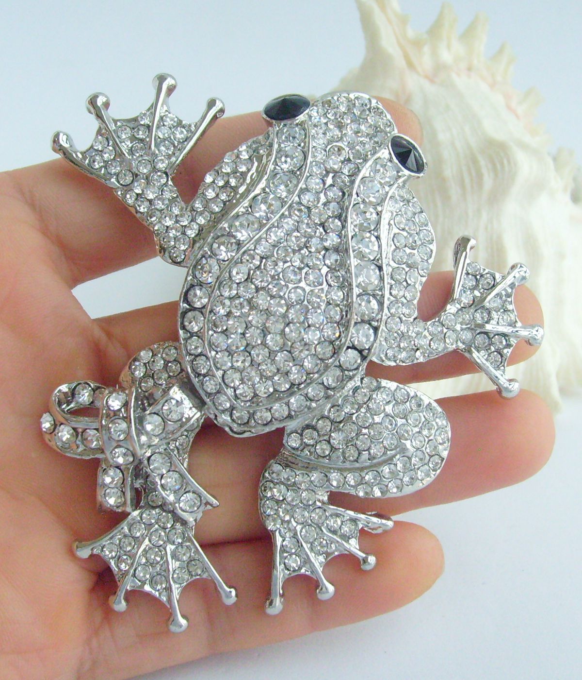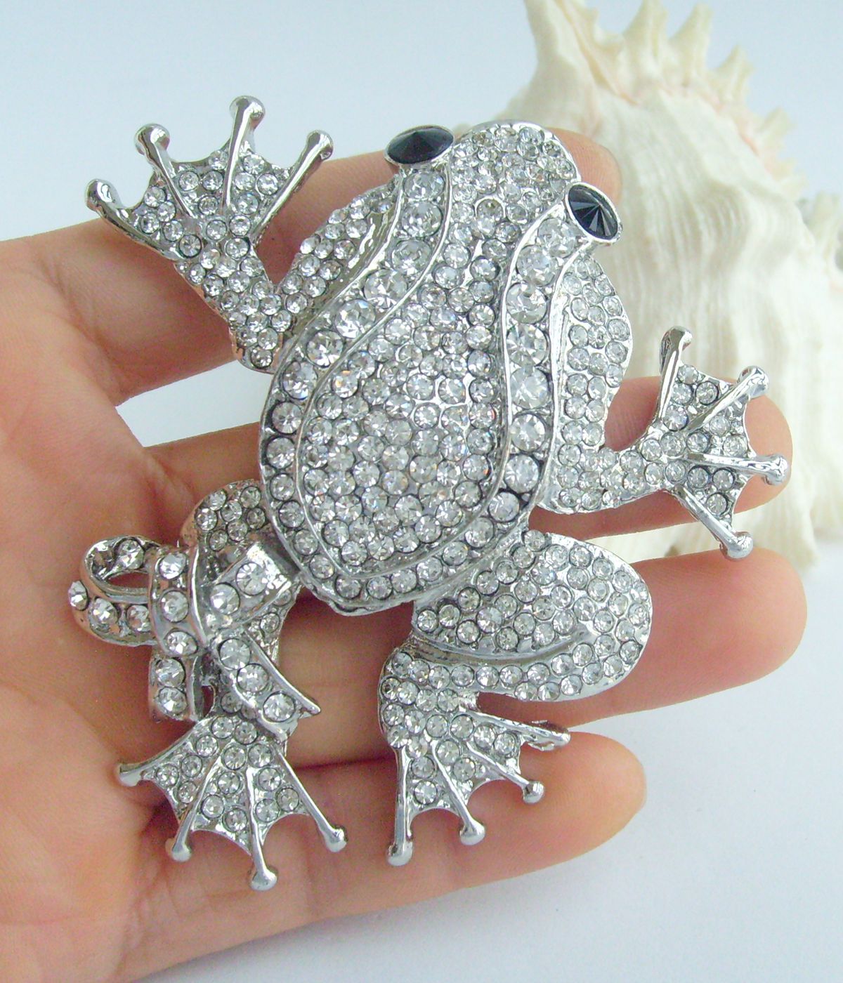 Sindary Rhinestone Crystal Art Style Unique Animal Frog Brooch Pin Pendant BP05853 (Silver-Tone Clear) 55g