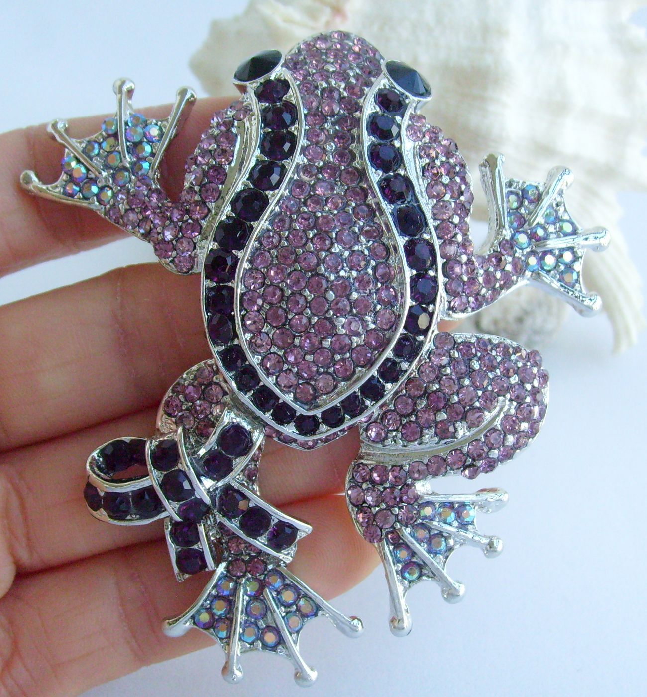 Sindary Rhinestone Crystal Art Style Unique Animal Frog Brooch Pin Pendant BP05853 (Silver-Tone Purple) 55g