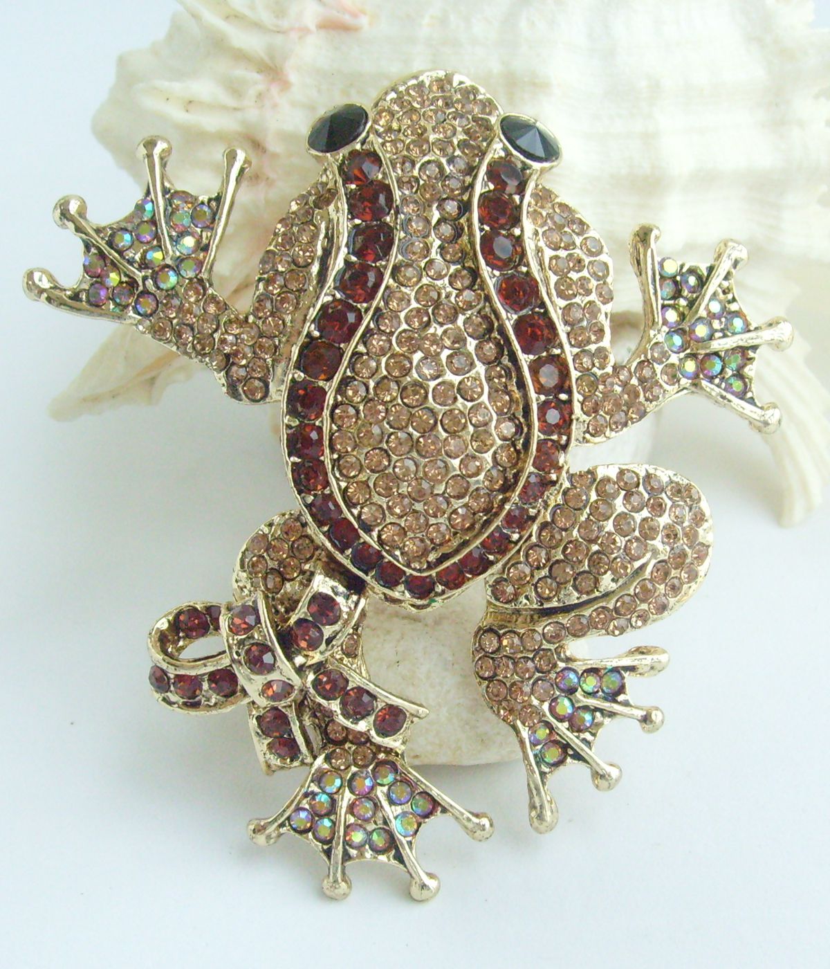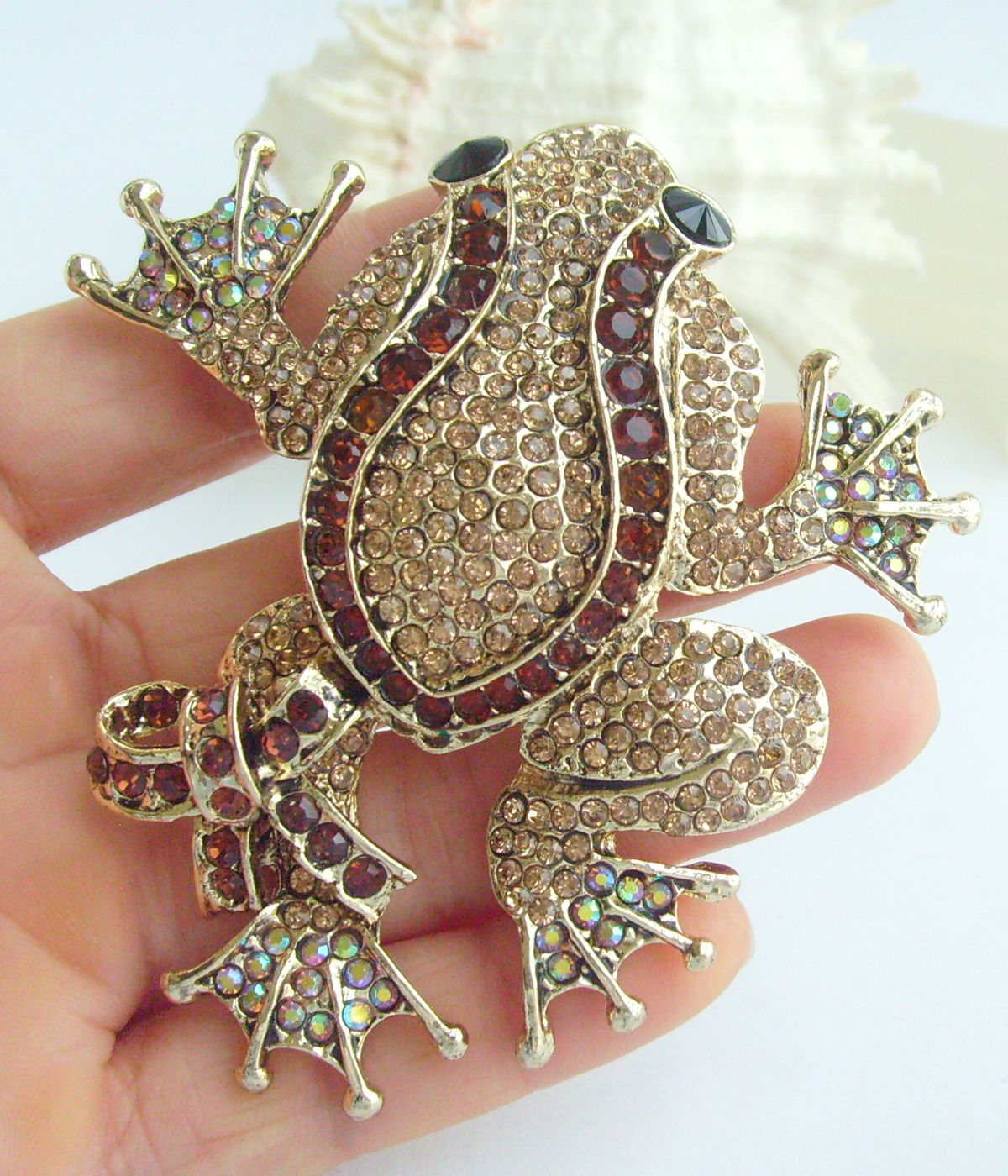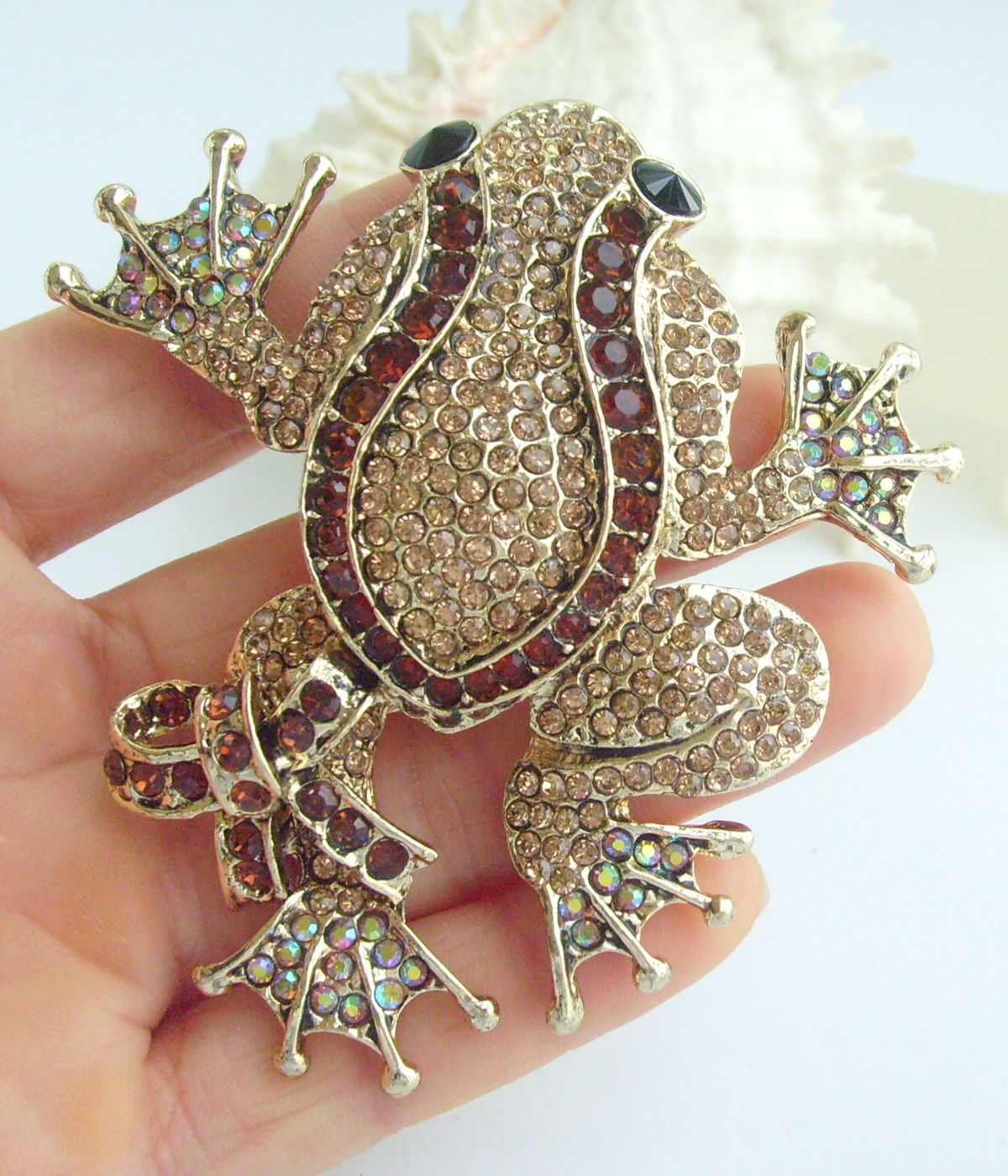 Sindary Rhinestone Crystal Art Style Unique Animal Frog Brooch Pin Pendant BP05853 (Gold-Tone Brown) 55g