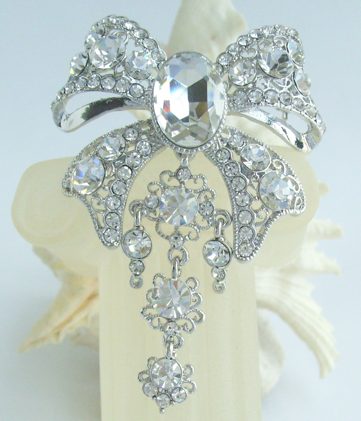 Sindary Rhinestone Crystal Elegant Bowknot Brooch Pin Pendant BP04503 (Silver-Tone Clear) 30g
