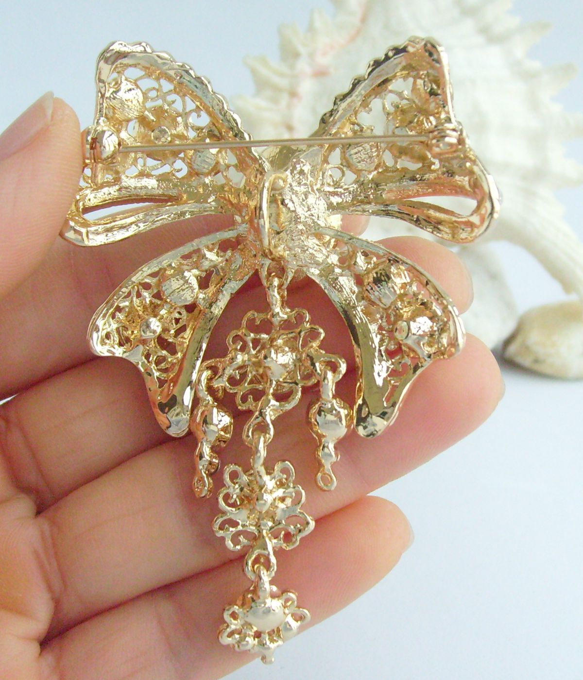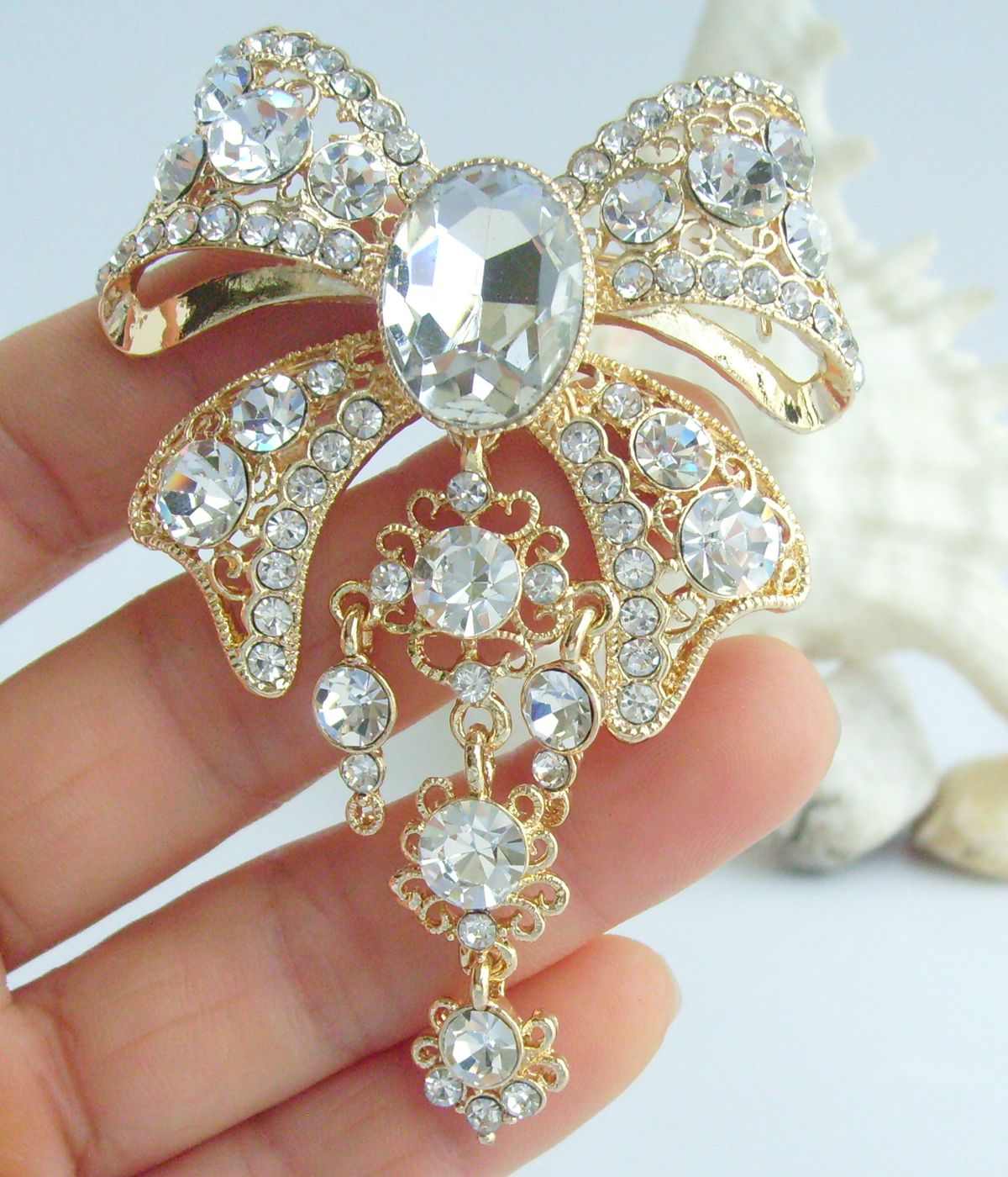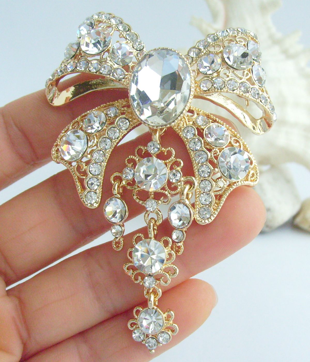 Sindary Rhinestone Crystal Elegant Bowknot Brooch Pin Pendant BP04503 (Gold-Tone Clear) 30g